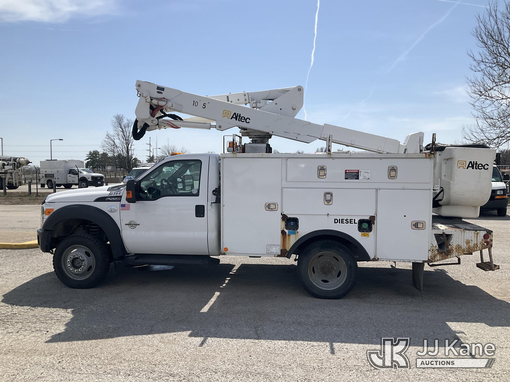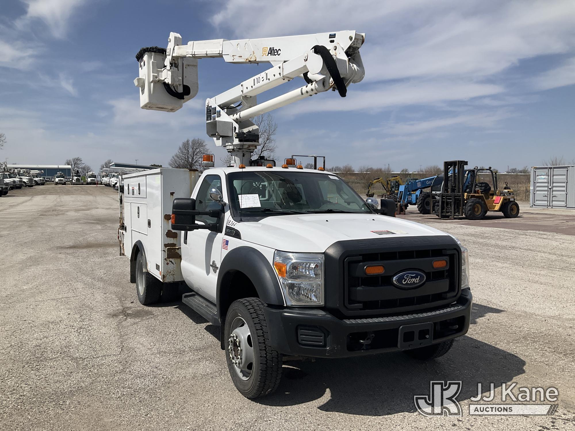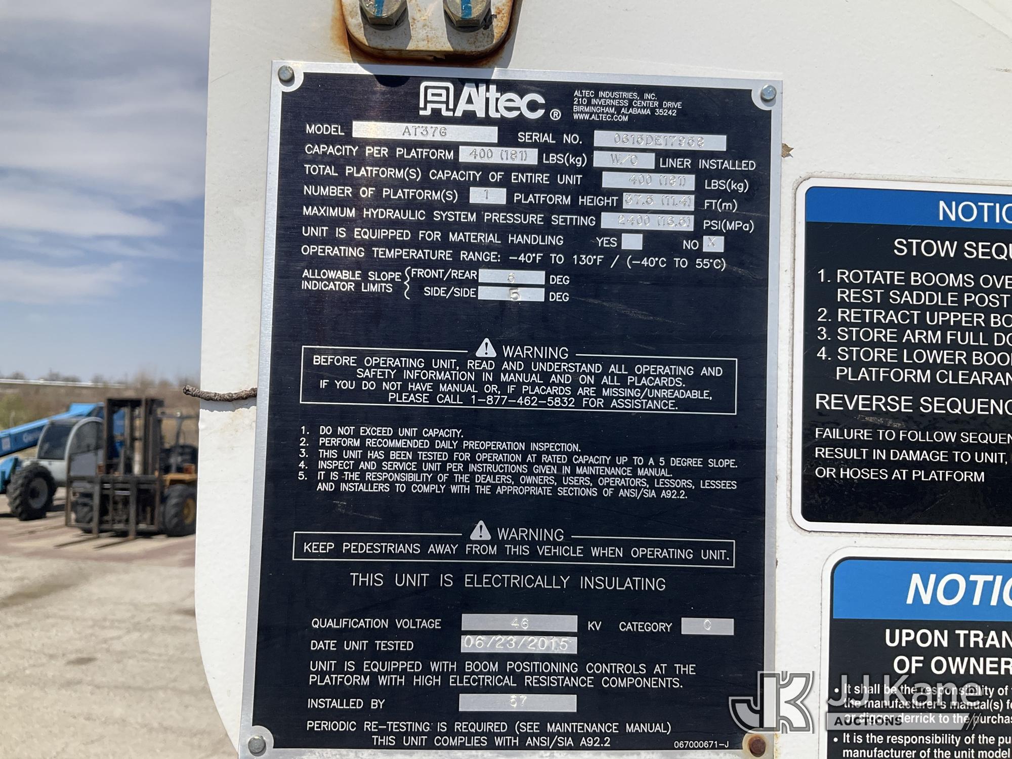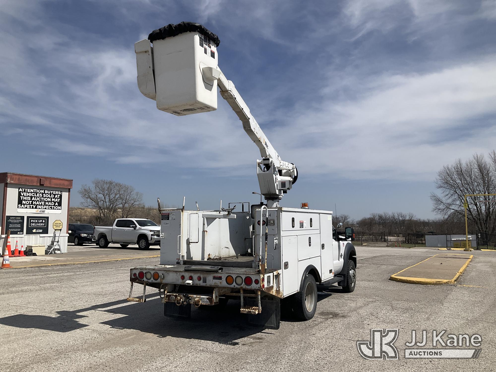 Altec AT37G, 42 ft, Articulating & Telescopic Bucket s/n 0615DE17958, with single man bucket, mounted behind cab on 2015 Ford F-550 Service Truck, 6.7L diesel, 4wd, Auto, A/C, (128,177 miles) (Runs, Moves, & Upper Operates) (Dents On The Hood) (Reads 7,234 hours) This is a Titled Item*