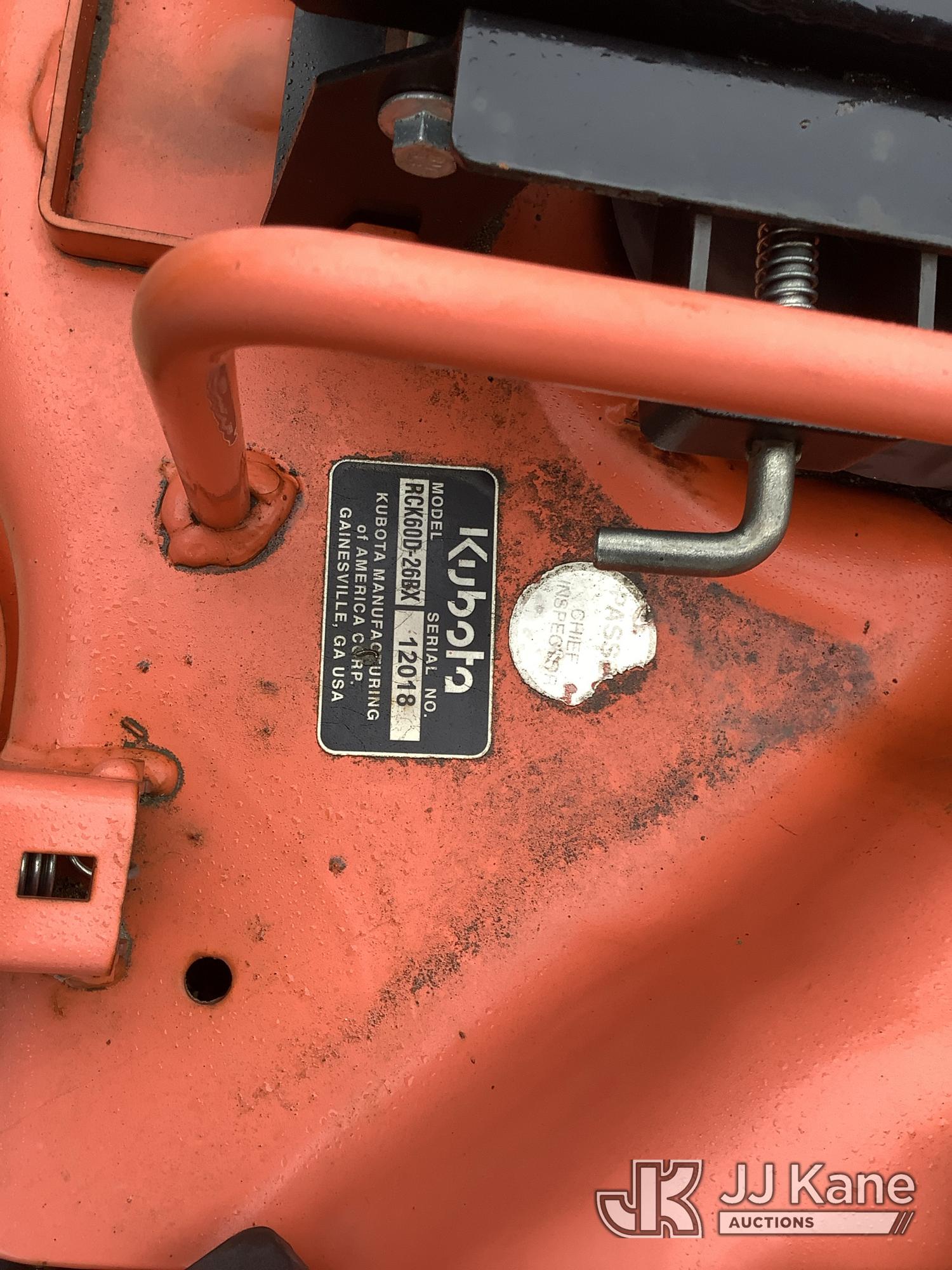 Kubota Mowing Deck RCK60D-26BX s/n 12018, (No Damage, Operating Conditions Unknown) (Removal is by Appointment Only, Buyer MUST make a appointment prior to picking up, Buyer/Transporter Must have PAID IN FULL RELEASE. No onsite assistance available, Please Come prepared.)*