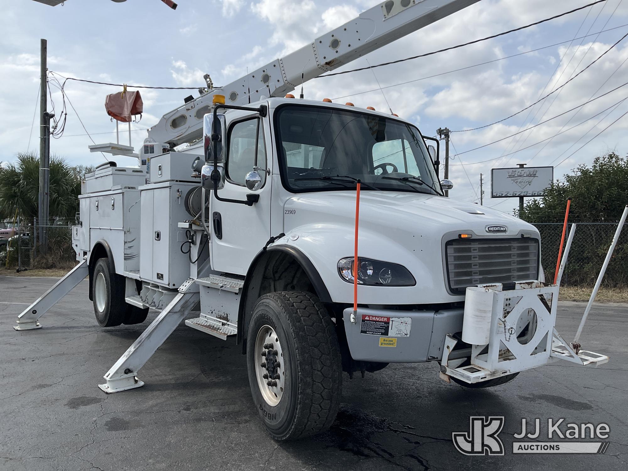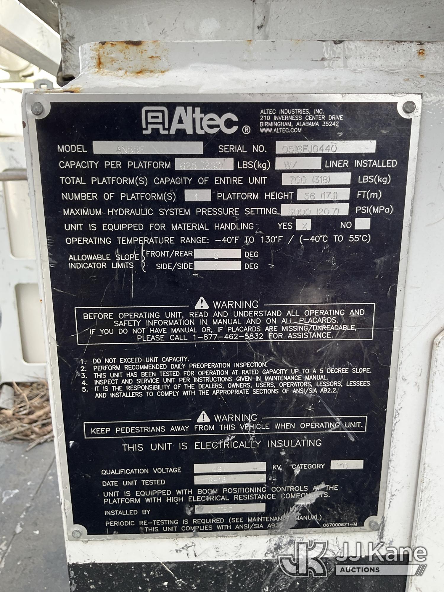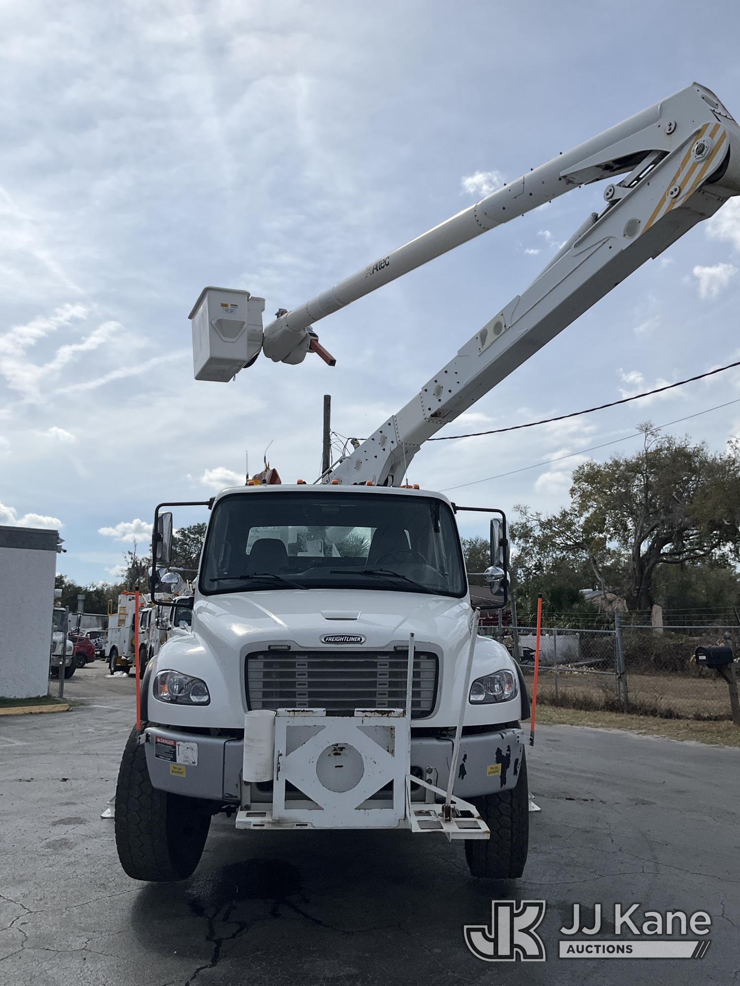 Altec AN55E, 60 ft, Material Handling Bucket Truck s/n 0516FJ0440, with two-man bucket & 4 hyd outriggers, rear mounted on 2017 Freightliner M2 106 4x4 Utility Truck, 6.7L L6 diesel, Auto, A/C, (133,527 miles) (Runs, Moves & Upper Operates) This is a Titled Item*