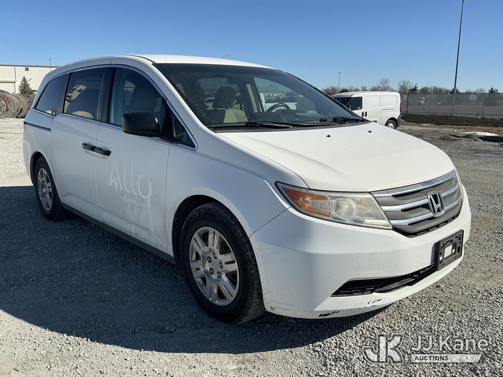 2013 Honda Odyssey Mini Passenger Van, 3.5L V6 SOHC 24V gas, FWD, 5-Speed Automatic, A/C, (124,565 miles) (Runs & Moves) (Hail Damage) This is a Titled Item*
