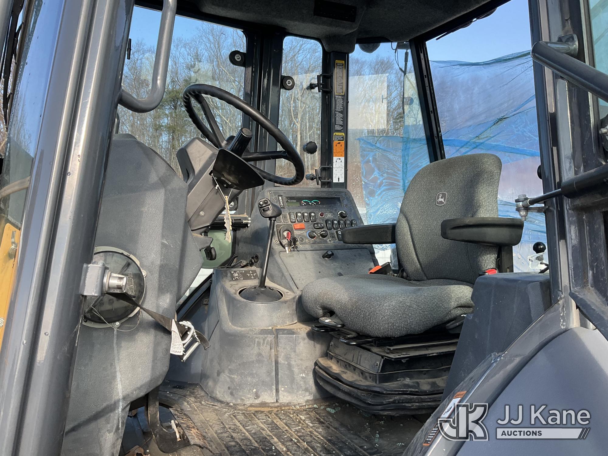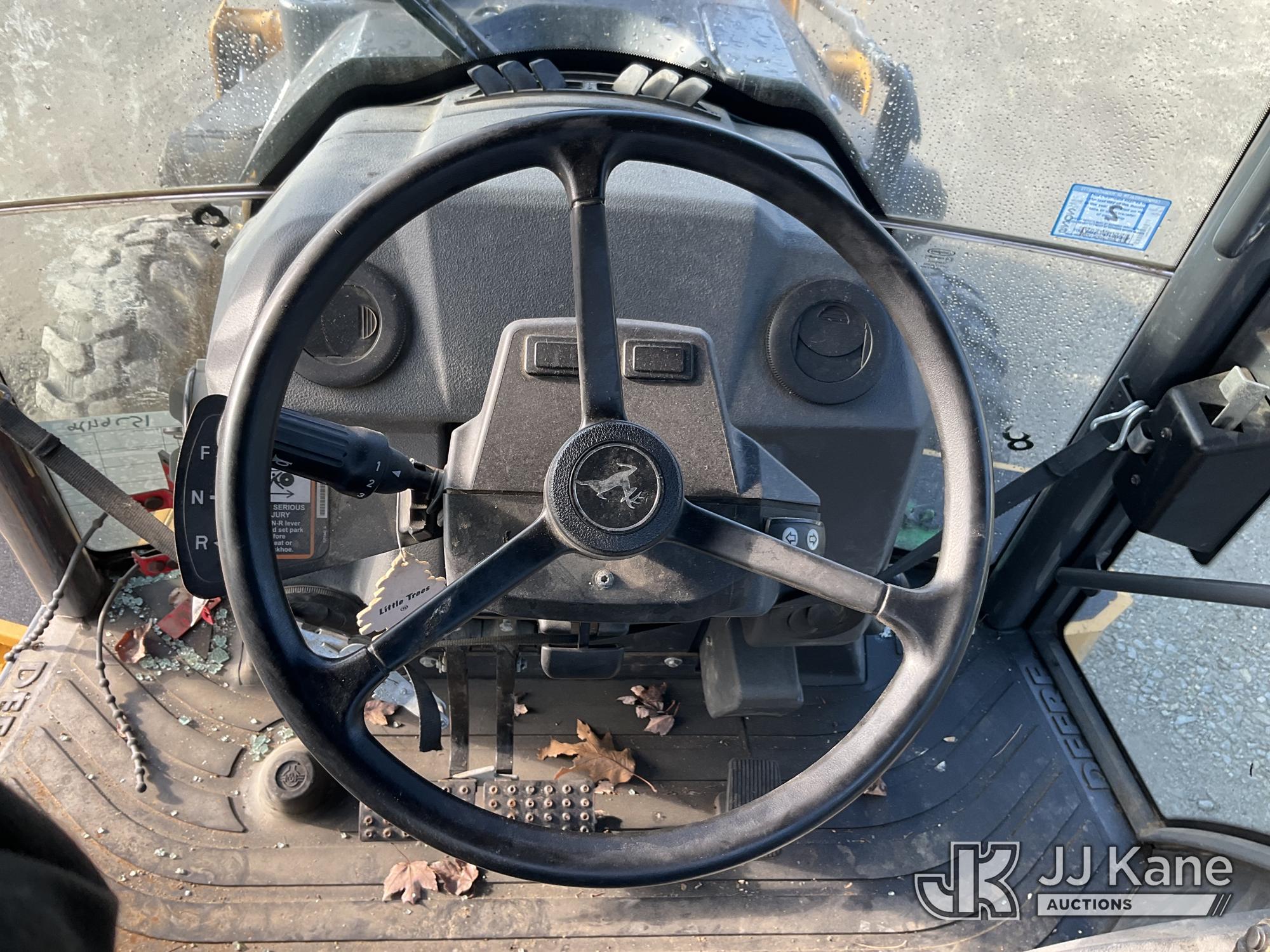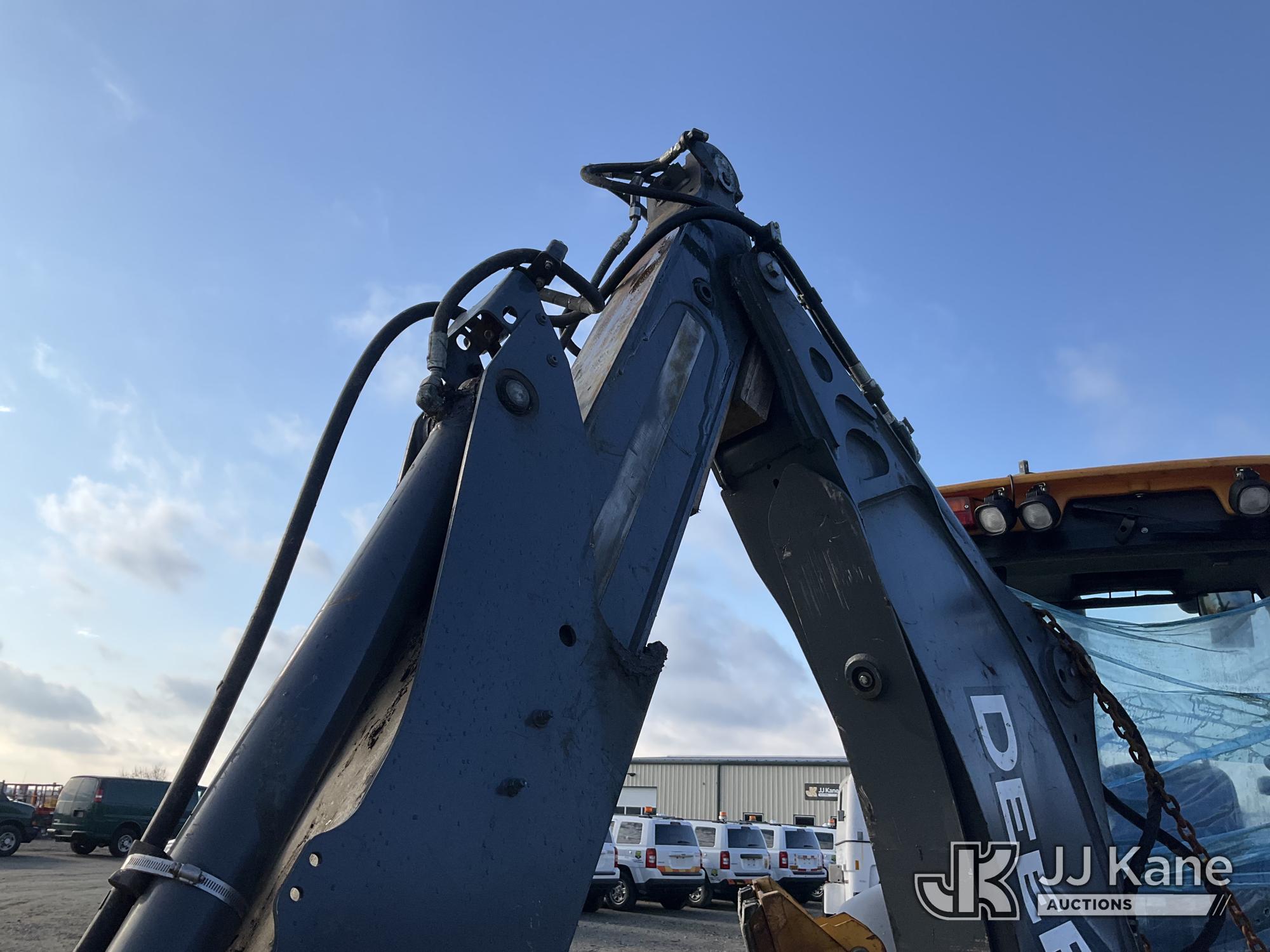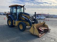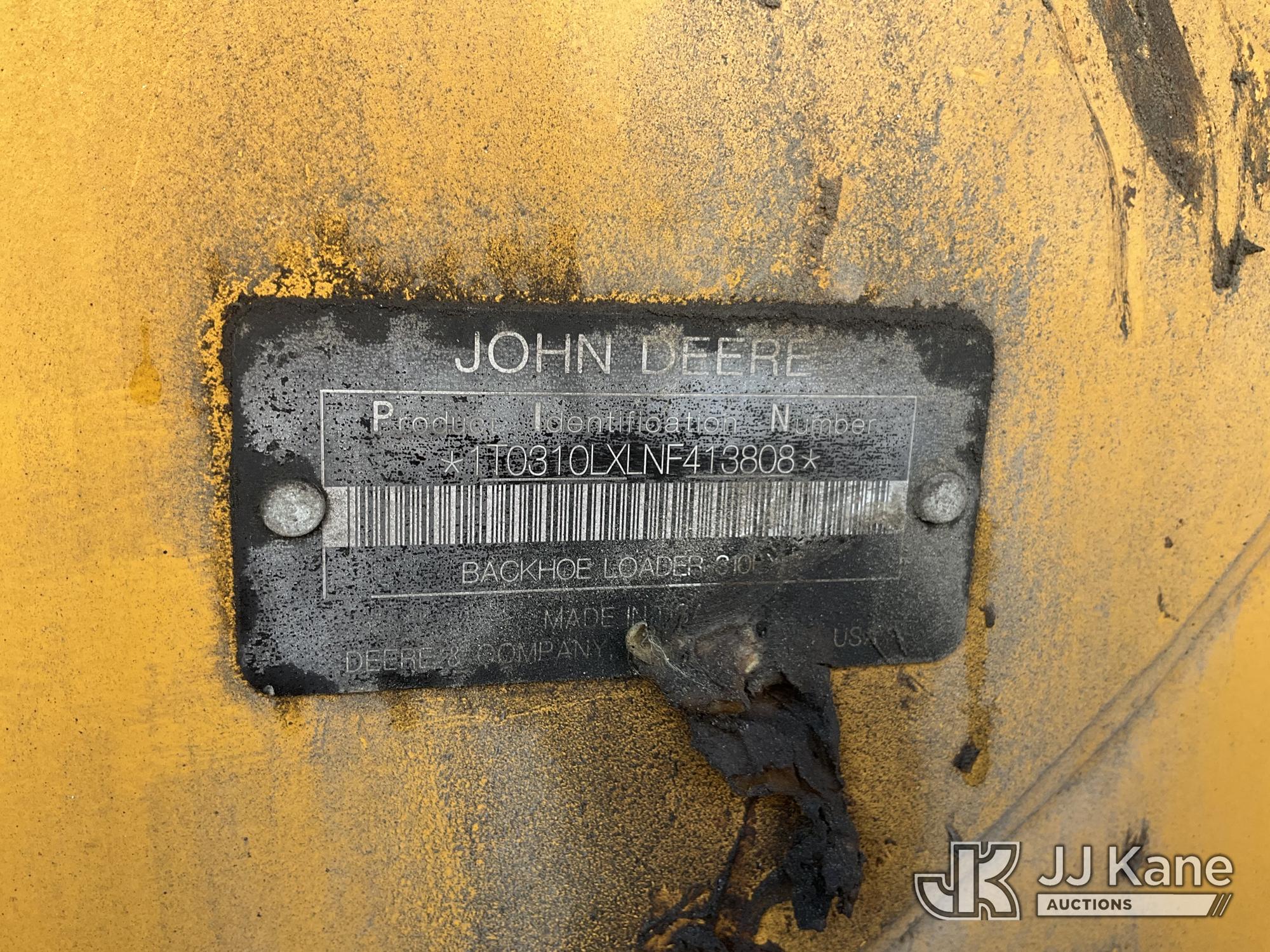 2022 John Deere 310L Tractor Loader Backhoe, J.D. powershift, diesel, A/C, with 4 in 1 loader bucket, extendahoe & EROPS, w/ A/C, (Runs & Moves) (Damaged Boom & Rear Windshield, Hydraulic Leak At Boom, Boom Does Not Operate, Damaged Curbside Rear Tire, Does Not Hold Air, Broken Glass In Cab) (Reads 4,056 hours) This is a Titled Item*