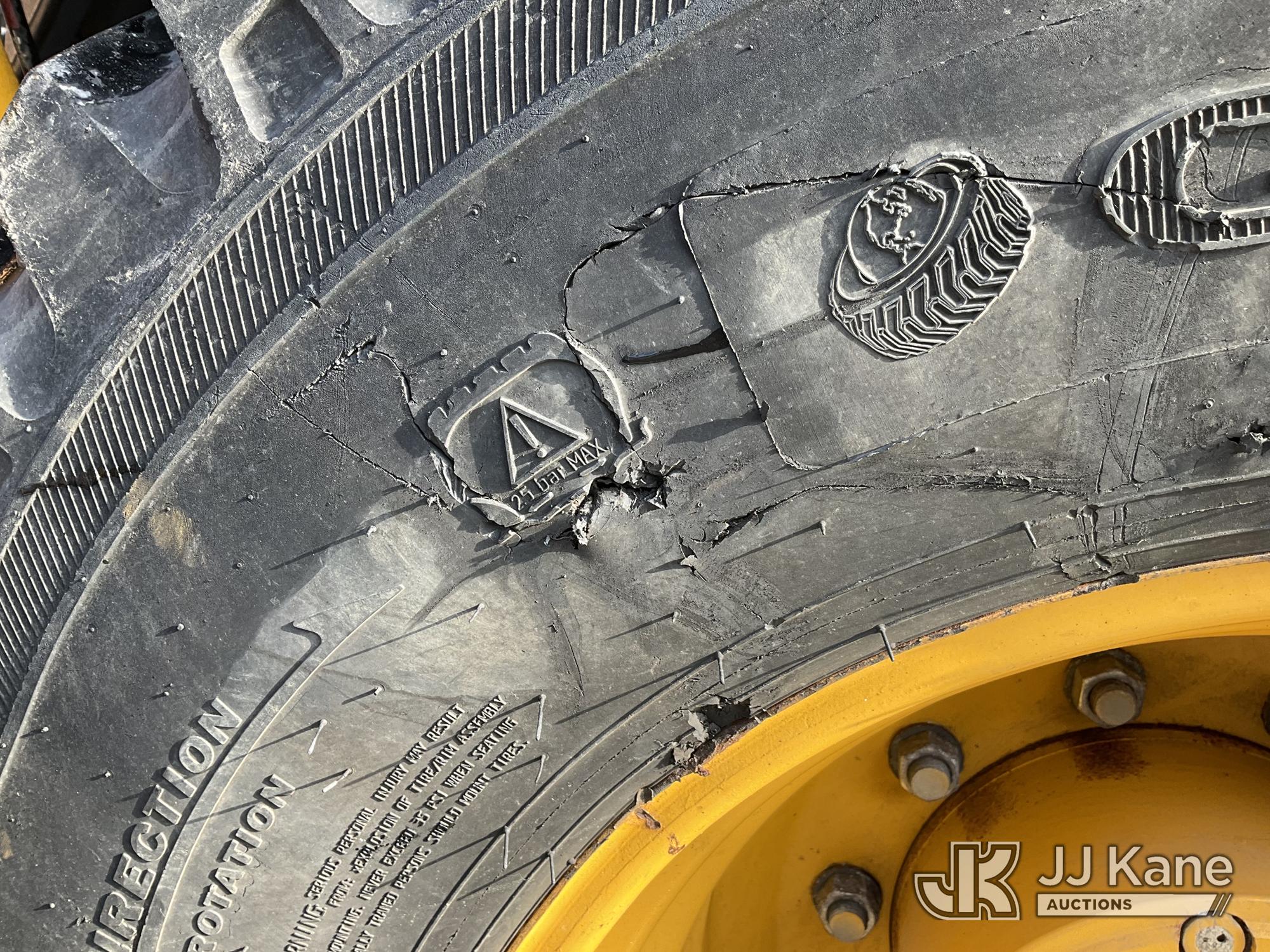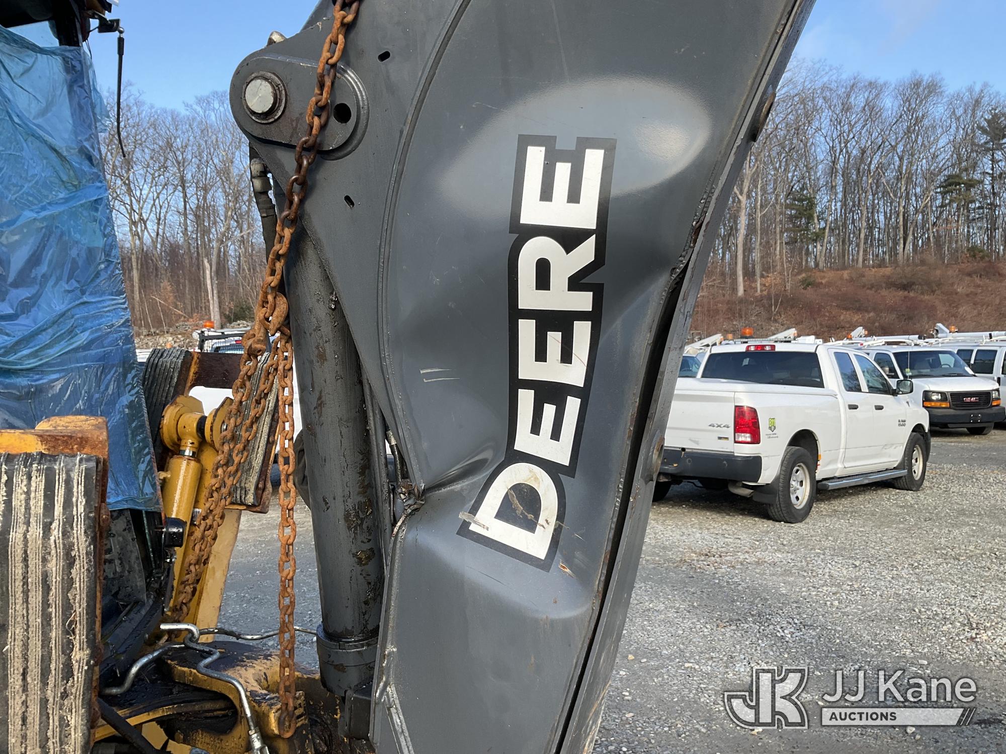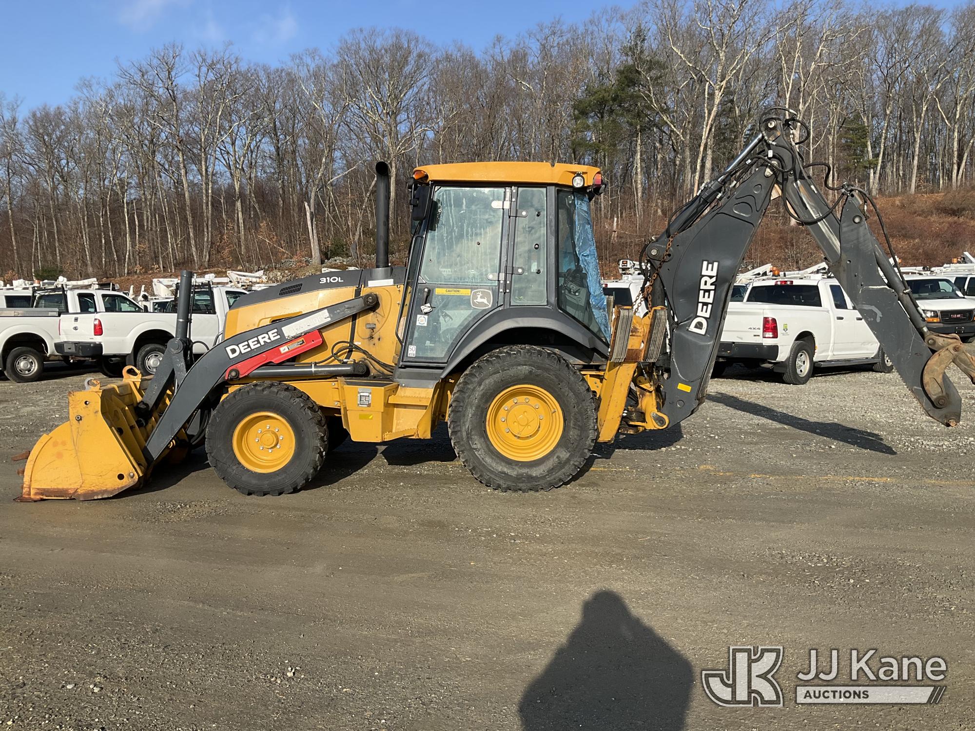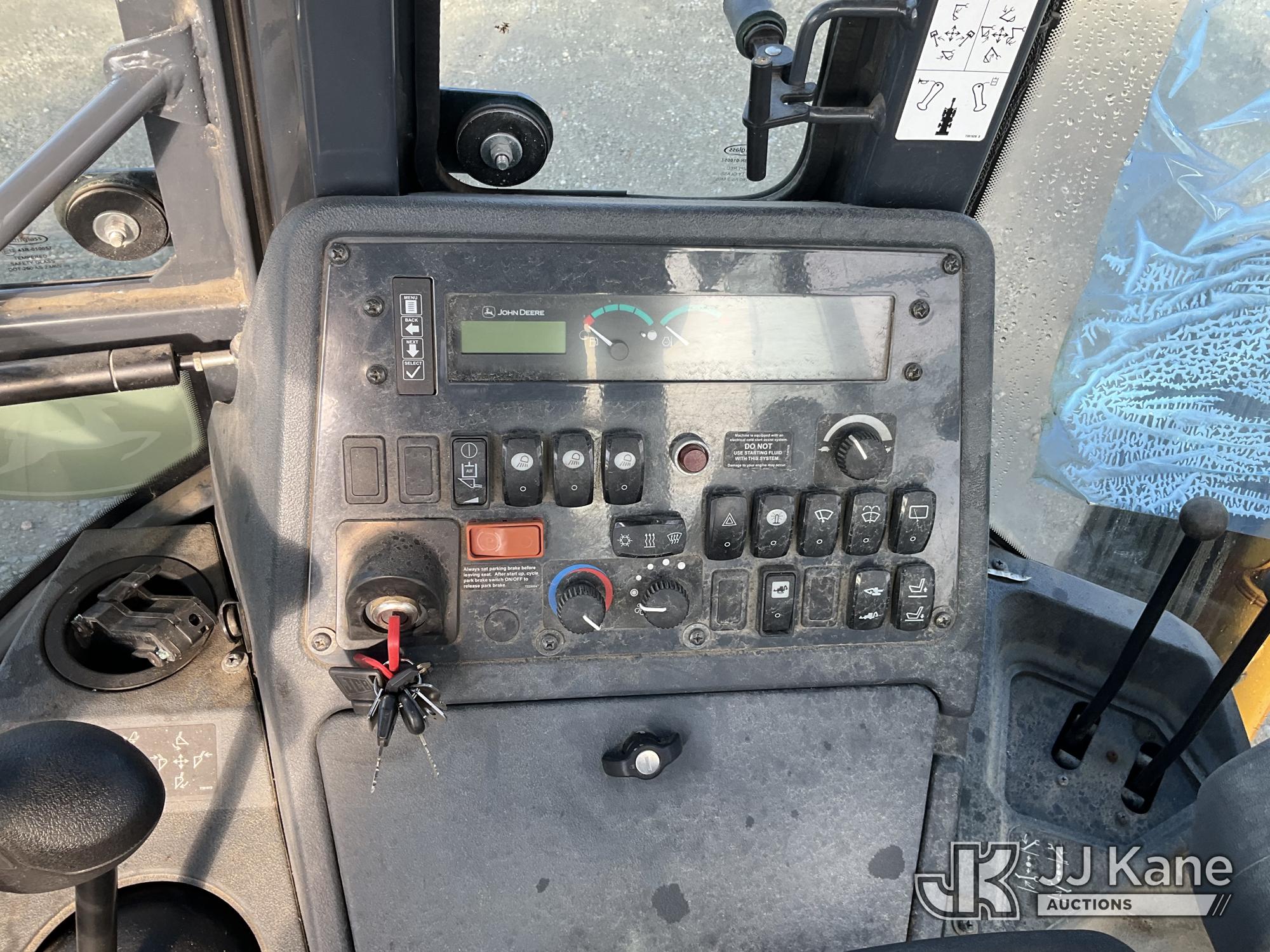 2022 John Deere 310L Tractor Loader Backhoe, J.D. powershift, diesel, A/C, with 4 in 1 loader bucket, extendahoe & EROPS, w/ A/C, (Runs & Moves) (Damaged Boom & Rear Windshield, Hydraulic Leak At Boom, Boom Does Not Operate, Damaged Curbside Rear Tire, Does Not Hold Air, Broken Glass In Cab) (Reads 4,056 hours) This is a Titled Item*