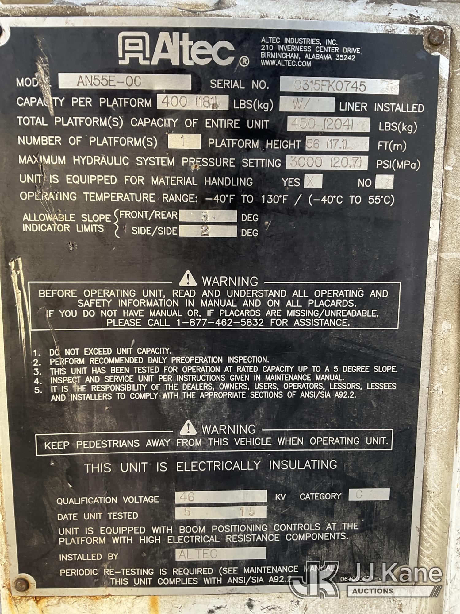 Altec AN55E-OC, 60 ft, Material Handling Bucket Truck s/n 0315FK0745, with Single Man Bucket & 4 Outriggers, rear mounted on 2016 Freightliner M2 106 4x4 Extended-Cab Utility Truck, 6.7L diesel, Auto, A/C, with Front Bumper Capstan/ Winch , (153,240 miles) (Runs, Moves & Upper Operates, Jump To Start) This is a Titled Item*
