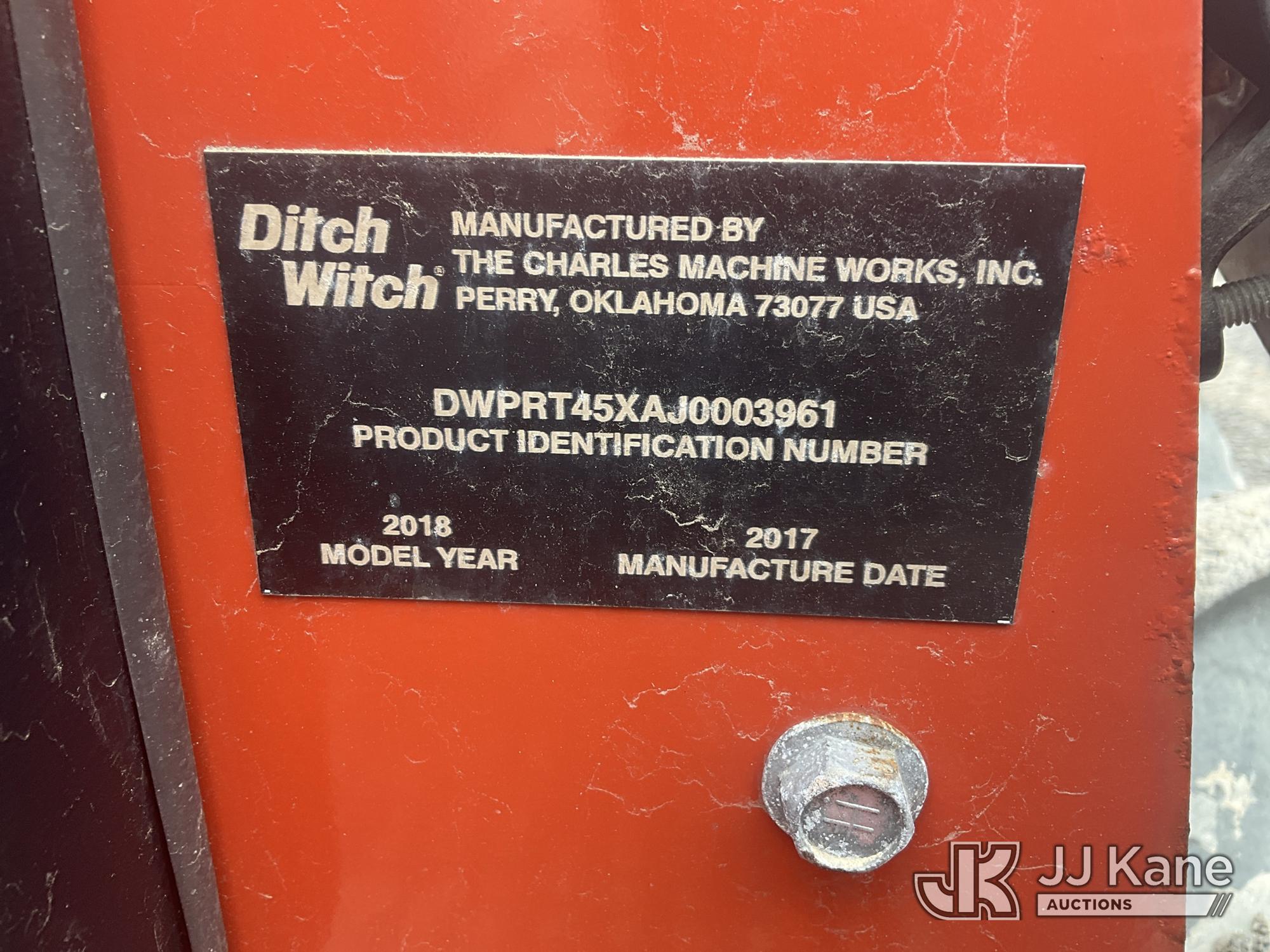 2018 Ditch Witch RT45 Rubber Tired Vibratory Cable Plow/Trencher, s/n DWPRT45XAJ0003961, Deutz diesel, Hydrostatic, with Backhoe Attachment, 12in Digging Bucket, Trencher Attachment, Cable Plow Attachment, 6 Way Backfill Blade & ROPS Post, (Runs, Moves & Operates ) (Reads 104 hours)*