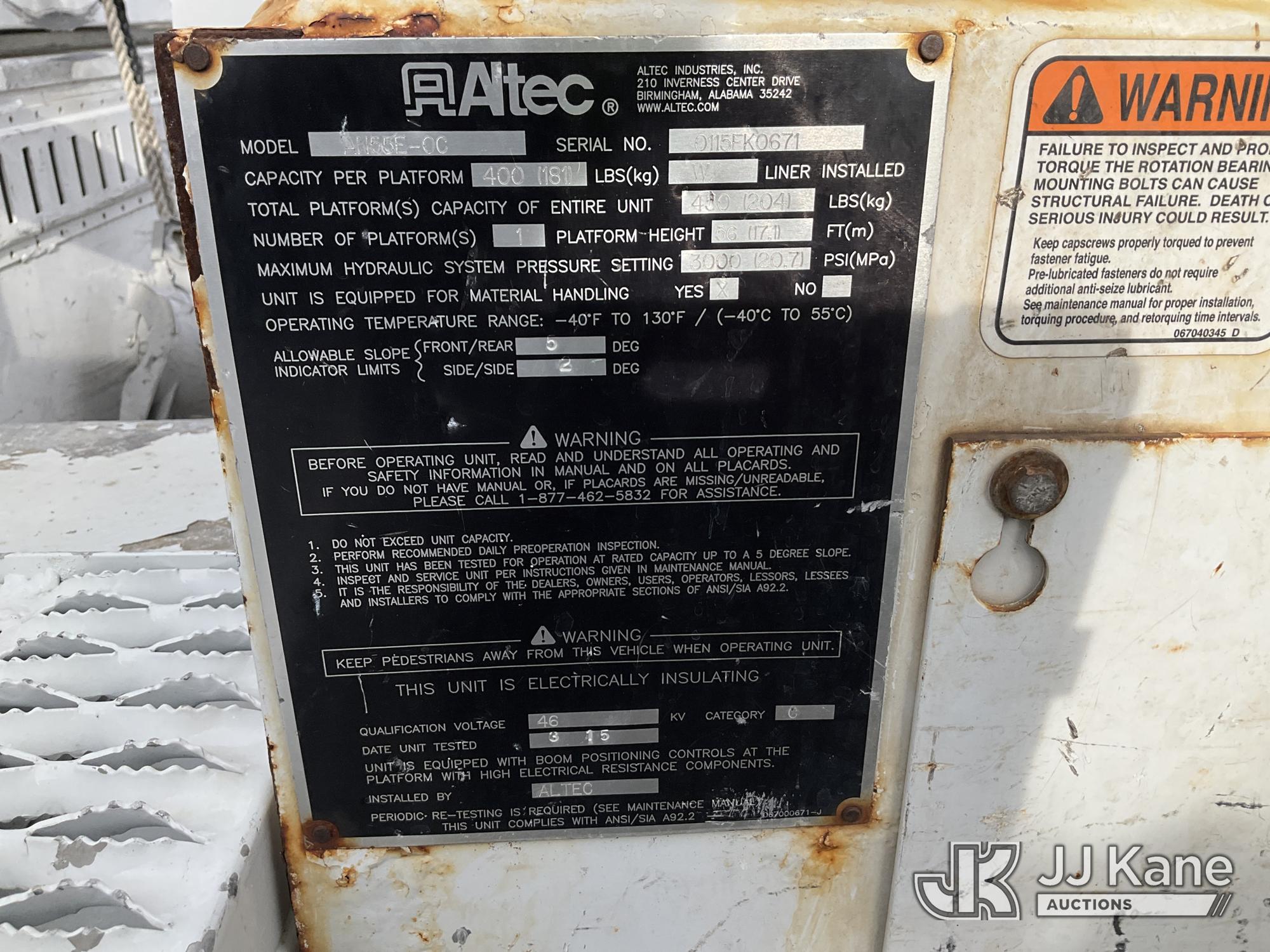 Altec AN55E-OC, 60 ft, Material Handling Bucket Truck s/n 0115FK0671, with Single Man Bucket & 4 Outriggers , rear mounted on 2016 Freightliner M2 106 Extended-Cab Utility Truck, 6.7L diesel, Auto, A/C, (167,178 miles) (Runs, Moves & Upper Operates, Jump to Start) This is a Titled Item*