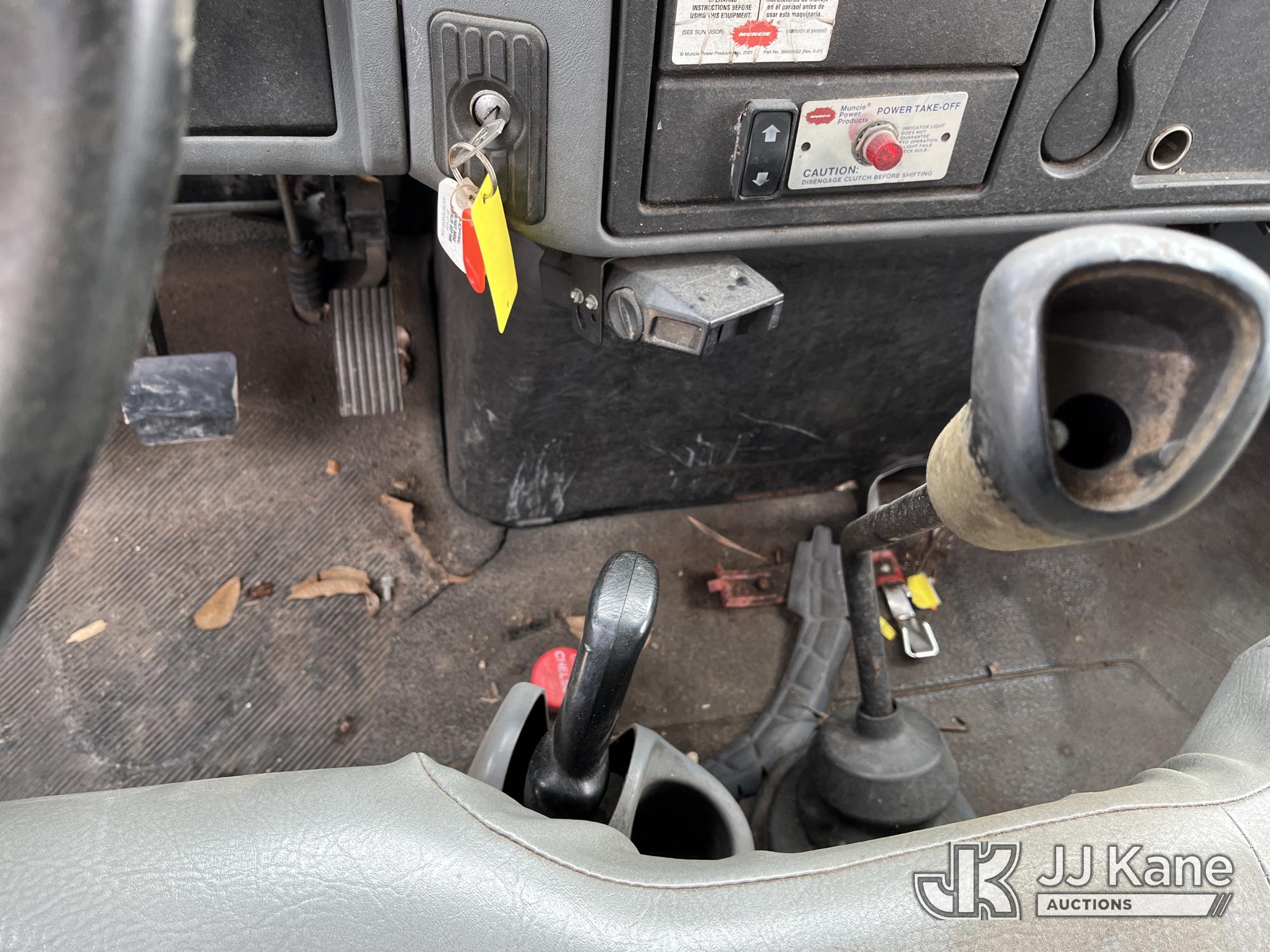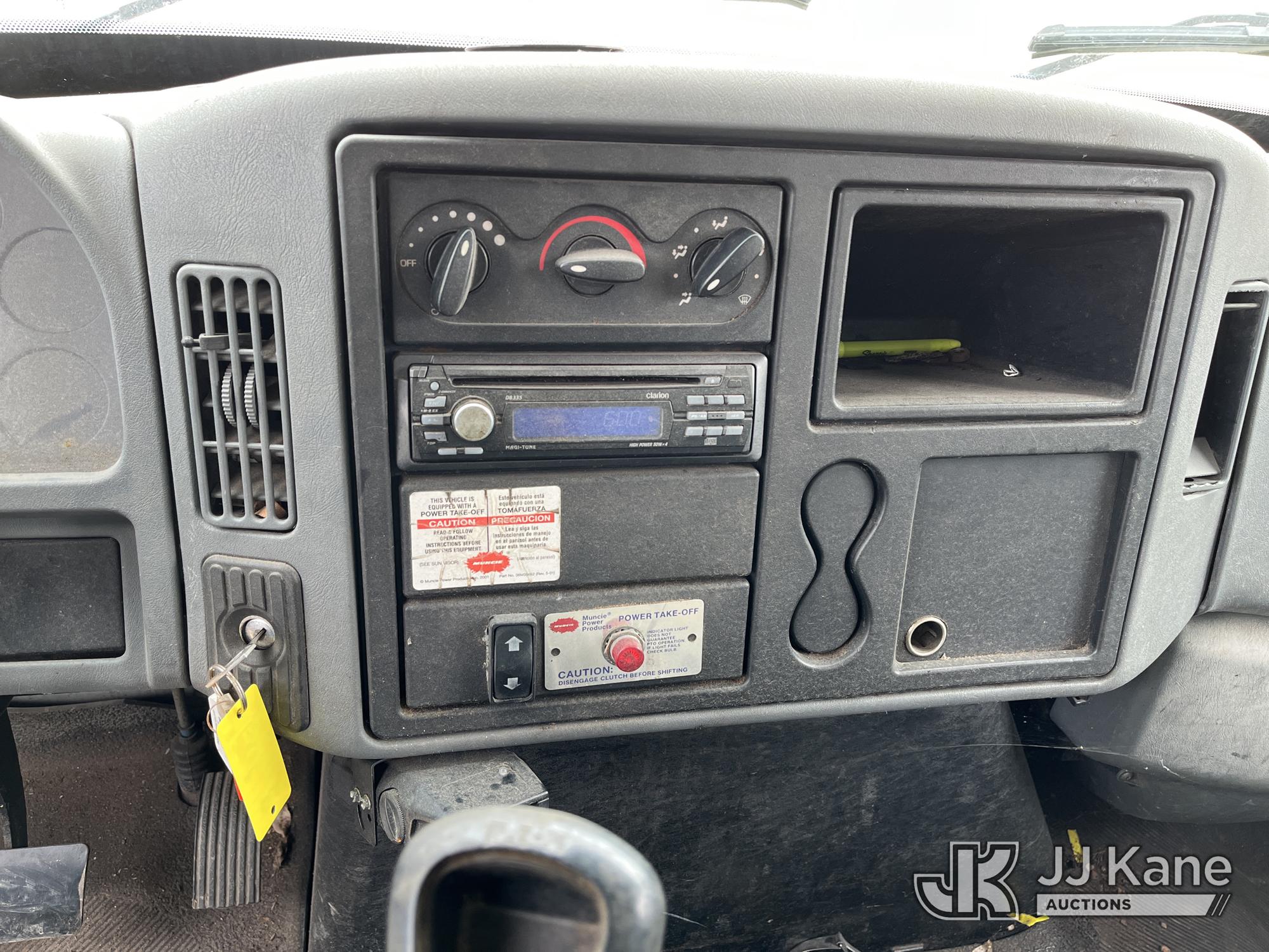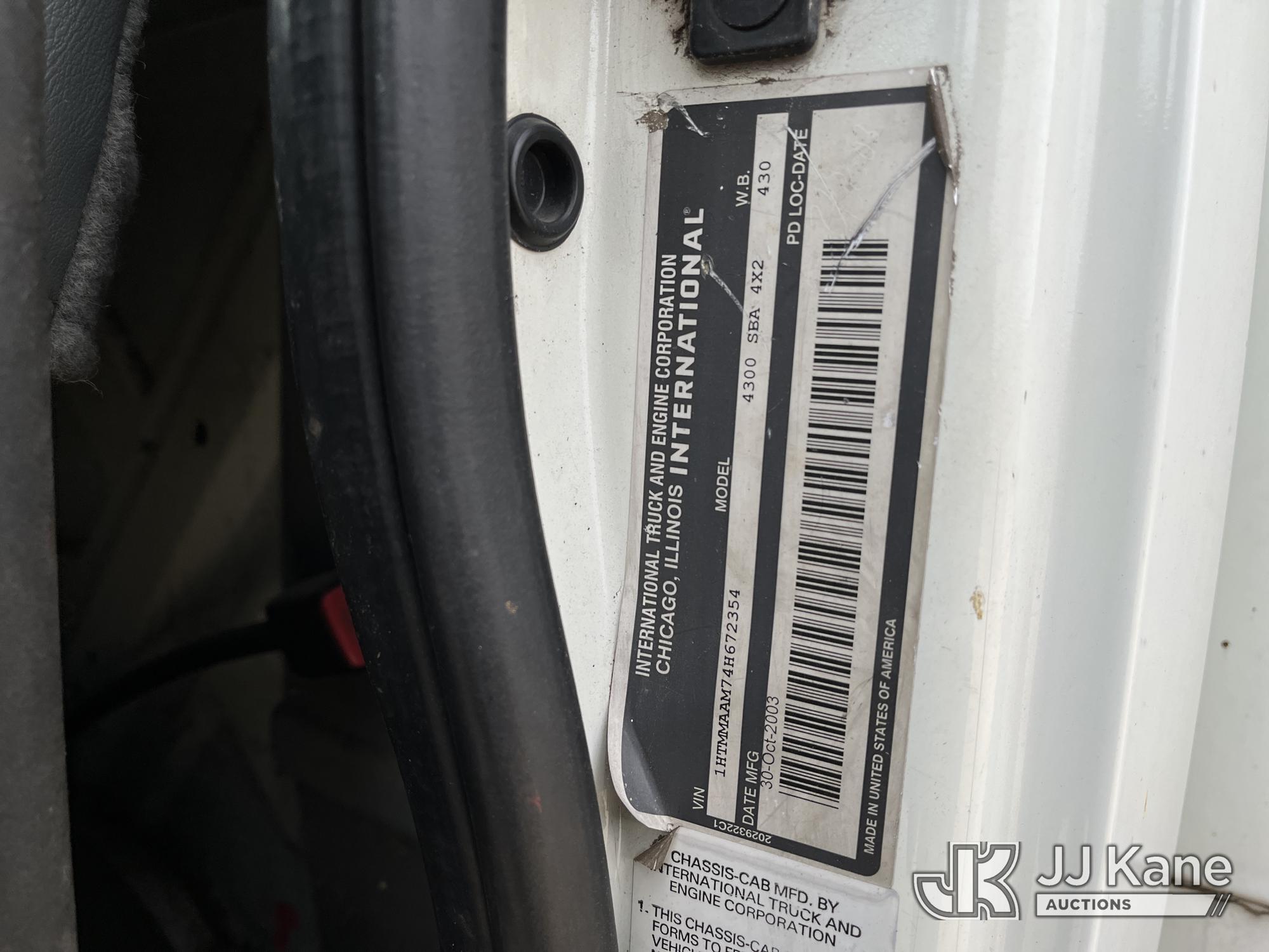 2004 International DuraStar 4300 Dump Chipper Truck, 7.6L Diesel manual, with Liftgate, (Exempt from Odometer Disclosure - Reads 149,986 miles) (Jump & Moves) (Does Not Run Without Battery, PTO Operates, Driver Side Window Missing, Cosmetic Issues) (Reads 9,556 hours) This is a Titled Item*