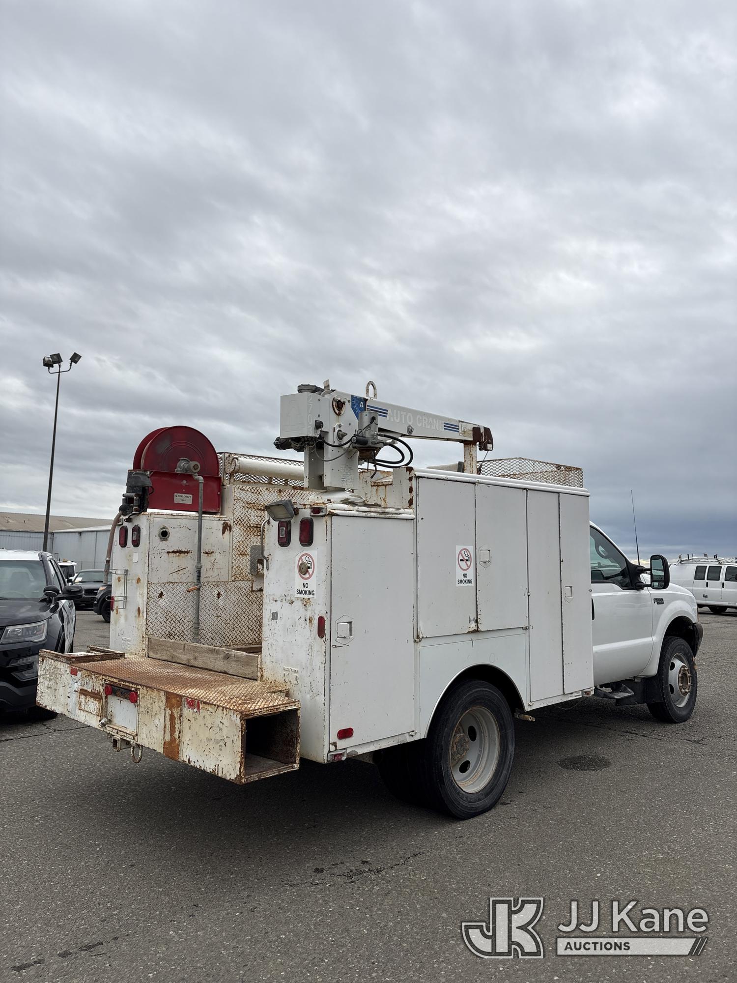 1999 Ford F-550 Regular Cab 2WD DRW Mechanics Service Truck, 7.3L V8 OHV 16V TURBO DIESEL 4-spd, A/C, with tow package, (Exempt from Odometer Disclosure - Reads 65,623 miles) (Runs & Moves) (Windshield Replaced) Subject to CARB Regs,CARB non Compliant,Cannot Operate on CA Roads/Highways until Compliant This is a Titled Item*