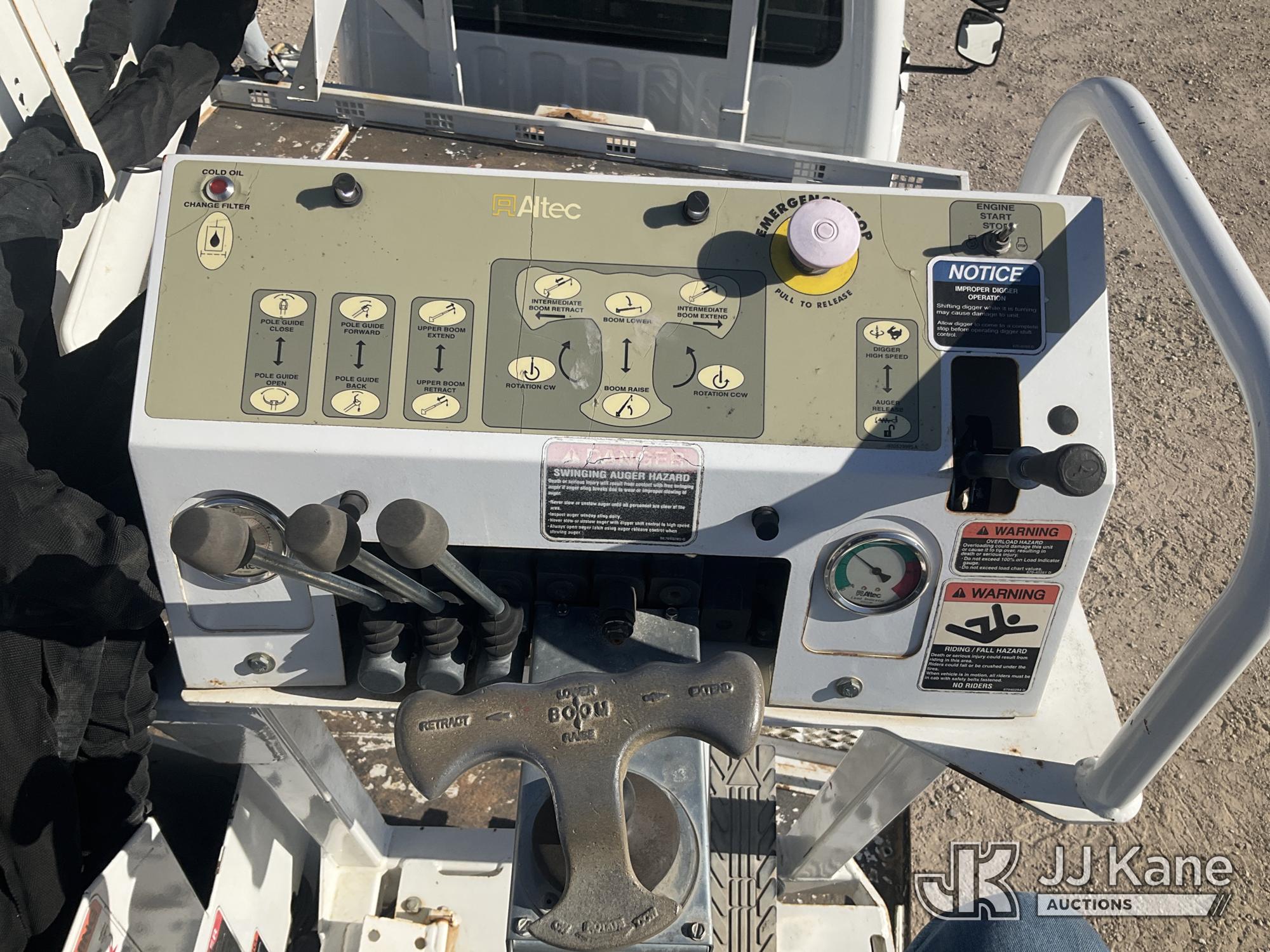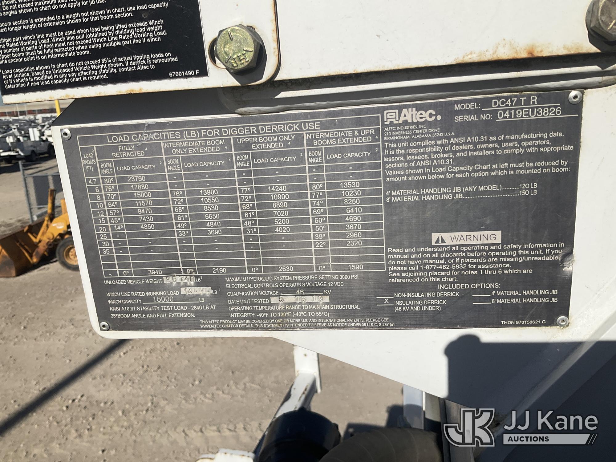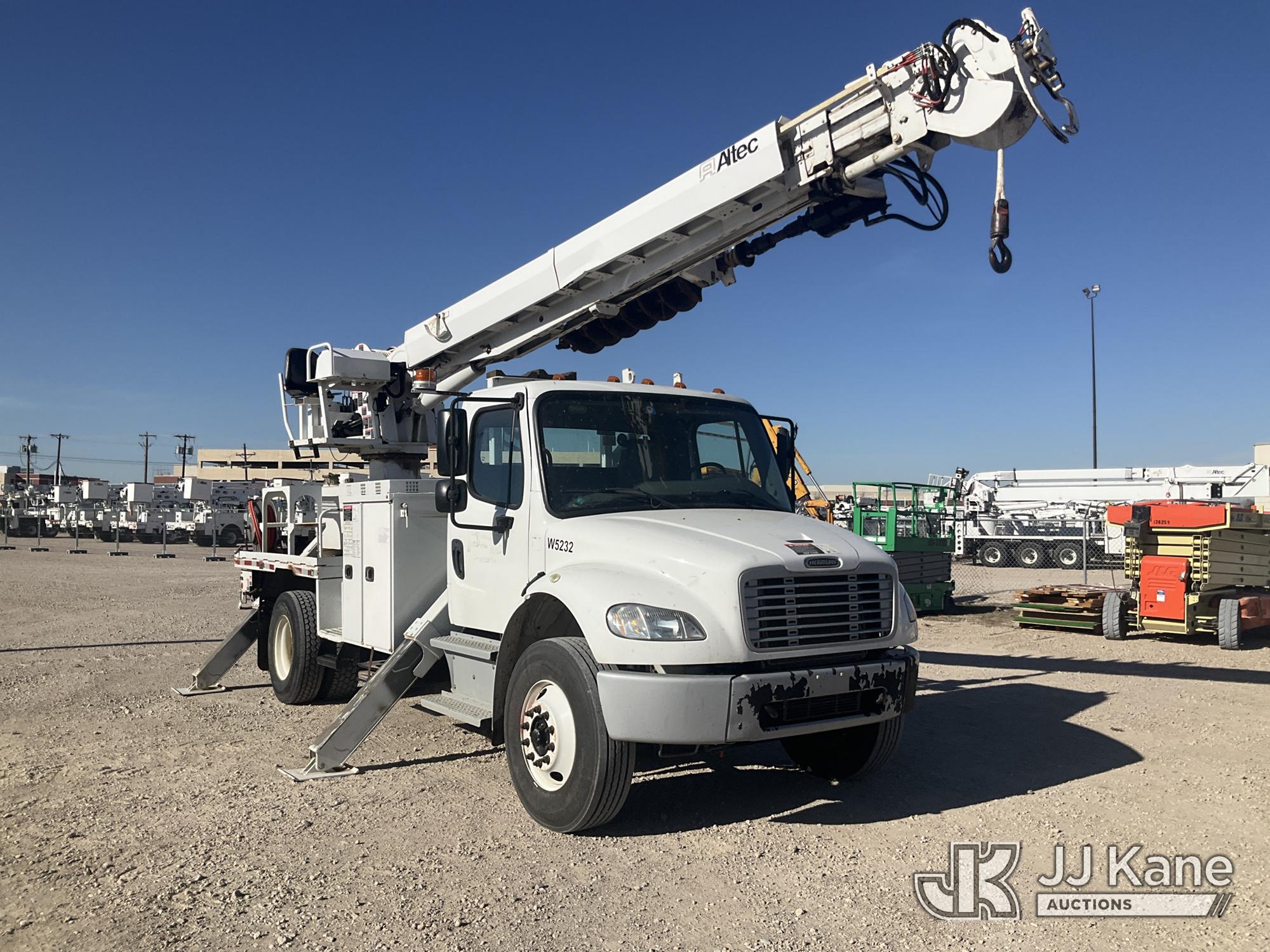 Altec DC47-TR, 23,790 Lb Digger Derrick s/n 0419EU3826, with 47' sheave height, 3 section hyd boom, 2 spd digger, heel winch, pole grabs, 4 hydraulic outriggers & riding console, rear mounted on 2020 Freightliner M2 Flatbed/Utility Truck, 6.7L Diesel Auto, A/C, (58,603 miles) (Runs, Moves & Upper Operates) (Reads 5,051 hours) This is a Titled Item*