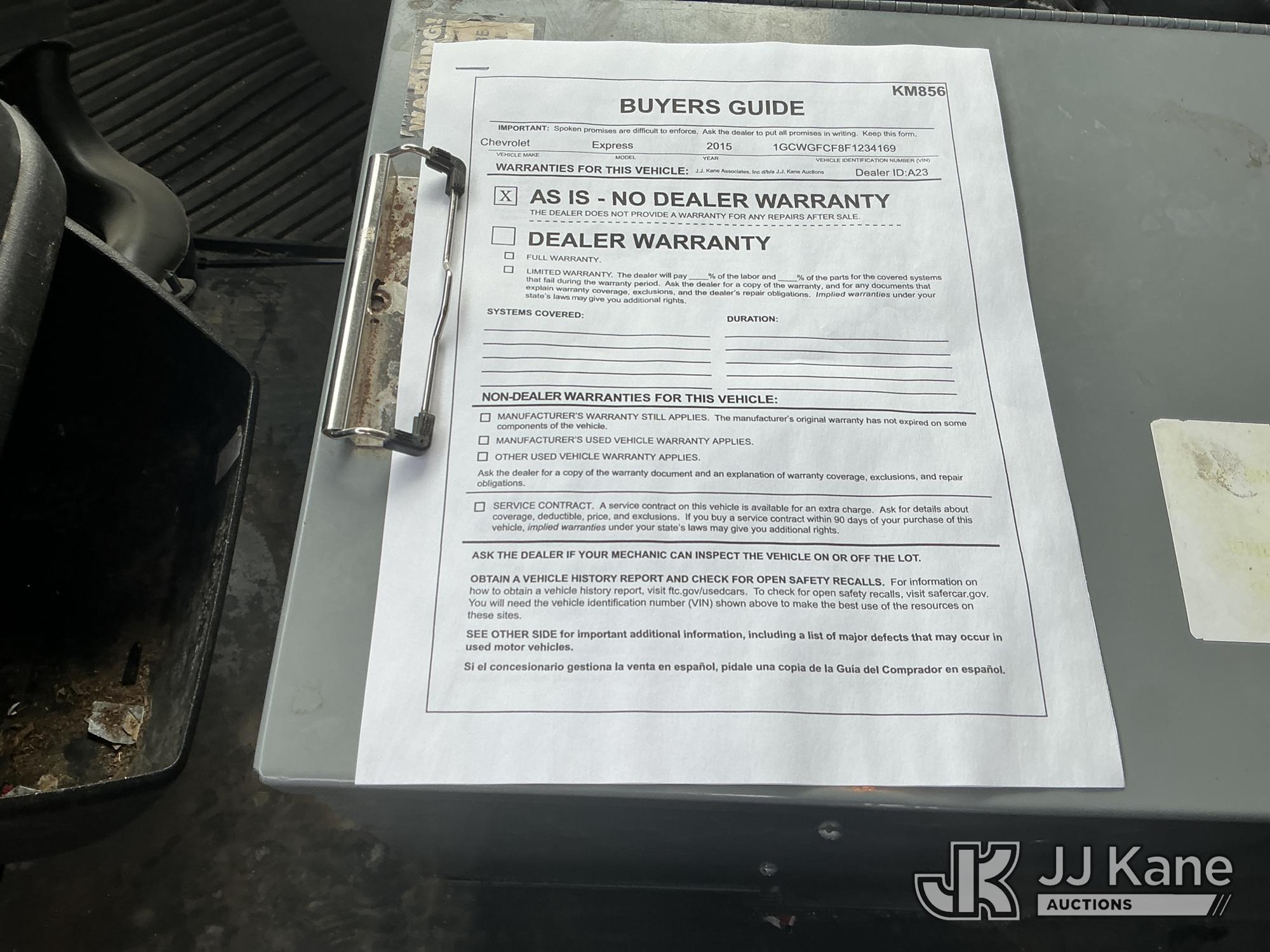 2015 Chevrolet Express G2500 Cargo Van, 4.8L V8 gas, RWD, 6-Speed Automatic, A/C, (79,451 miles) (Runs & Moves) This is a Titled Item*