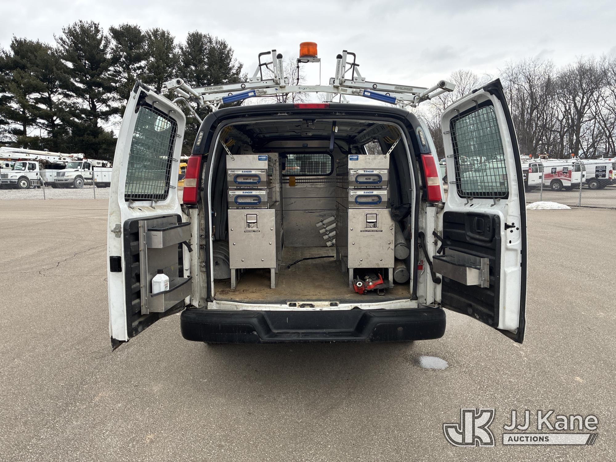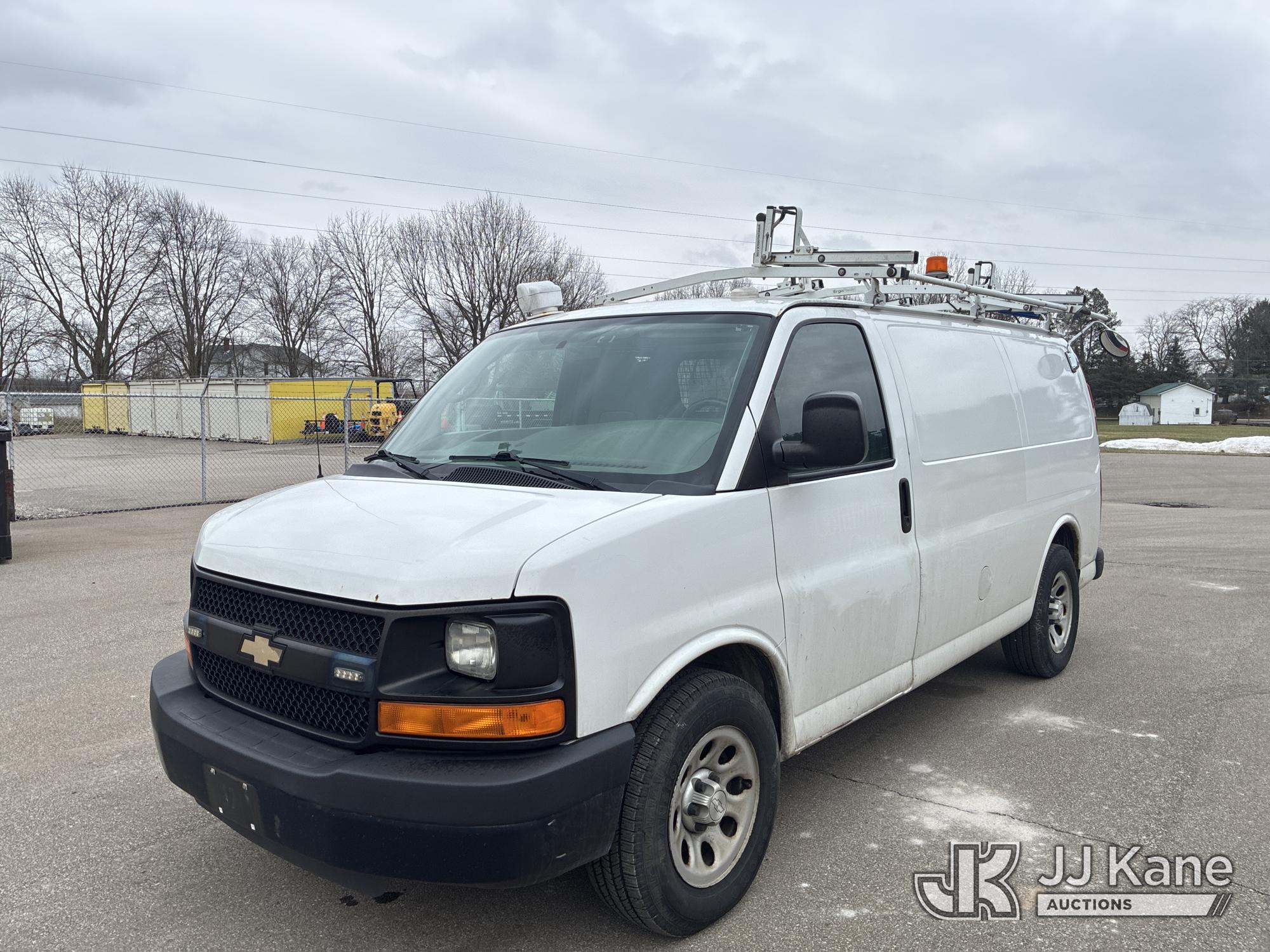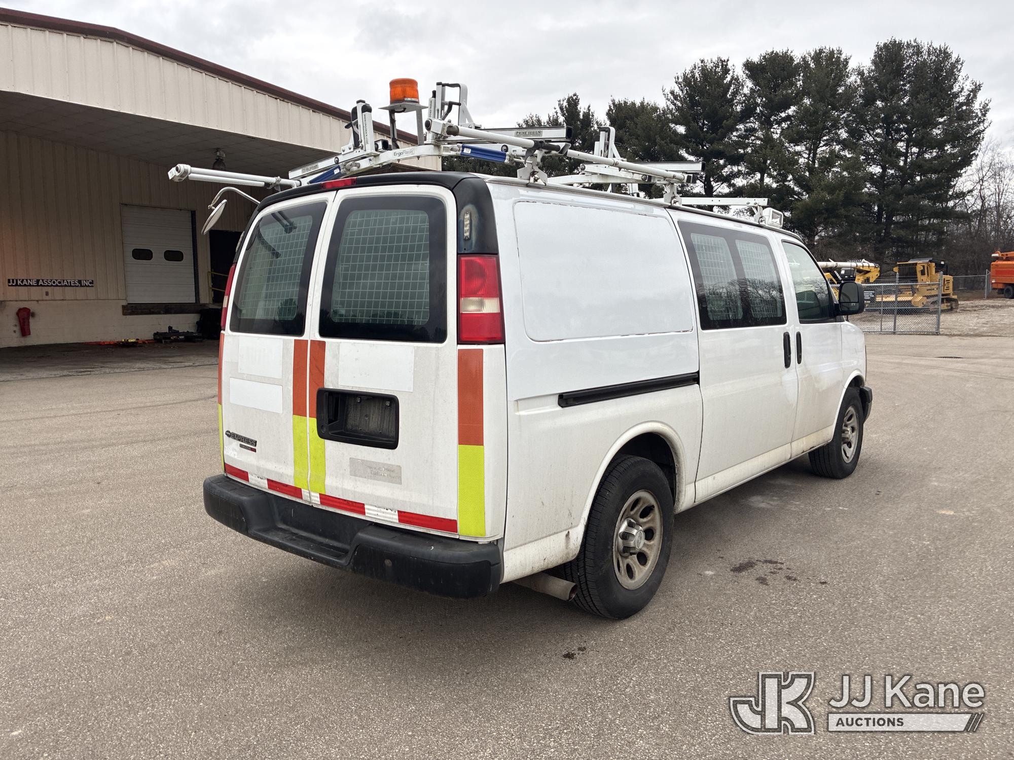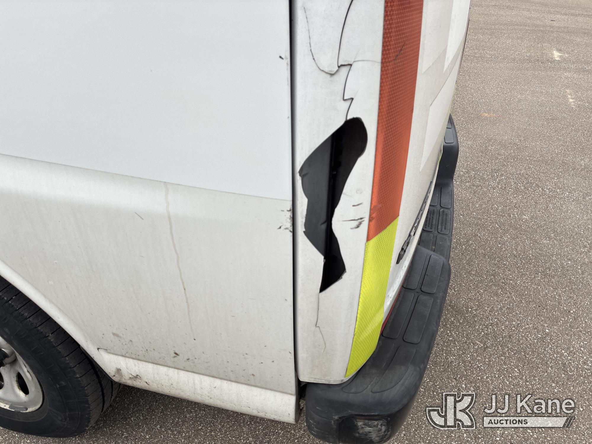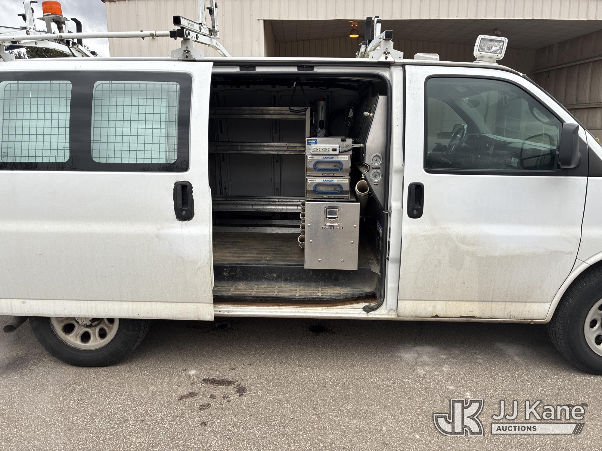 2014 Chevrolet Express G1500 Cargo Van, 5.3L V8 OHV 16V gas, AWD, 4-Speed Automatic, A/C, with GAST 12VDC Air Compressor, (148,235 miles) (Runs & Moves) (Interior Damage, Body Damage) This is a Titled Item*