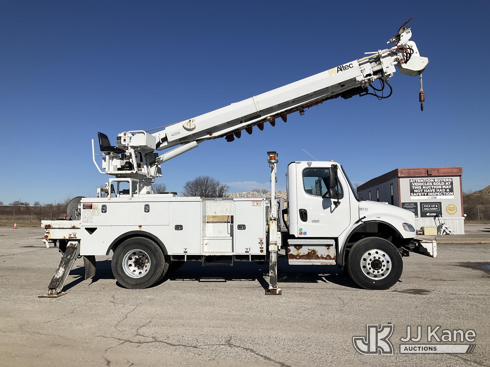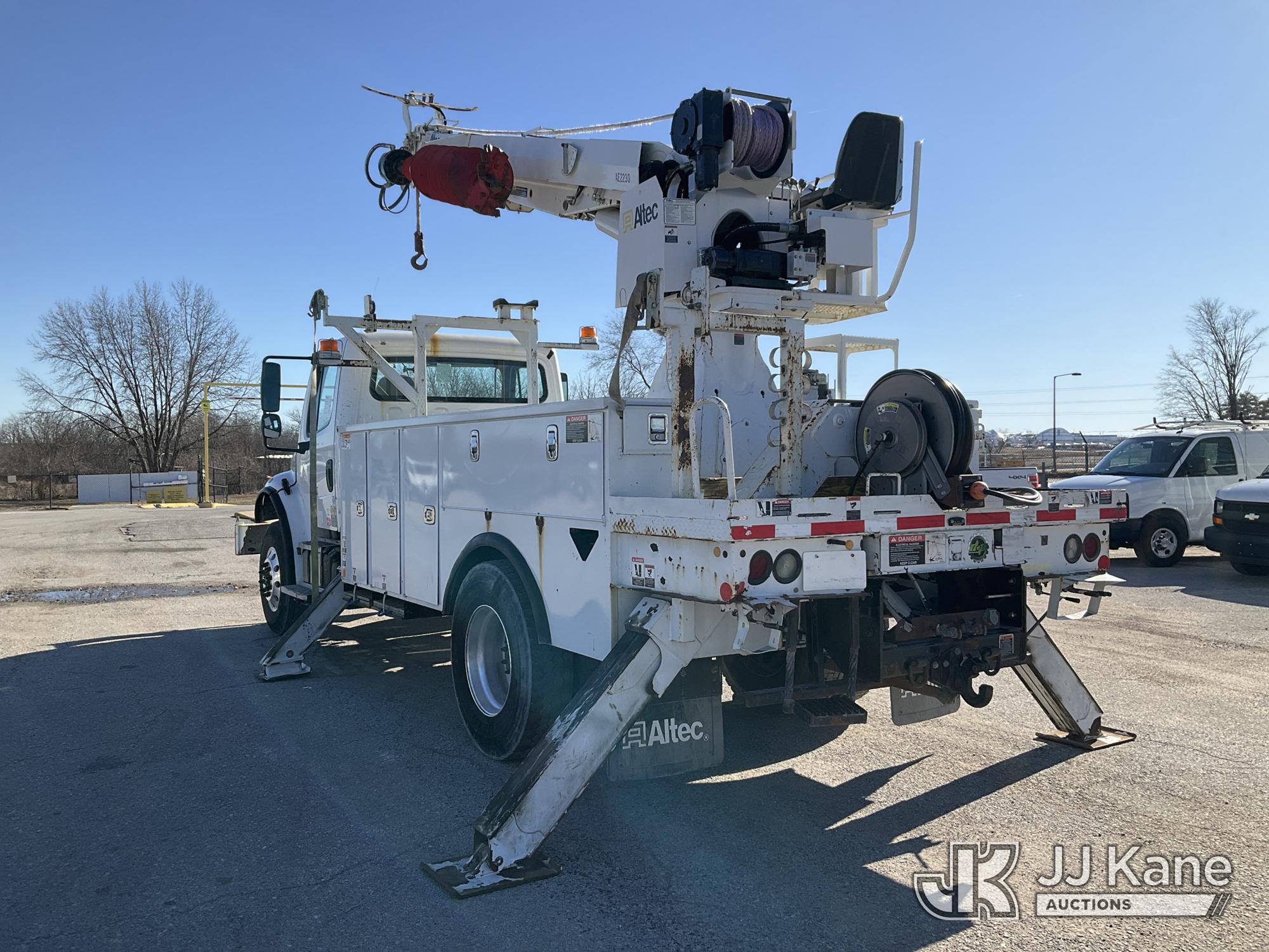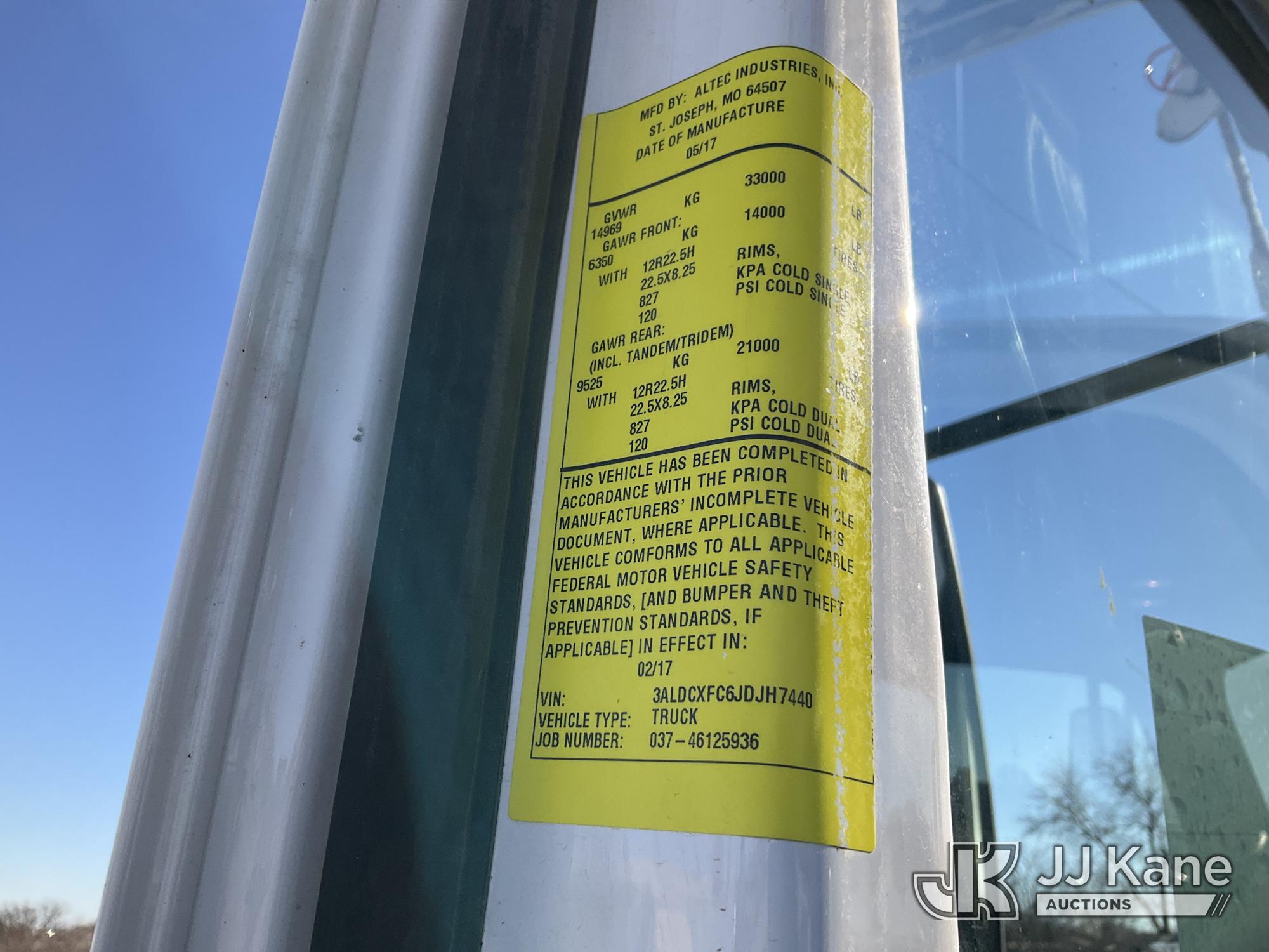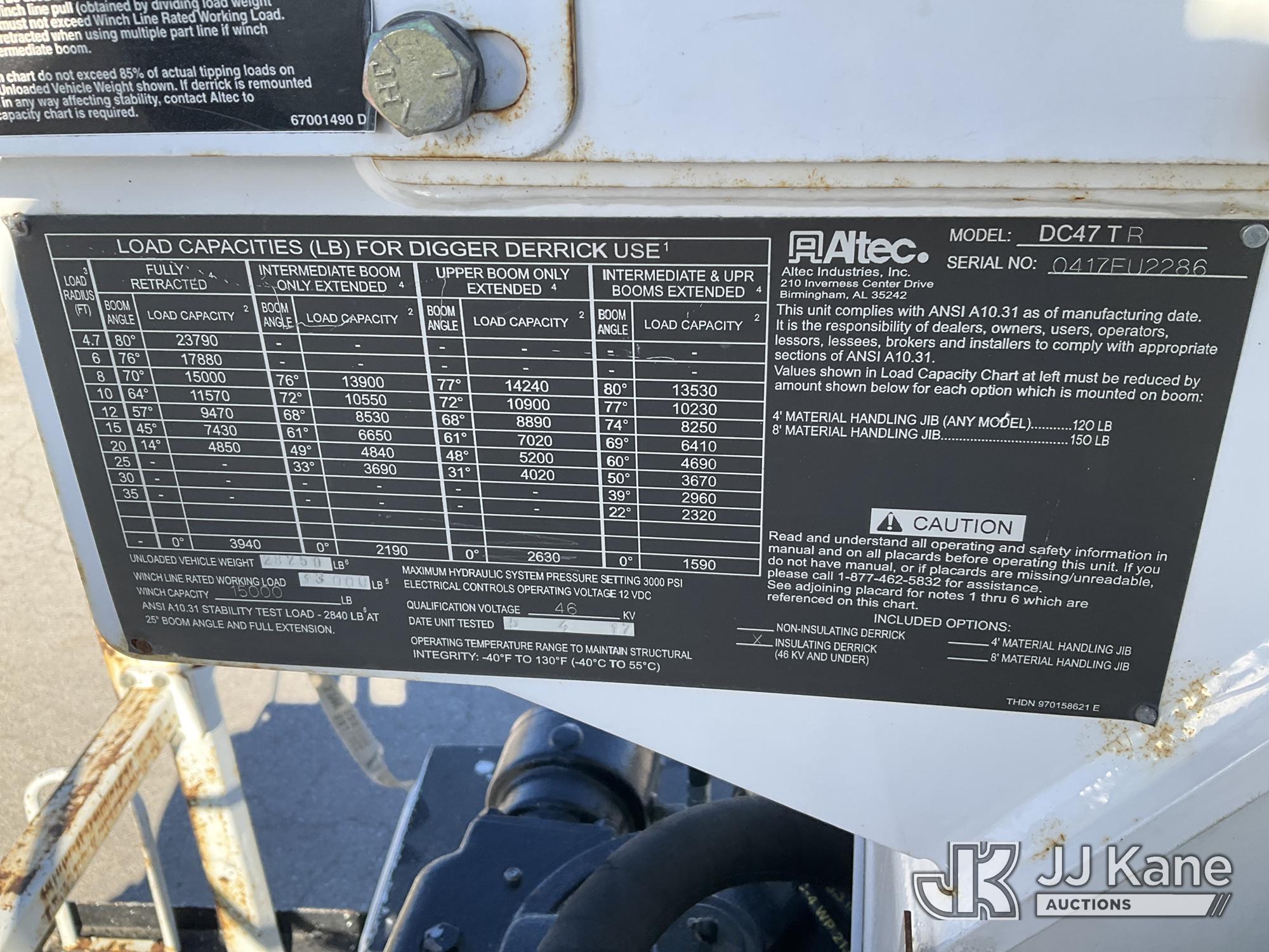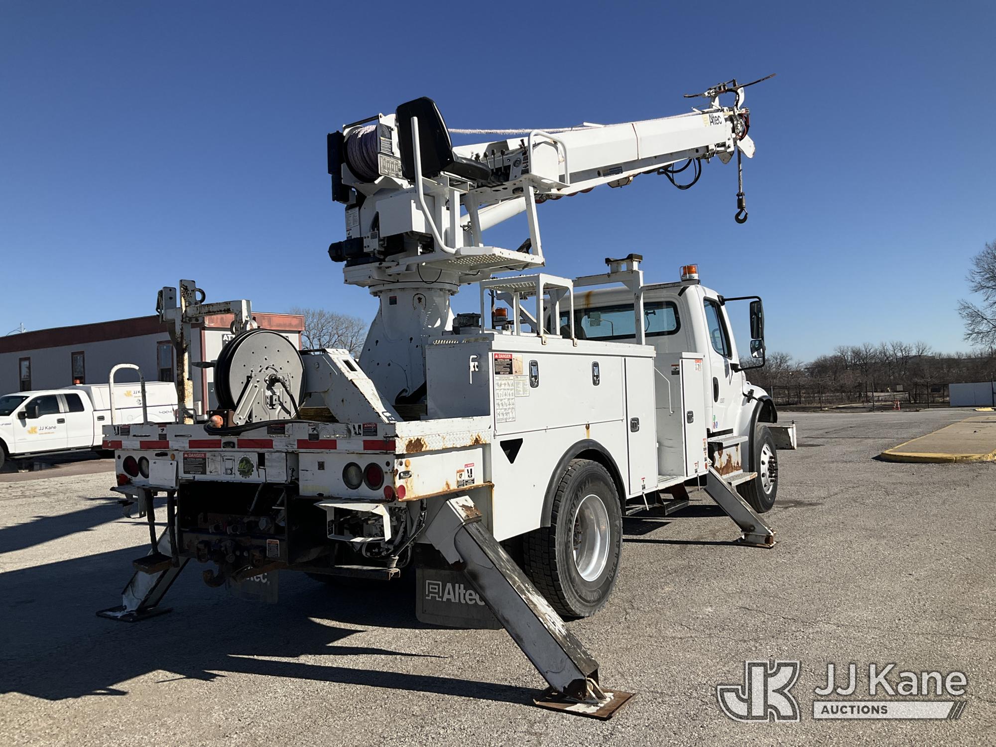 Altec DC47-TR, 23,790 Lb Digger Derrick s/n 0417EU2286, with 47ft sheave height, 2spd digger, pole guides, heel winch, riding console & 4 hyd outriggers, rear mounted on 2018 Freightliner M2 106 Utility Truck, Cummins diesel, Auto, A/C, (78,464 miles) (Runs, Moves, & Upper Operates) (Fuel Def Light On, No Throttle Response While In Neutral, Seller States: Missing & Loose Slide Pads At Base End Of Intermediate Boom ) (Reads 7,037 hours) This is a Titled Item*