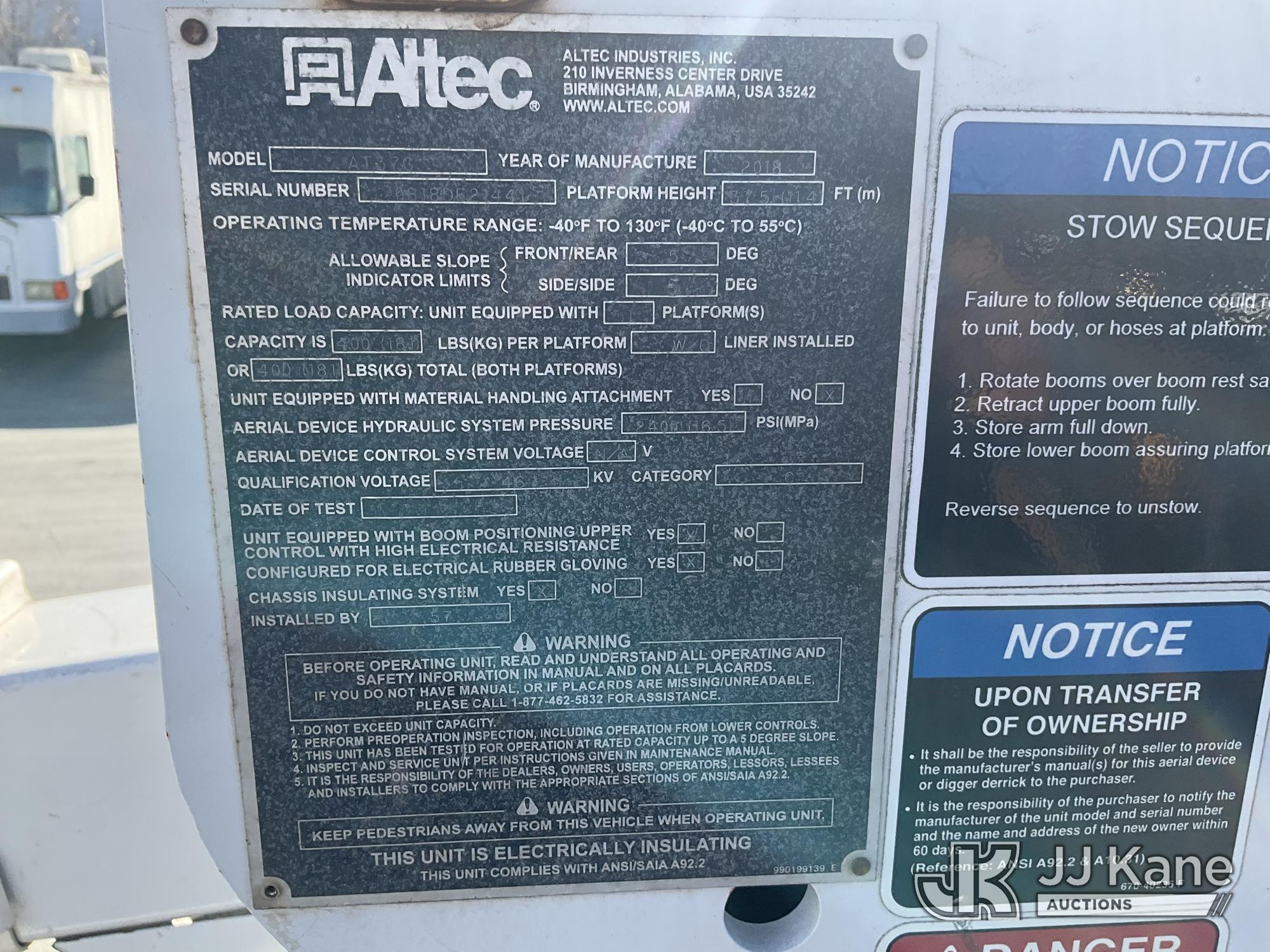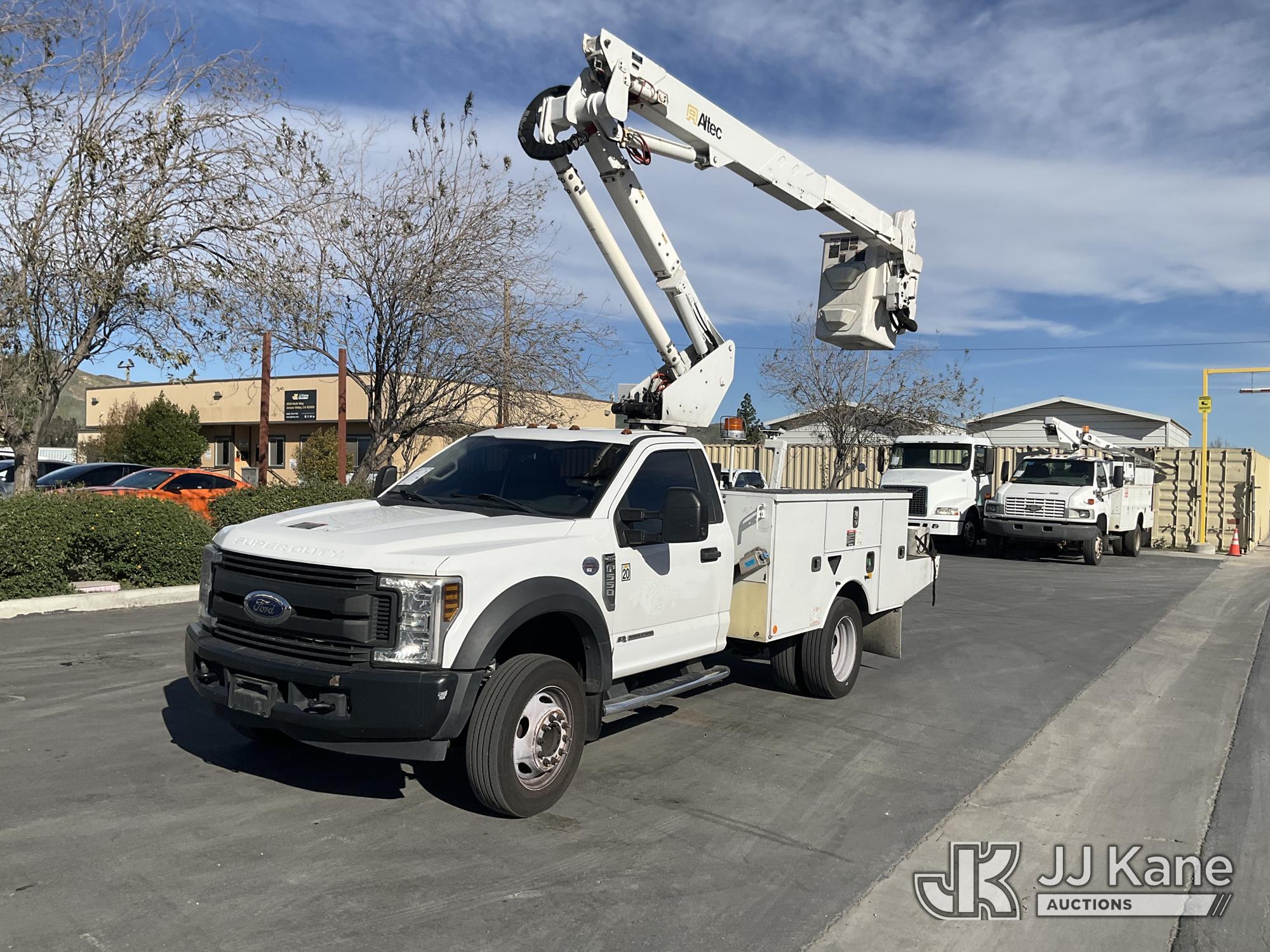 Altec AT37G, 42 ft, Articulating & Telescopic Bucket Truck s/n 0818DE21441, with Single-Man Bucket, mounted behind cab on 2018 Ford F-550 Service Truck, 6.7L Diesel Auto, A/C, with Tow Hitch, (107,522 miles) (Runs, Moves & Upper Operates) This is a Titled Item*