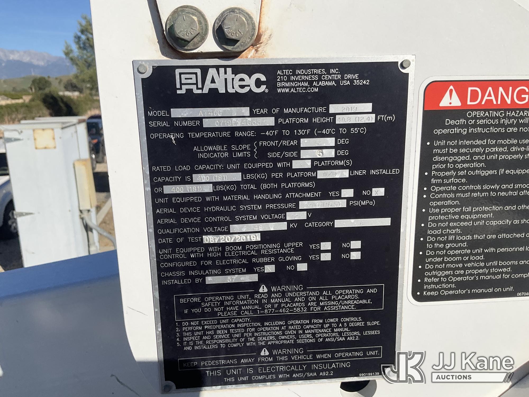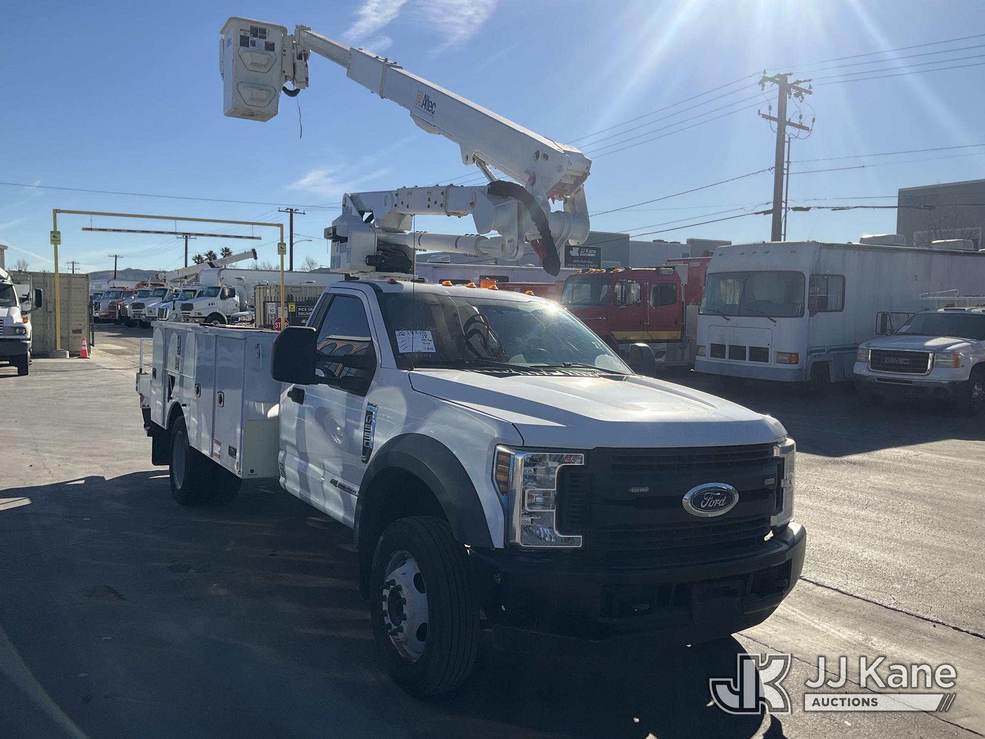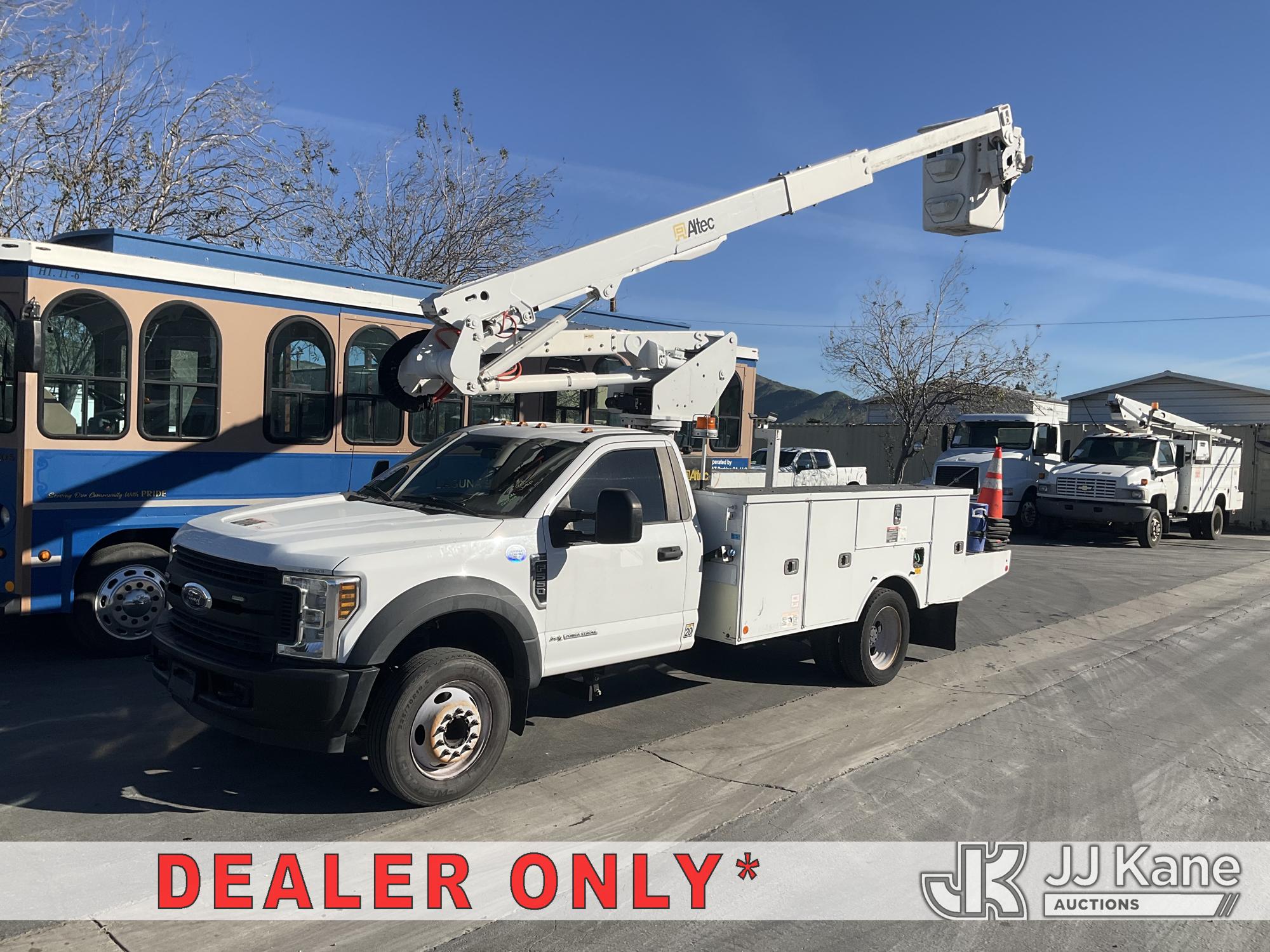 Altec AT40G, 45 ft, Articulating & Telescopic Bucket Truck s/n 0719EY4653, with single-man bucket, mounted behind cab on 2018 Ford F-550 Regular Cab DRW 2WD Service Truck, 6.7L V8 OHV 16V DIESEL RWD, Auto, A/C, with Tow Package , (55,466 miles) (Runs, Moves & Upper Operates, Failed Opacity Test) (Bidding Restricted to Licensed Vehicle Dealers Only), May be subject to ARB Regulations This is a Titled Item*