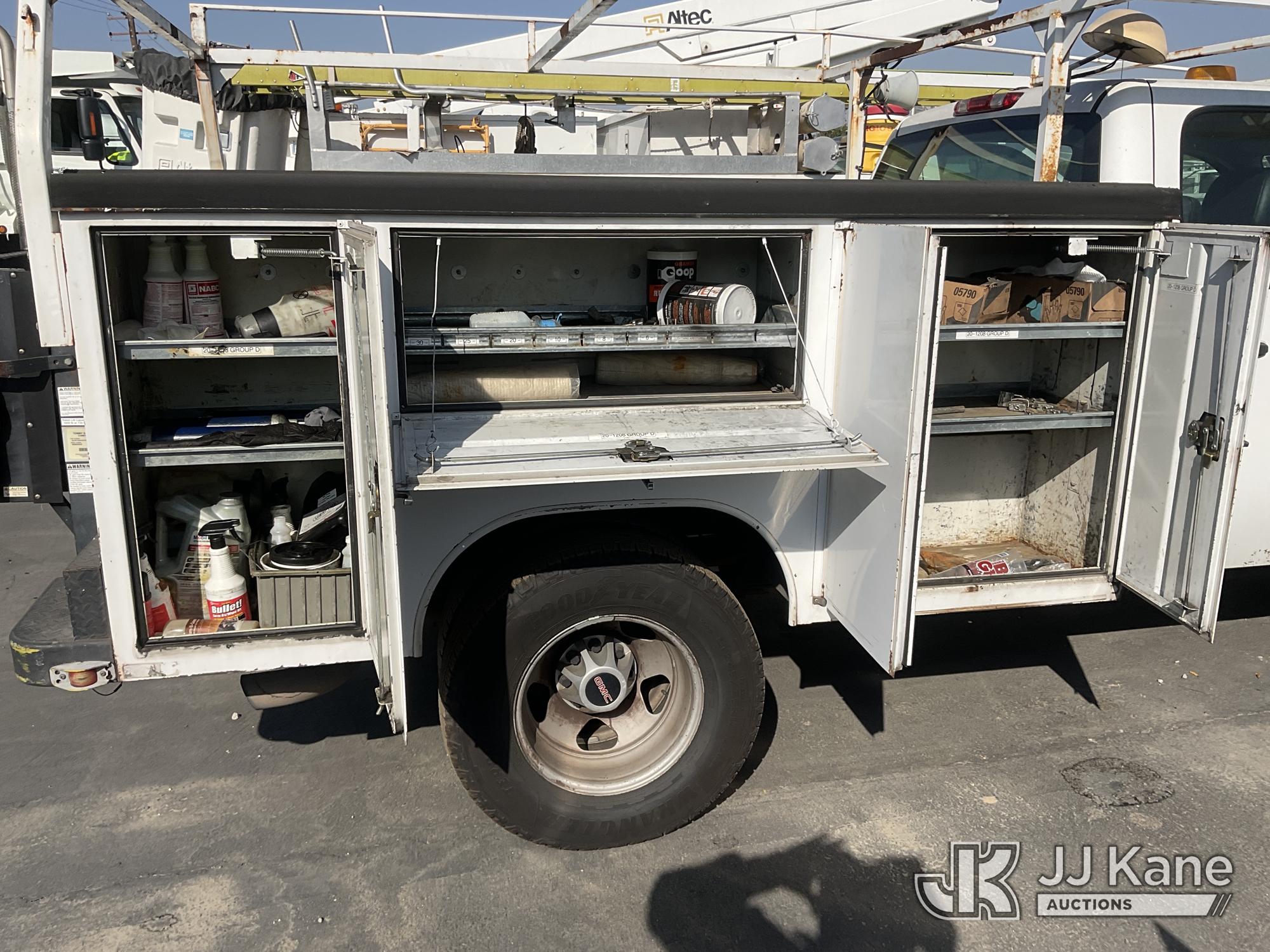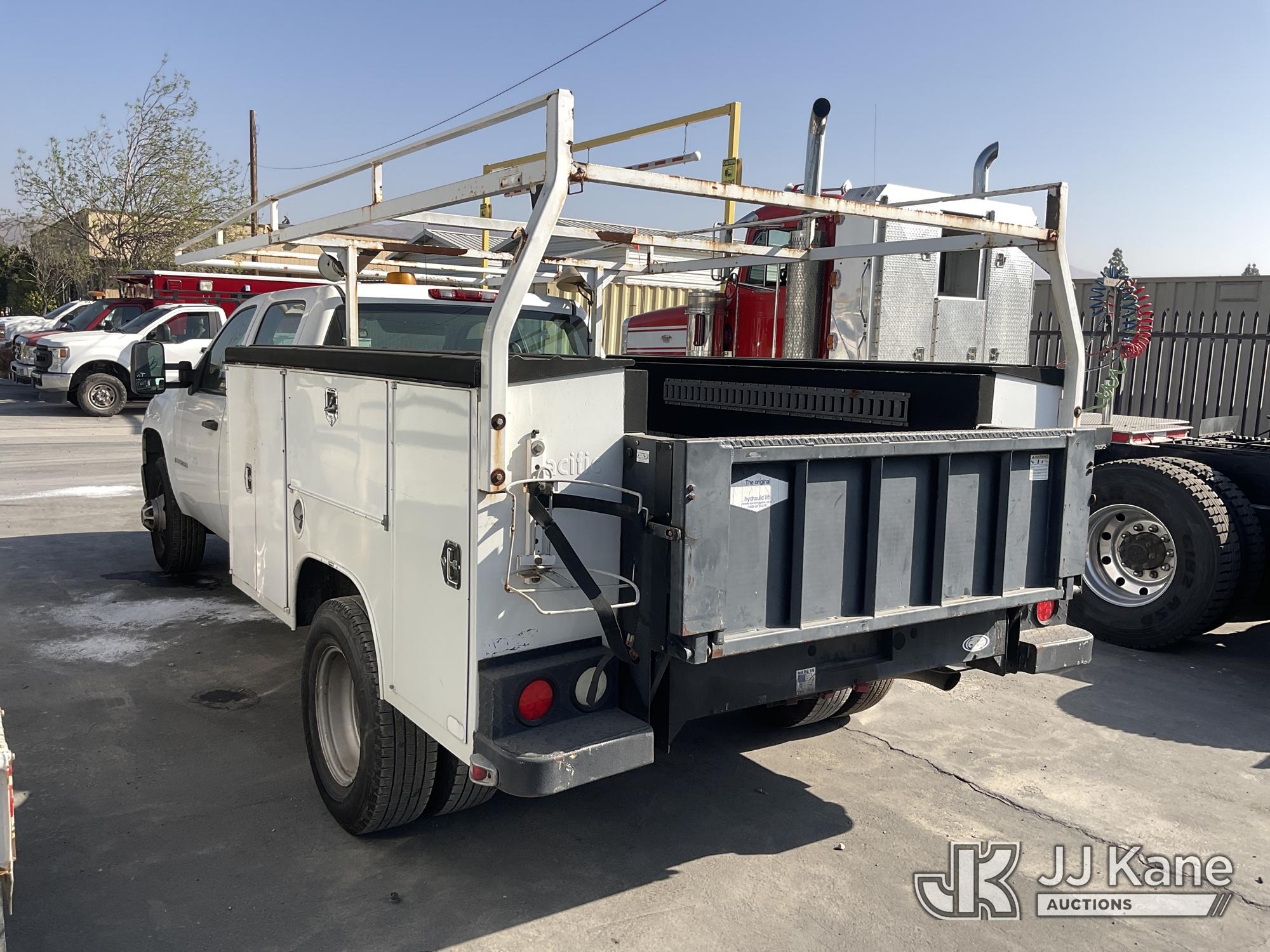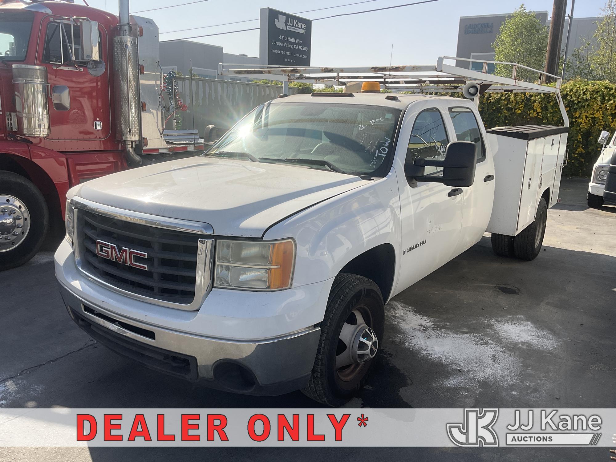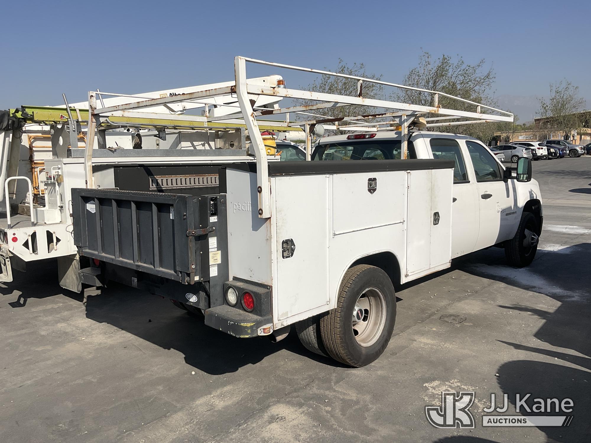 2009 GMC Sierra 3500HD Work Truck Crew Cab DRW 2WD Crew-Cab Service Truck, s/n 1GDJC73K79F166815, 6.0L V8 OHV 16V RWD, Gas, 6-Speed Automatic, A/C, with Lift Gate, Ladder Rack, (231,226 miles) (Not Running, Motor Seized) (Bidding Restricted to Licensed Vehicle Dealers Only), This is a Titled Item*