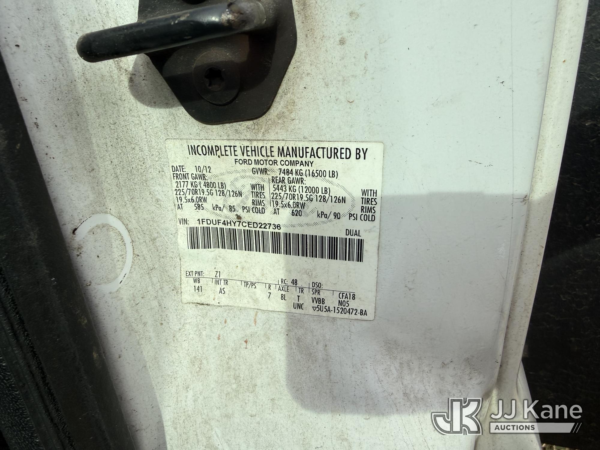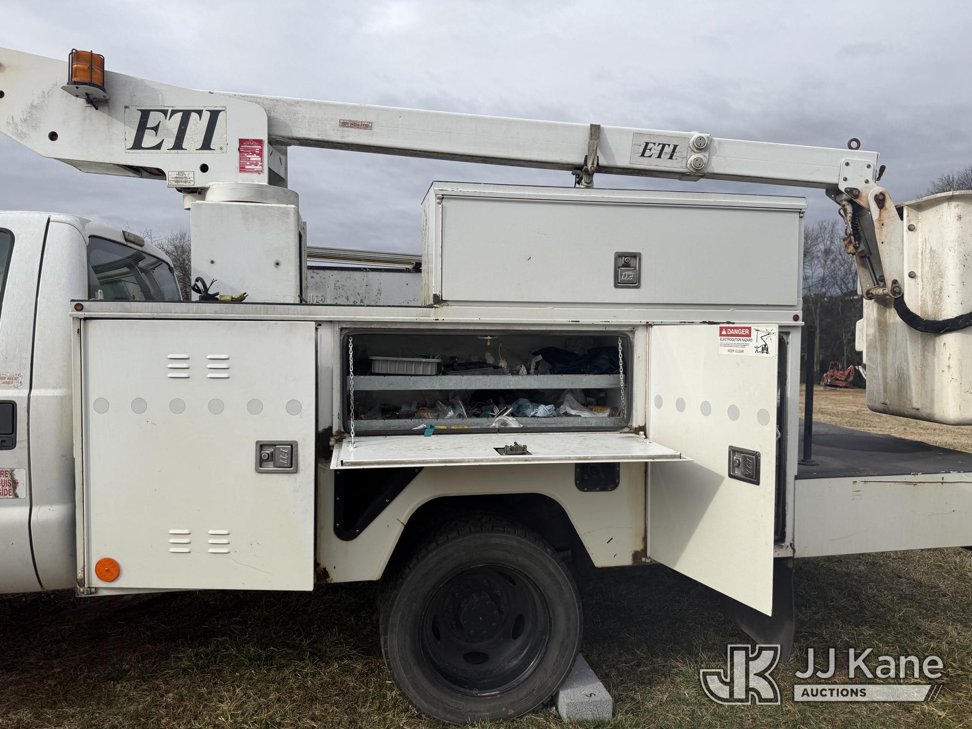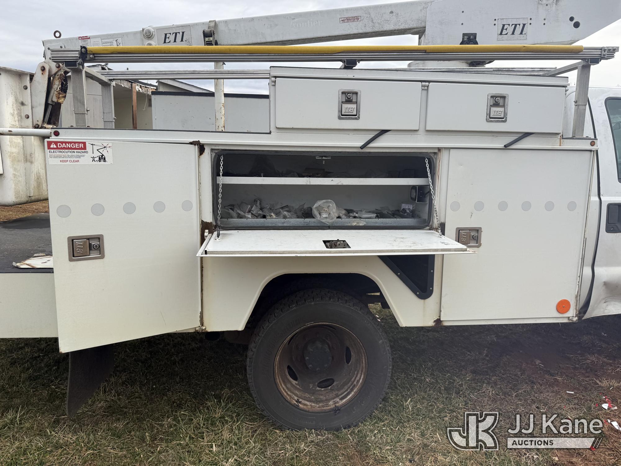 ETI ETT29-SNT, 34 ft, Telescopic Insulated Bucket Truck s/n 1212T99886, with single-man bucket, mounted behind cab on 2012 Ford F450 4x4 Service Truck, 10-cyl gas, Auto, True Mileage Unknown (Not Running, Missing Parts, Missing Tire, Condition Unknown, Upper Condition Unknown) This is a Titled Item*
