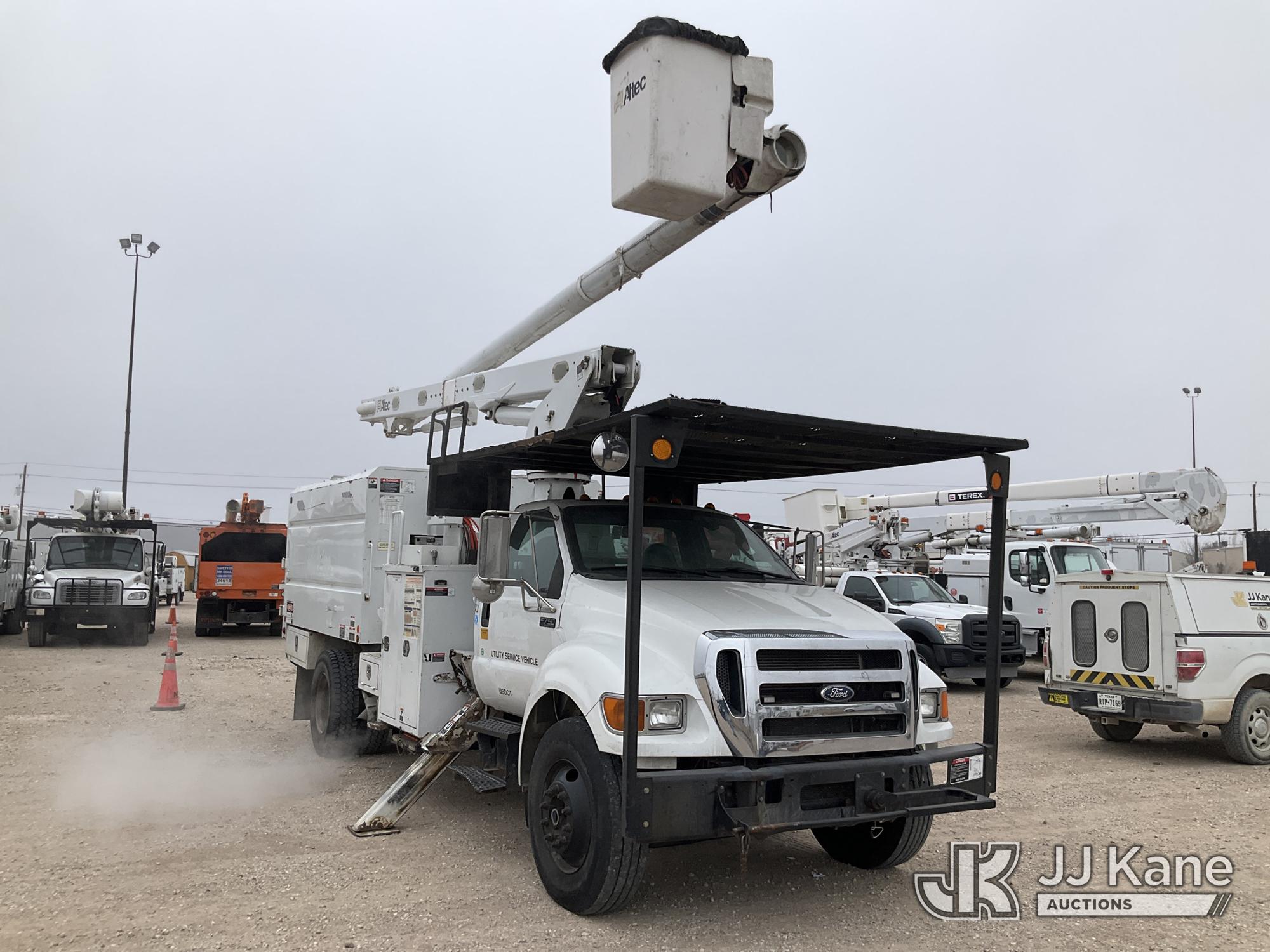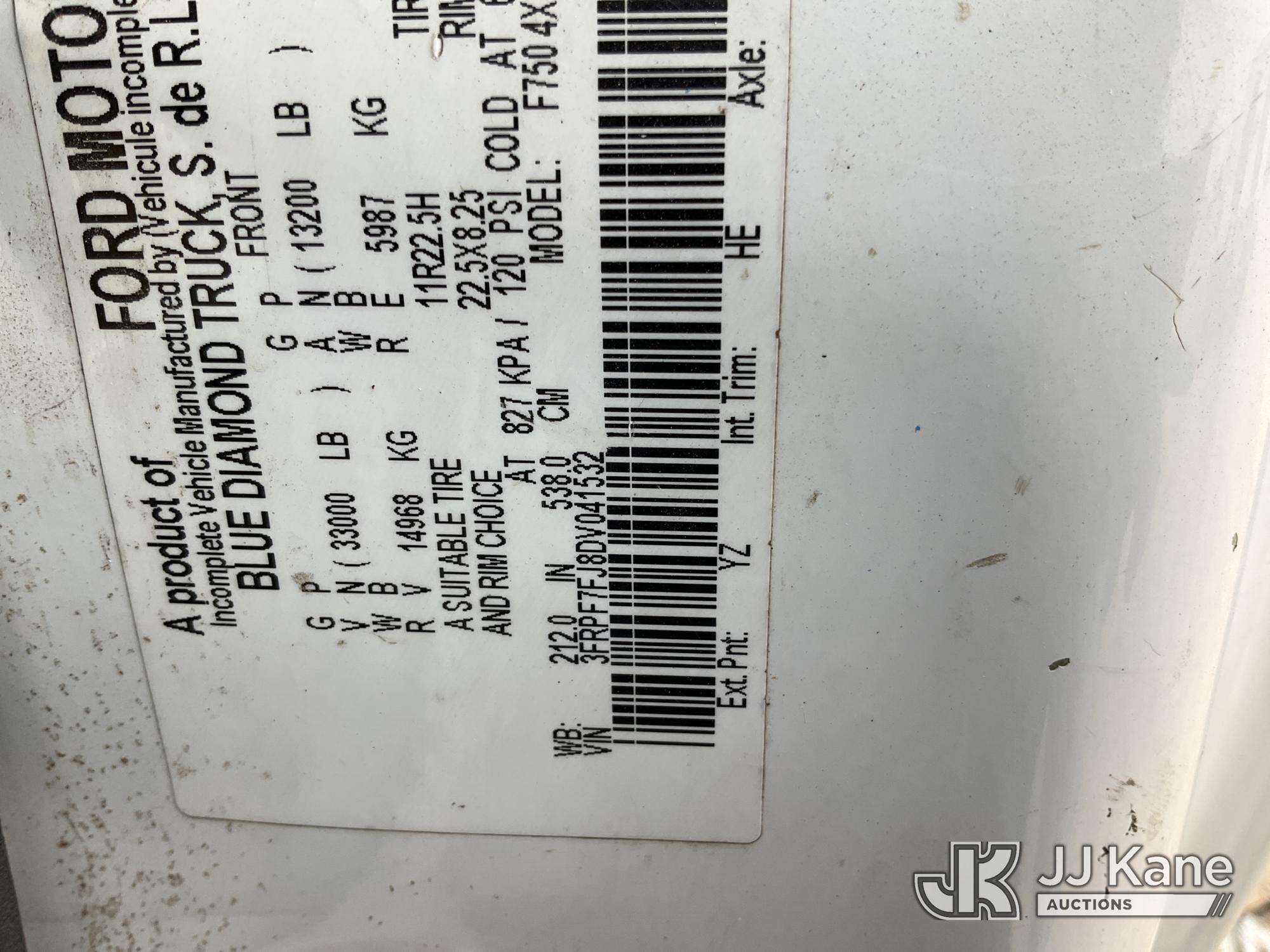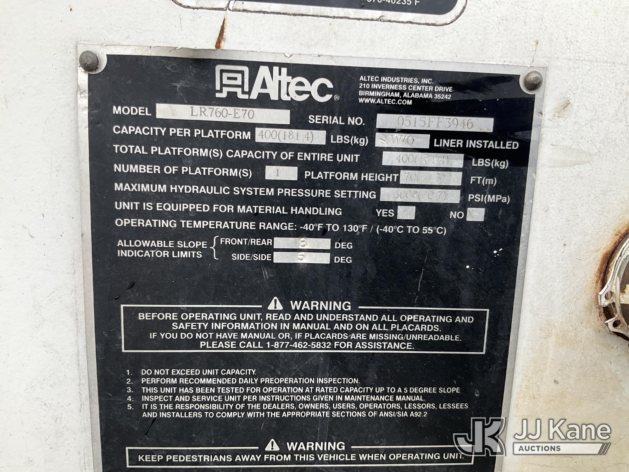 Altec LR760-E70, 75 ft, Over-Center Bucket Truck s/n 0515FF3946, with Single-Man Bucket, mounted behind cab on 2013 Ford F-750 Chipper Dump Truck, 6.7L L6 DIESEL 4X2, Auto, A/C, (80,964 miles) Severe engine knock An Altec inspection of the unit identified above has determined that the unit cannot be safely operated without completion of significant repairs. The unit has been removed from service until these repairs are accomplished. Serious injury or death can result for any attempt to operate the unit without the benefit of these repairs. Altec has recorded the out of service status of the unit. Until Altec has been notifiedu, in writing, that the required repairs have been performed, or Altec performs the repairs, further service work, technical support, and part sales by Altec may be limited on this unit. (Runs, Moves & Upper Operates) (Check Engine Light On, Body Damage, Seller States: Engine Knock The manufacturer has notified JJ Kane that this equipment is subject to an open recall. CSN 672 LRV/LR7 Leveling Yoke Inspection The equipment should not be operated until this is addressed. Buyer is responsible for reviewing the recall notice and contacting the manufacturer to schedule the recommended corrective actions. Associated costs may be covered by the manufacturer in some cases.) (Reads 3,854 hours) This is a Titled Item*