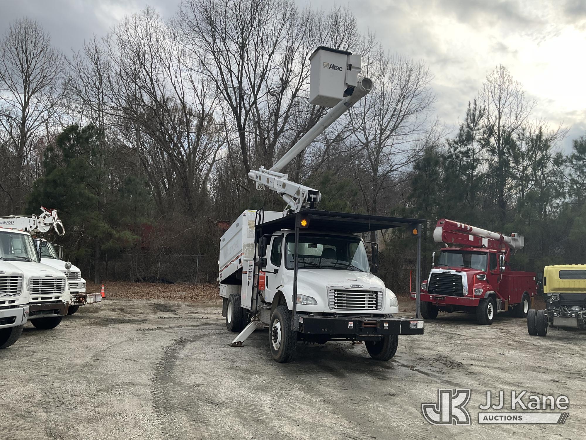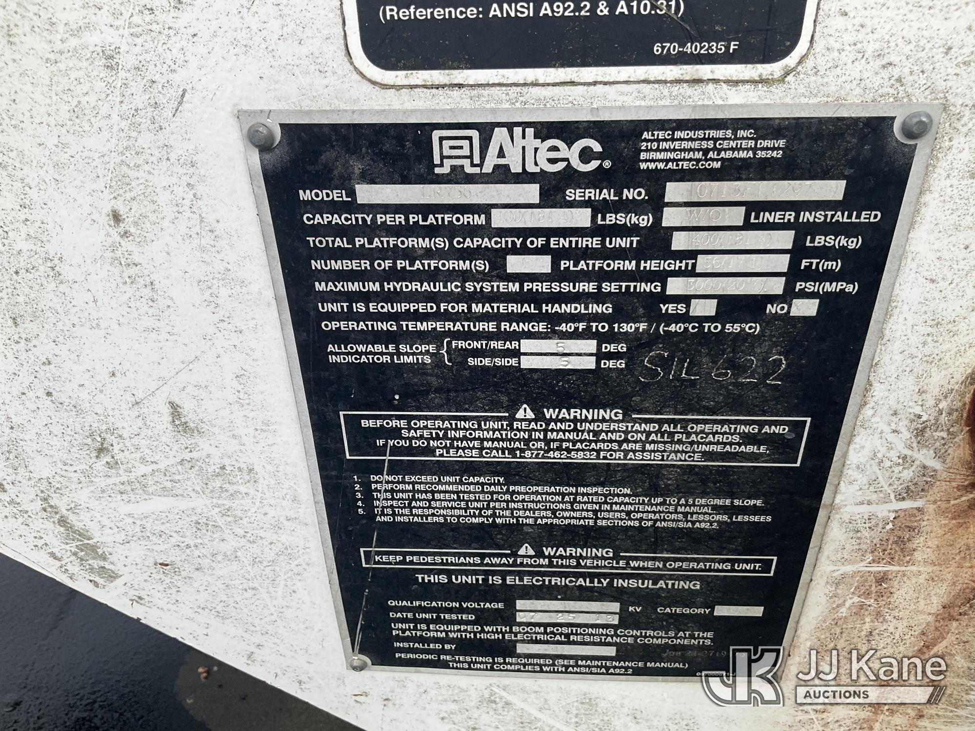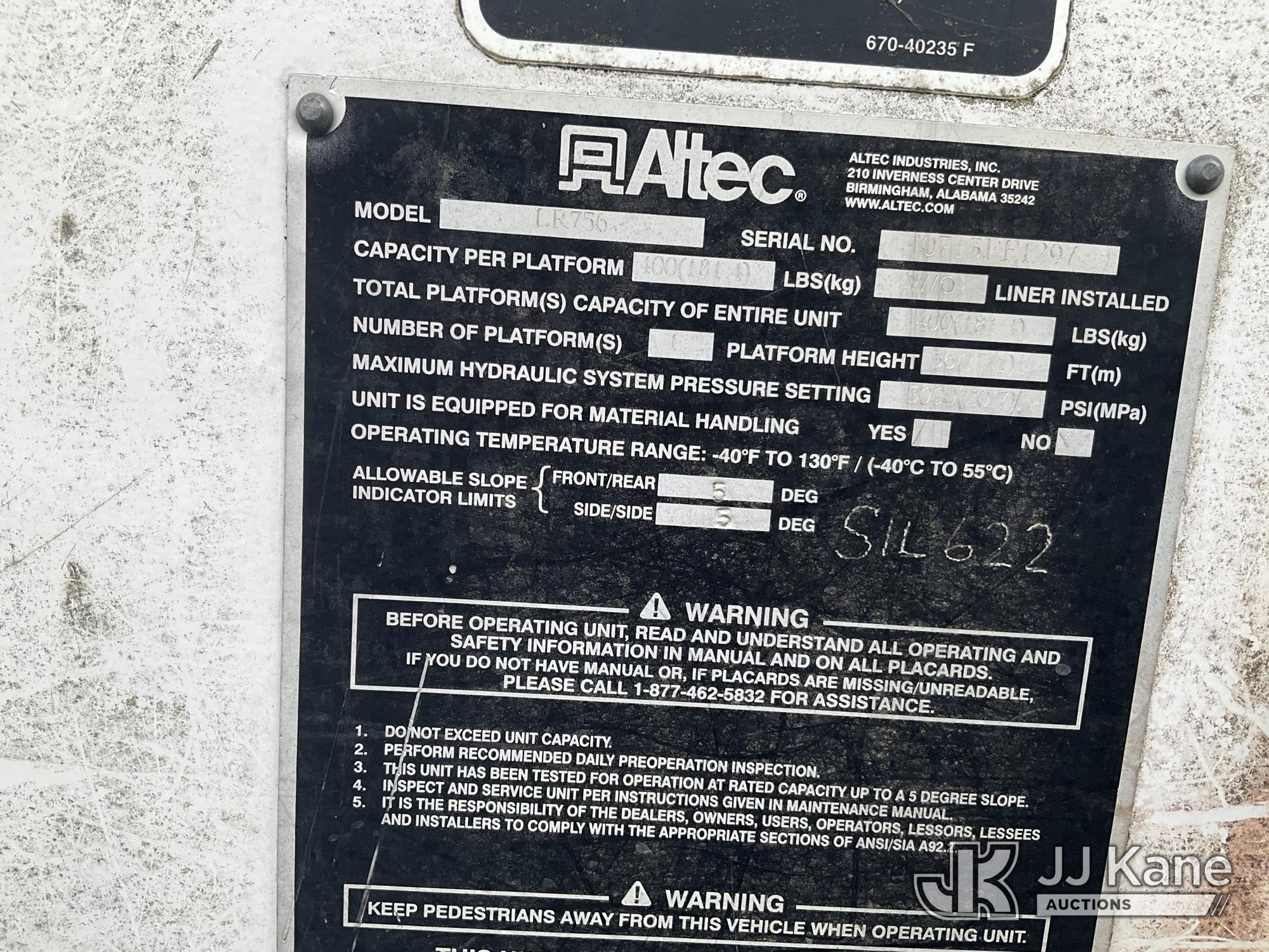 Altec LR756, 61 ft, Over-Center Bucket Truck s/n 0713FF1297, with single-man bucket & 2 hyd outriggers, mounted behind cab on 2014 Freightliner M2 106 4x4 Chipper Dump Truck, 6.7L L6 Diesel, 6-spd, (96,153 miles) (Runs, Moves & Upper Operates) (Seller States: In Limp Mode) This is a Titled Item*