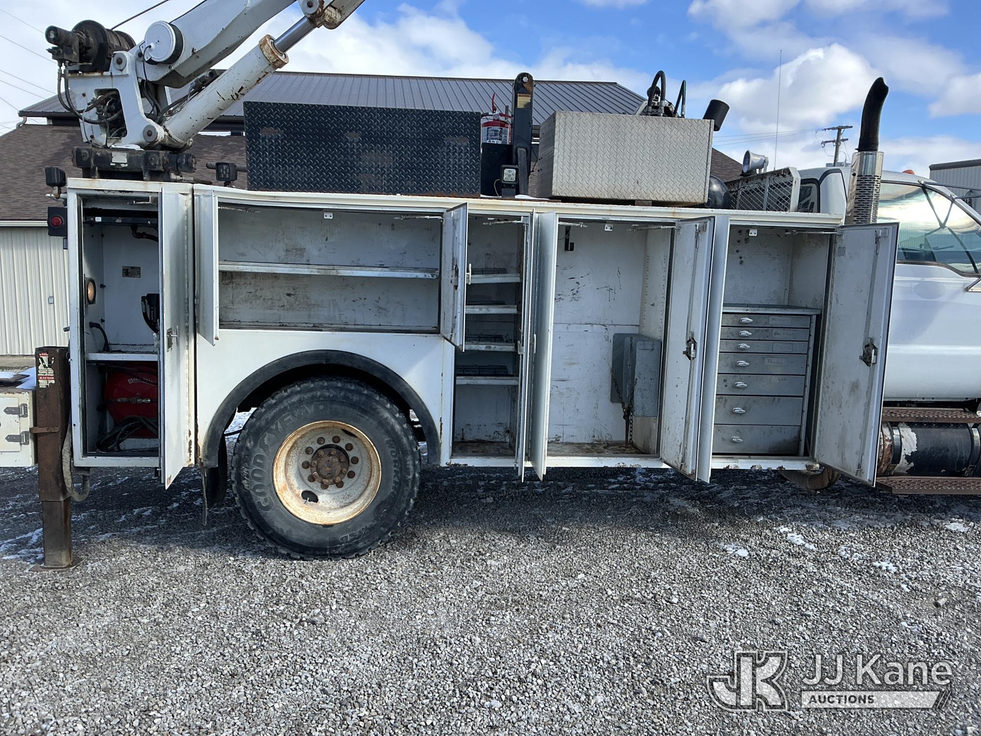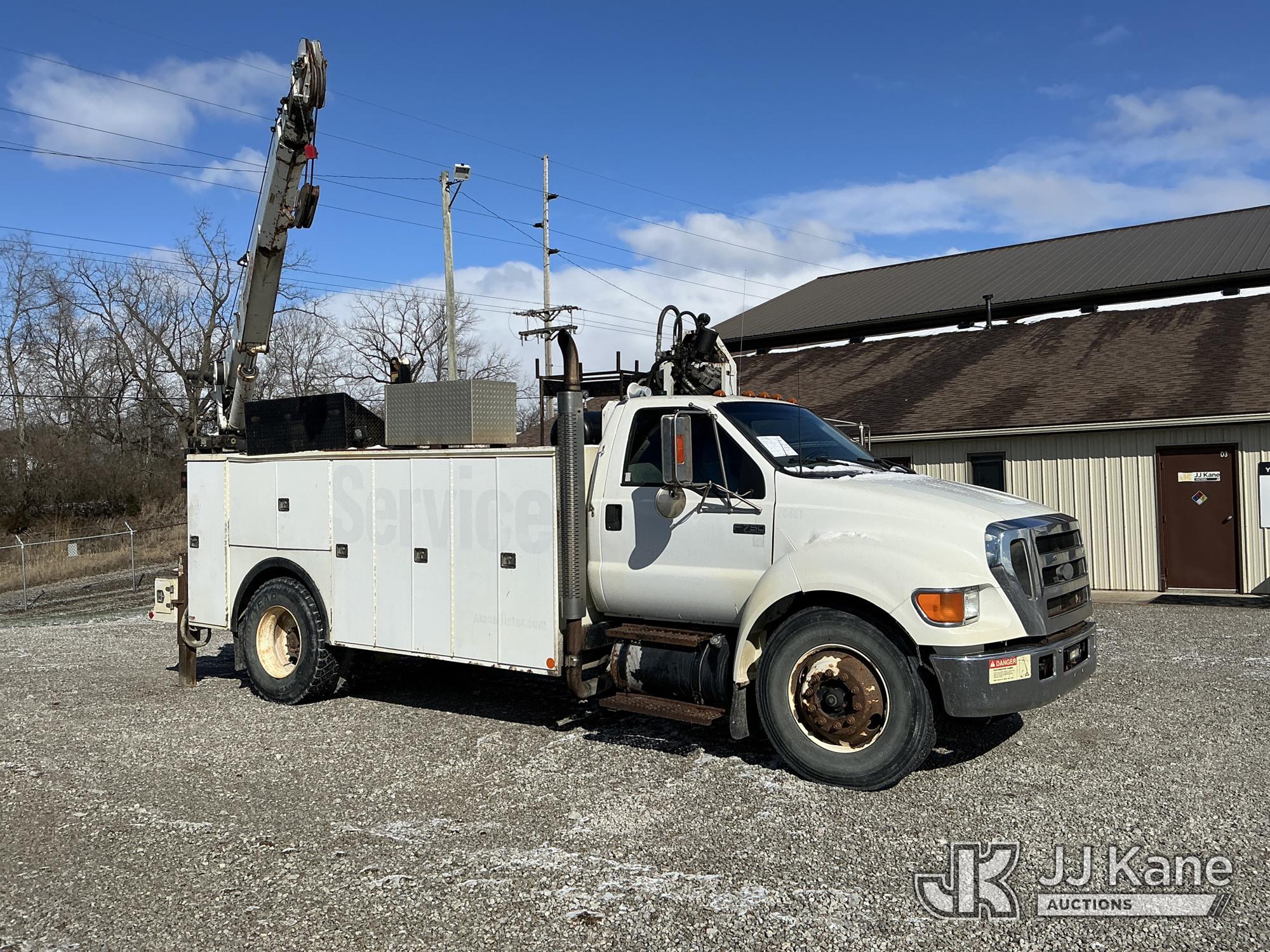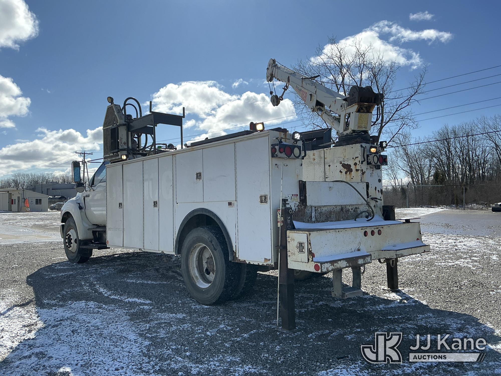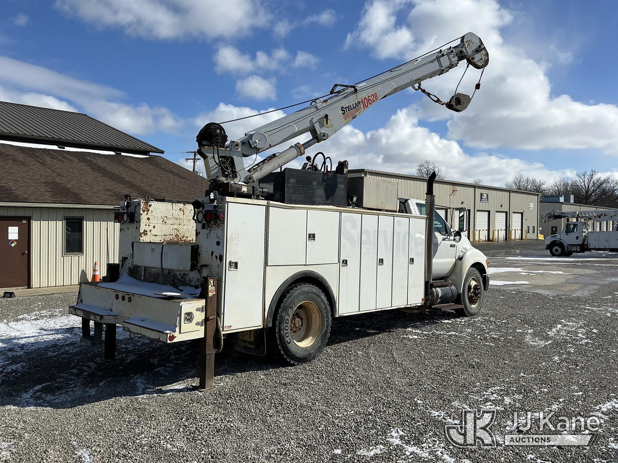2004 Ford F-750 Regular Cab 2WD DRW Mechanics Service Truck, 7.2L L6 DIESEL 7-spd, A/C, with Stellar 10,000 cap. crane & air compressor, (Exempt from Odometer Disclosure - Reads 269,088 miles) (Runs, Moves & Upper Operates) (Compressor Leaking Oil, Rust/Paint Damage) This is a Titled Item*