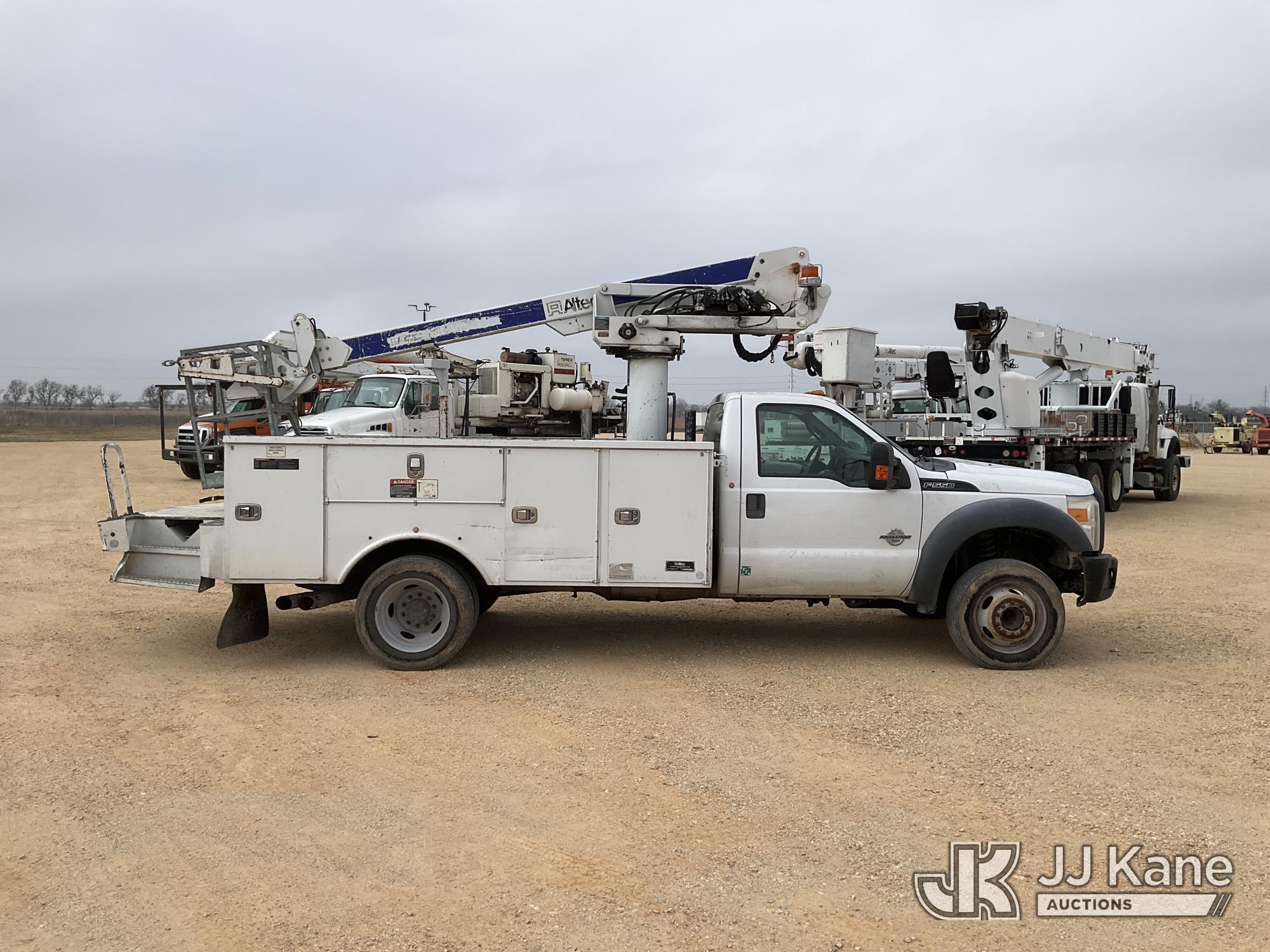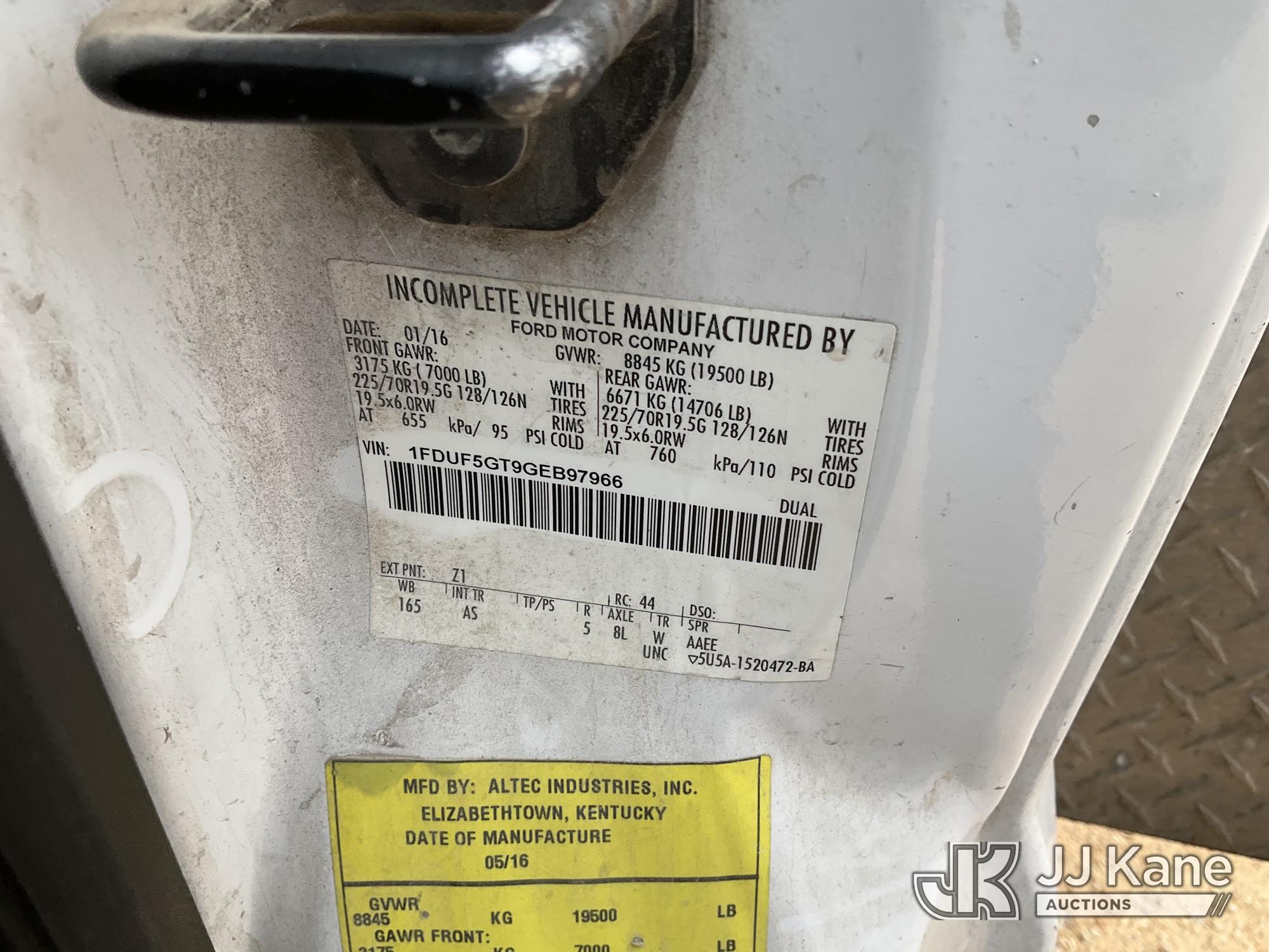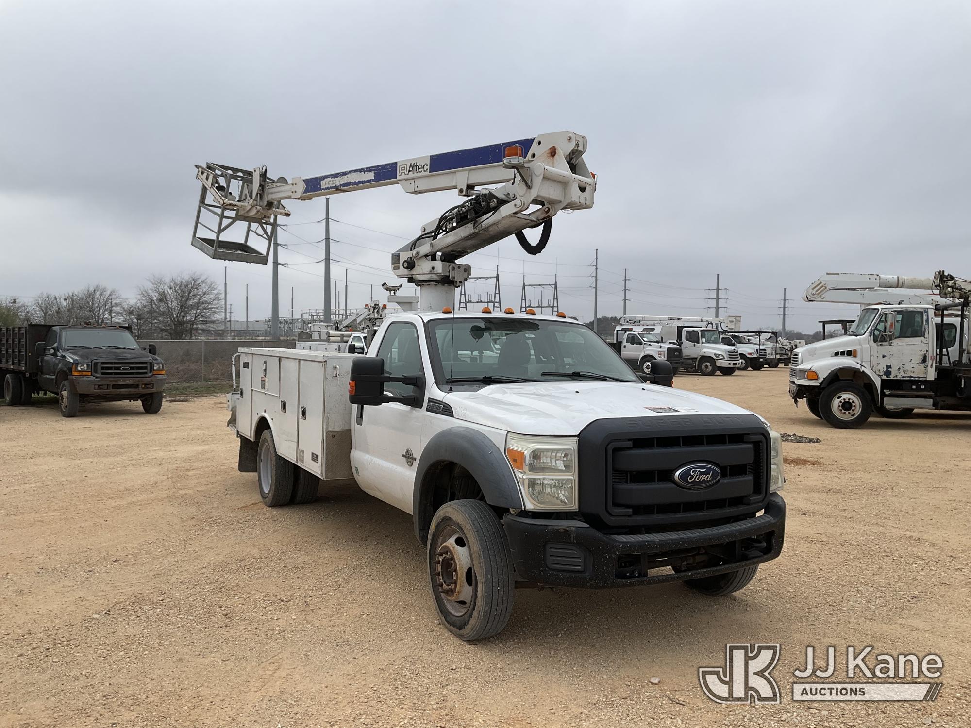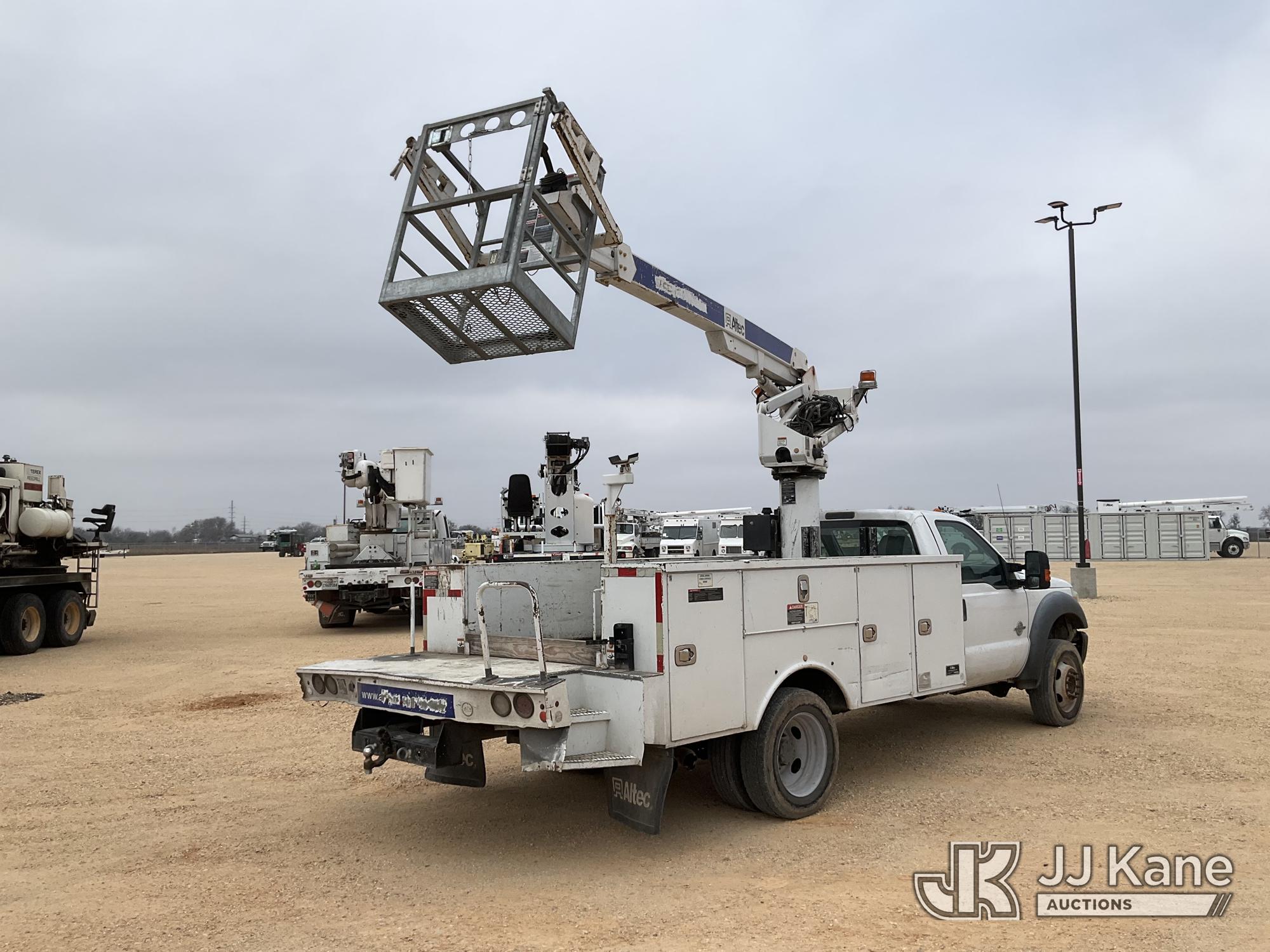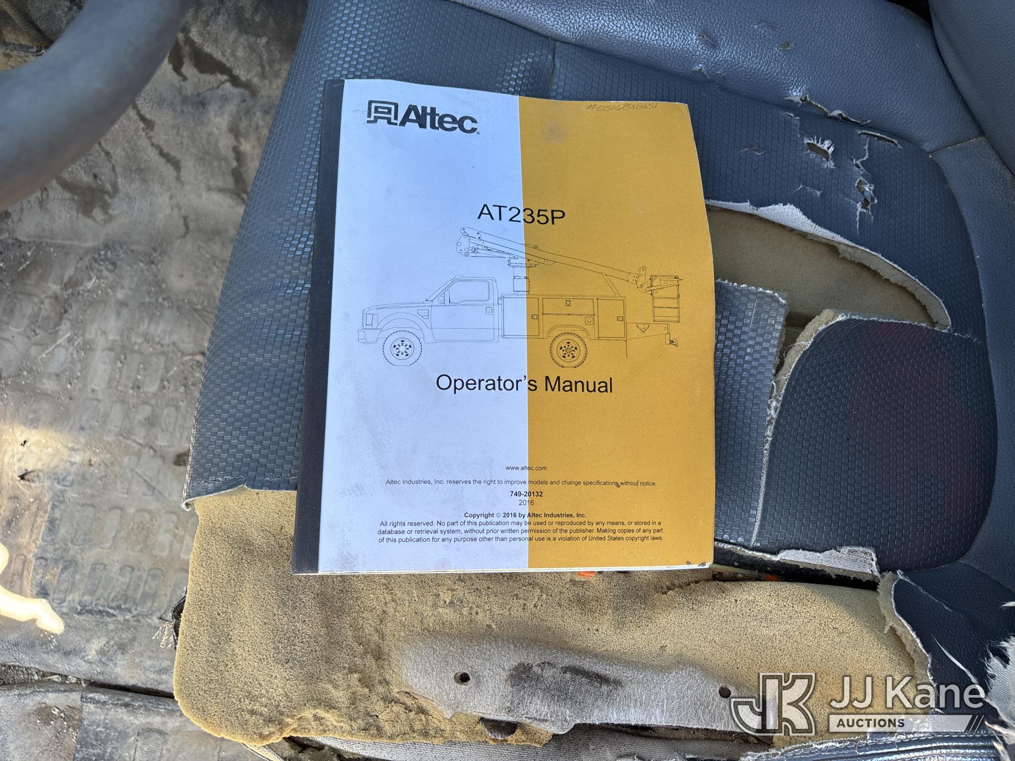 Altec AT235P, 40 ft, Articulating & Telescopic Bucket s/n 0516BX8651, with single-man basket, mounted behind cab on 2016 Ford F-550 Regular Cab DRW 2WD 6.7L V8 OHV 16V DIESEL RWD, Auto, A/C, with Truck Bed Storage , (223,401 miles) (Runs, Moves & Upper Operates) (Engine Noise, Jump to Start), (Body Damage) This is a Titled Item*