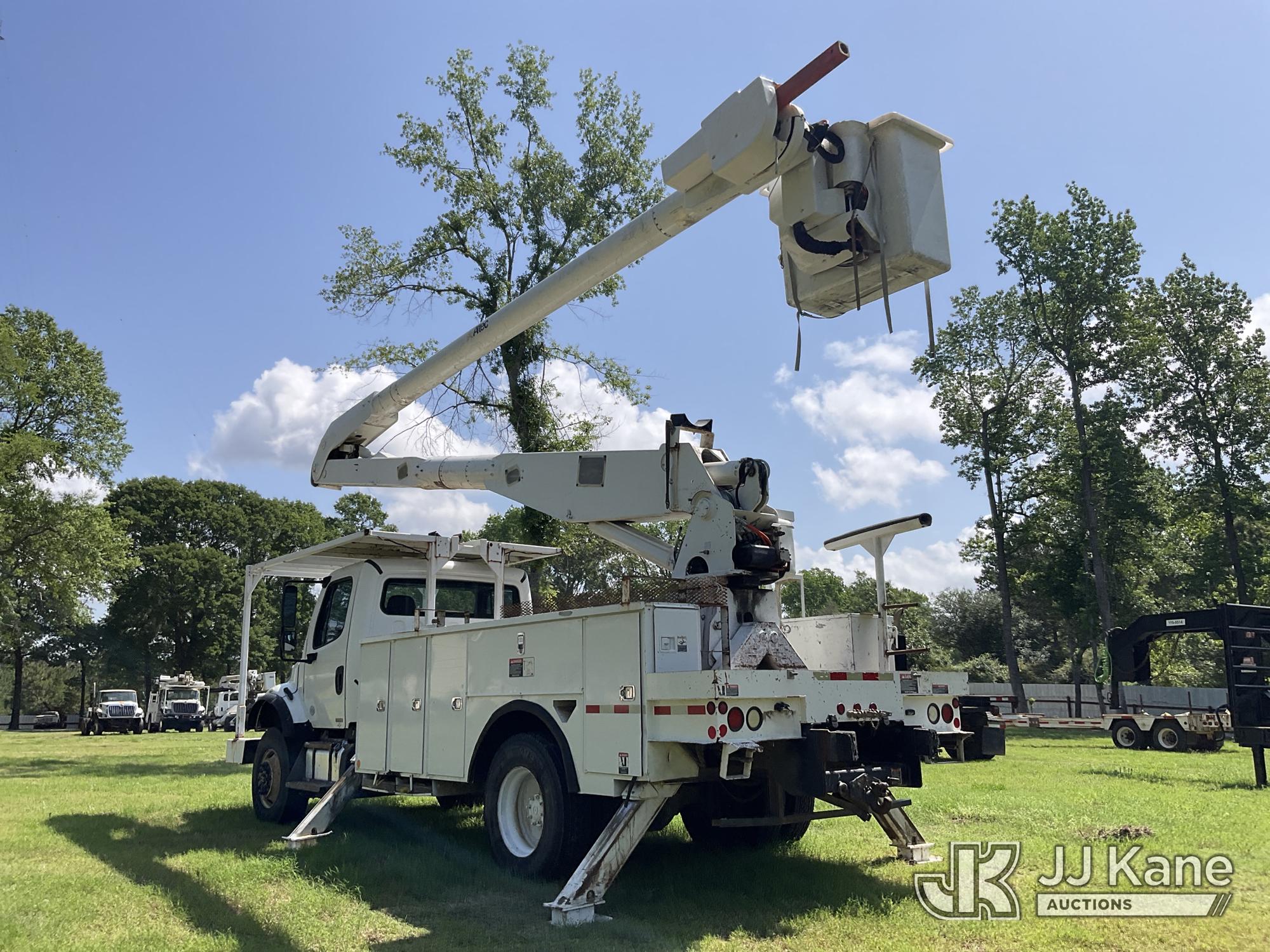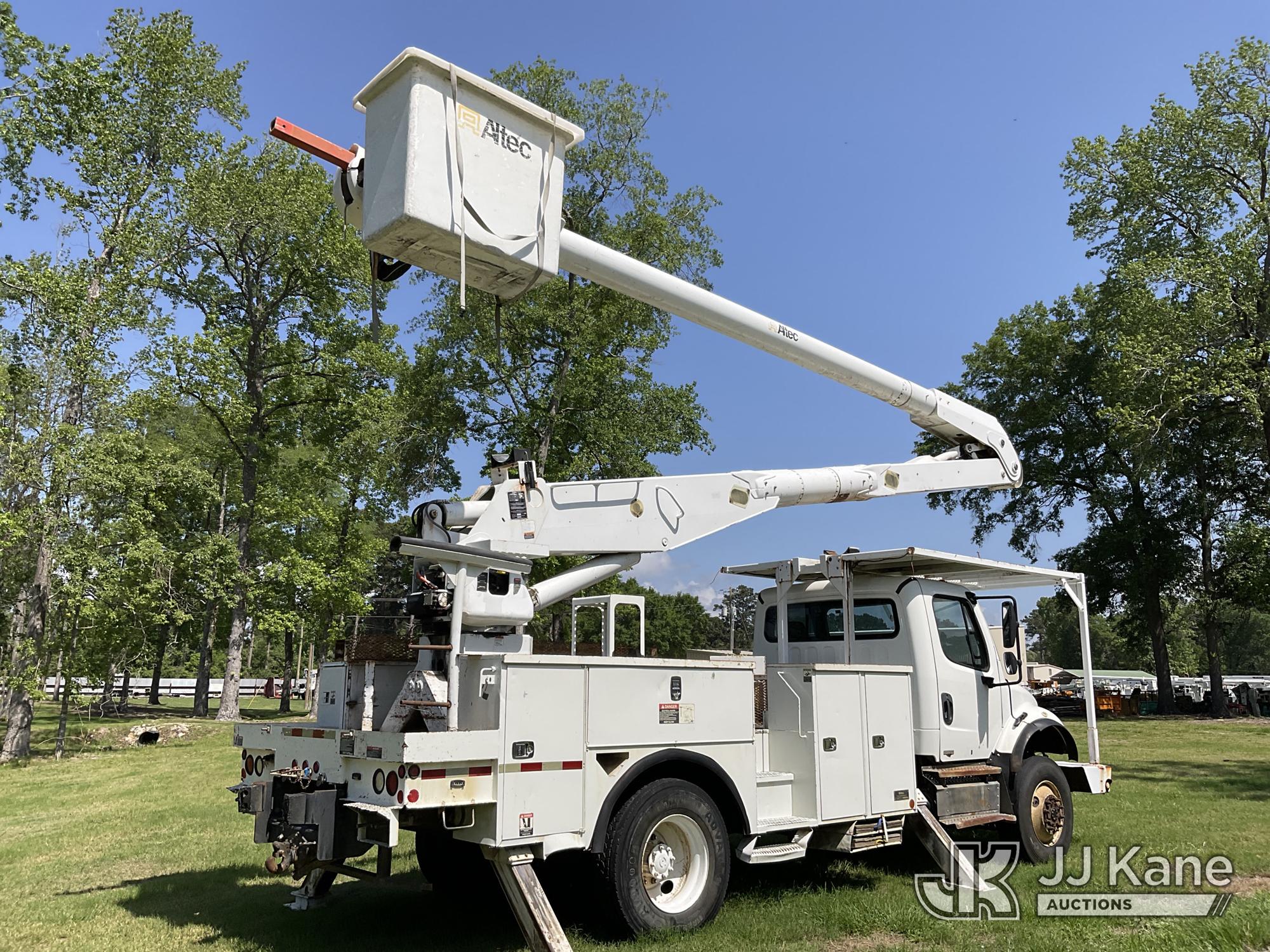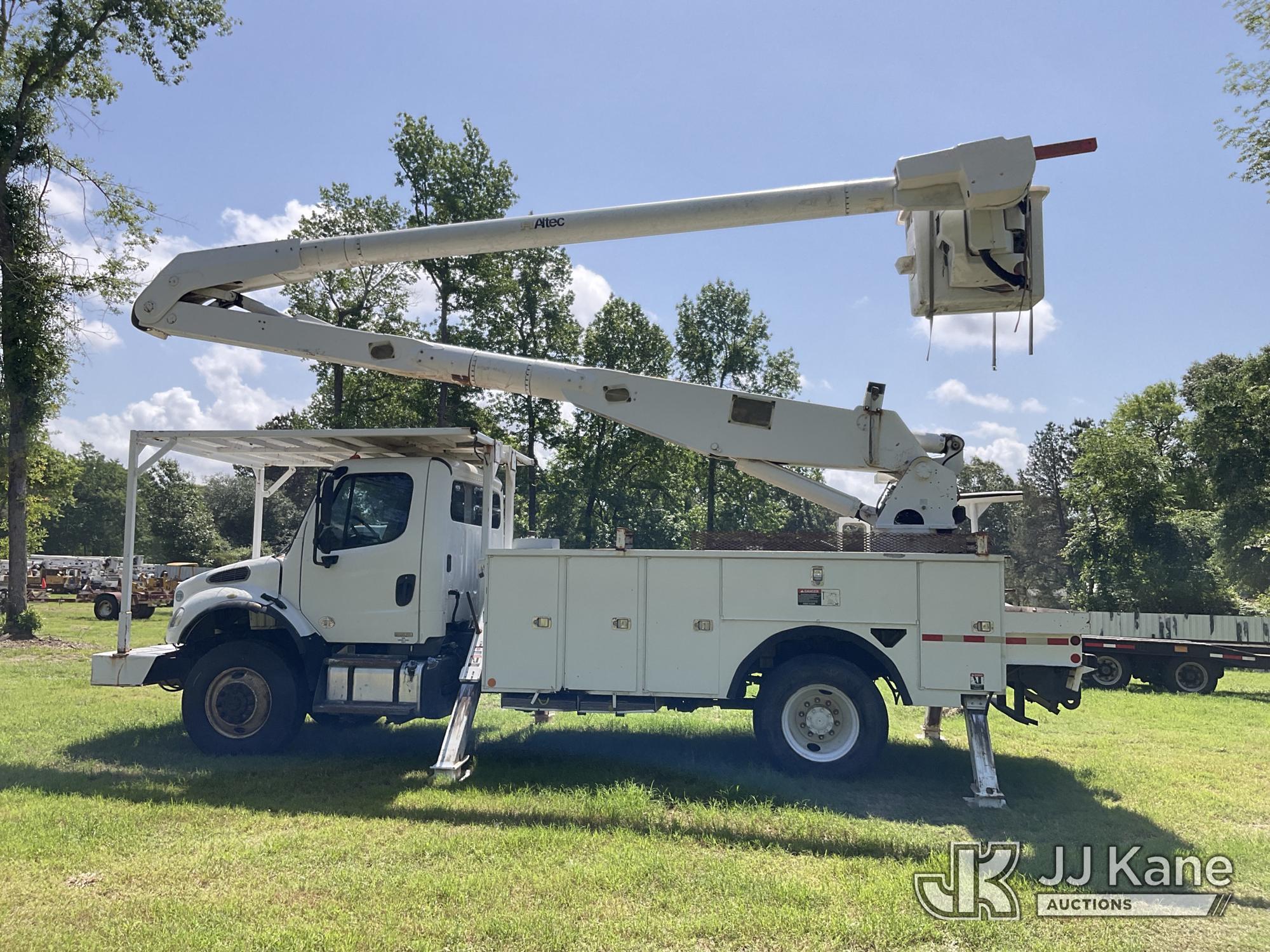 Altec AA755, 60 ft, Material Handling Bucket Truck s/n 0511BZ6445, with 4 hyd. outriggers, two-man bucket, materials handler, rear mounted on 2012 Freightliner M2 106 Utility Truck, 6.7L L6 DIESEL 4X4, Auto, A/C, with Front Bumper Winch, (146,286 miles) (Runs, Moves & Upper Operates) (ABS Light On, Rear Wheel Seals Need Replacing, Drive-Away Is Not Recommended) This is a Titled Item*