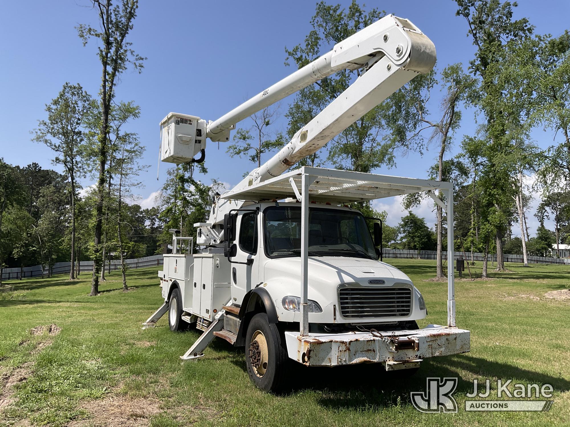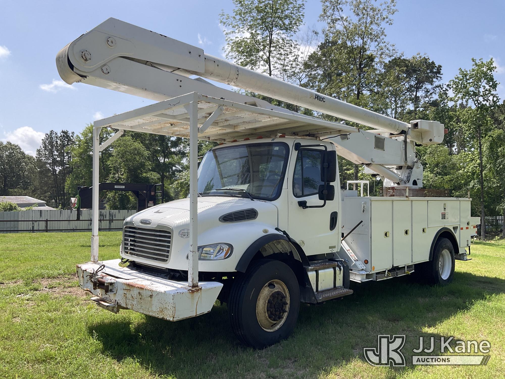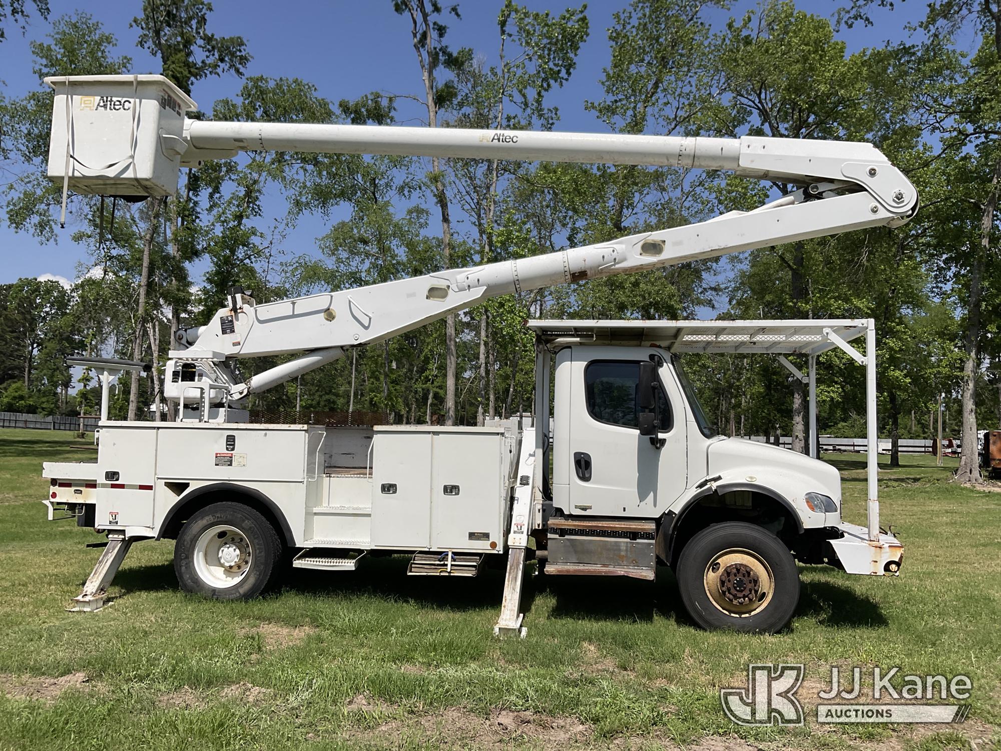 Altec AA755, 60 ft, Material Handling Bucket Truck s/n 0511BZ6445, with 4 hyd. outriggers, two-man bucket, materials handler, rear mounted on 2012 Freightliner M2 106 Utility Truck, 6.7L L6 DIESEL 4X4, Auto, A/C, with Front Bumper Winch, (146,286 miles) (Runs, Moves & Upper Operates) (ABS Light On, Rear Wheel Seals Need Replacing, Drive-Away Is Not Recommended) This is a Titled Item*