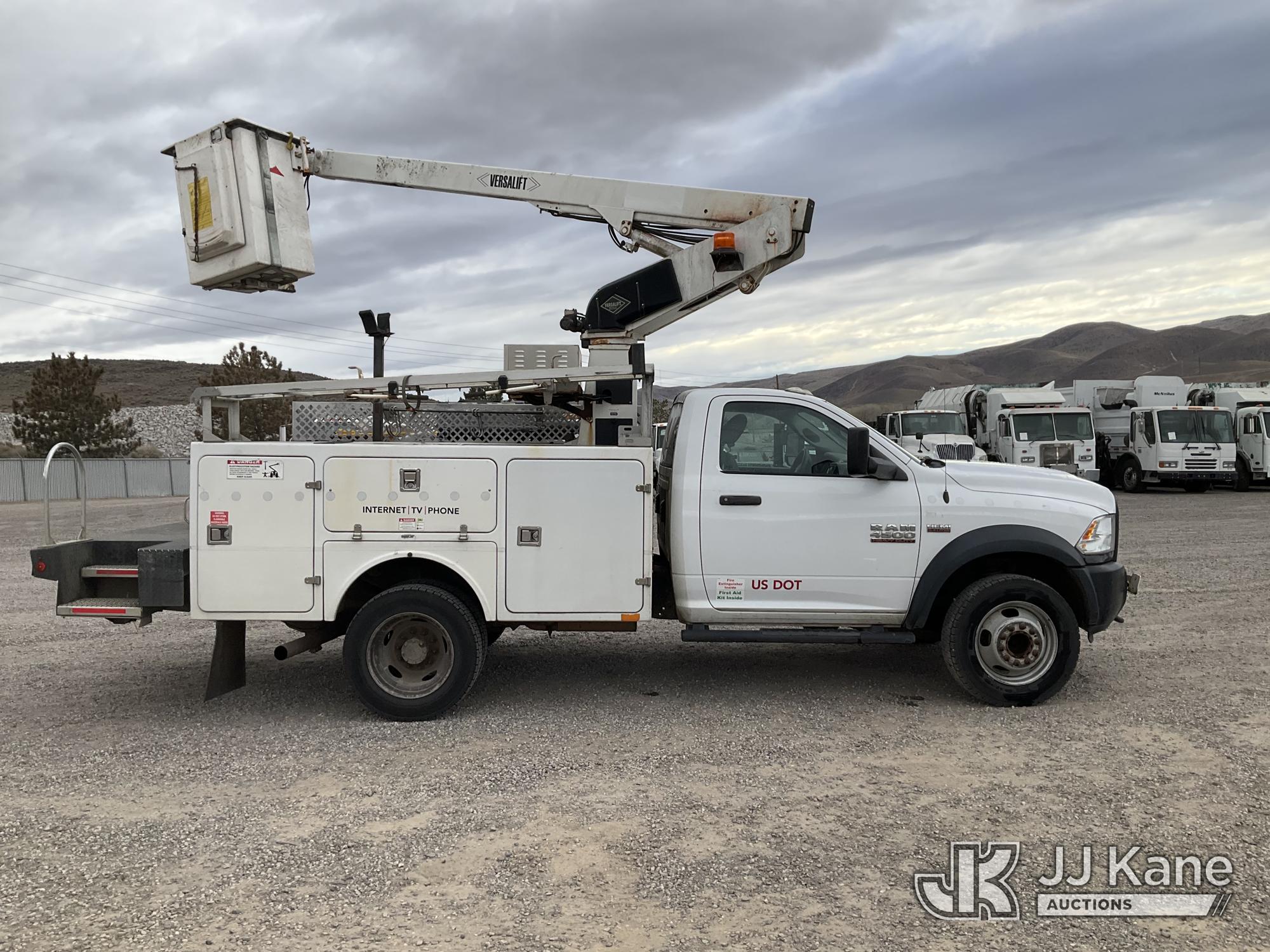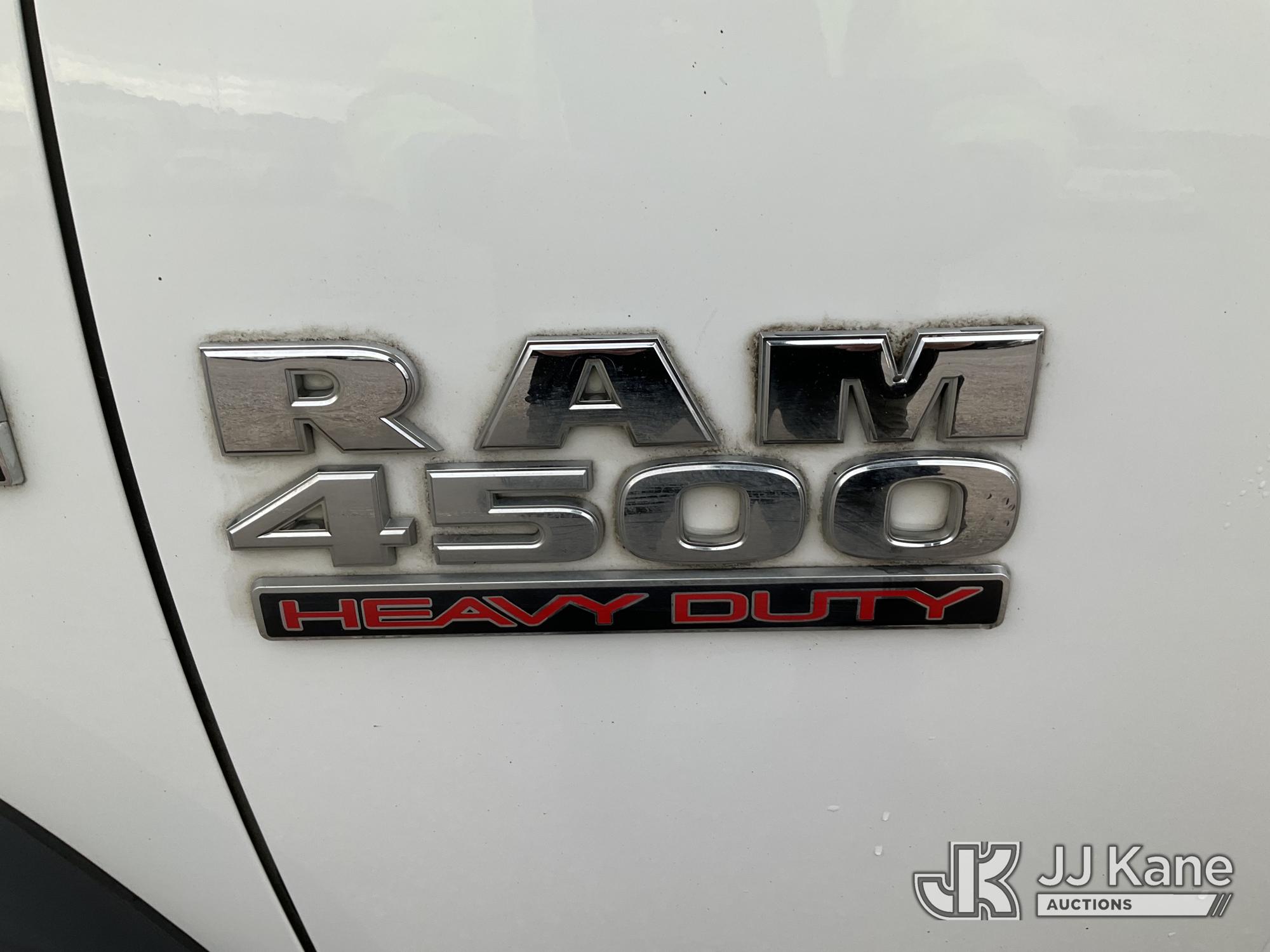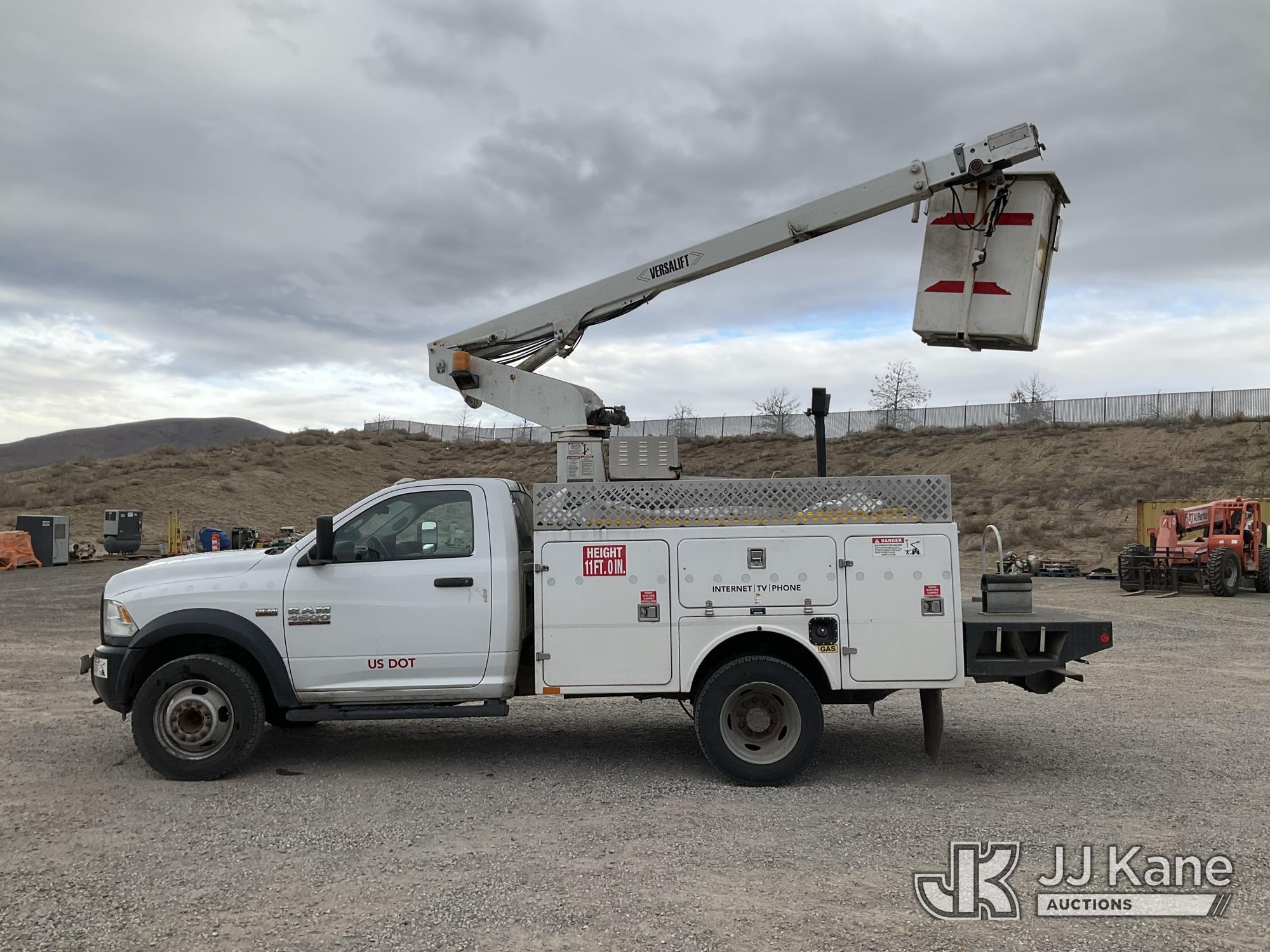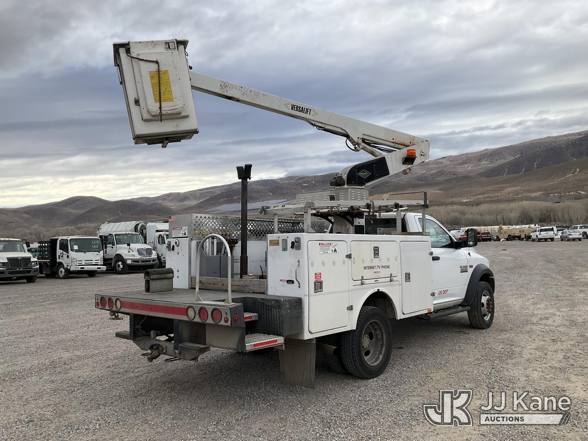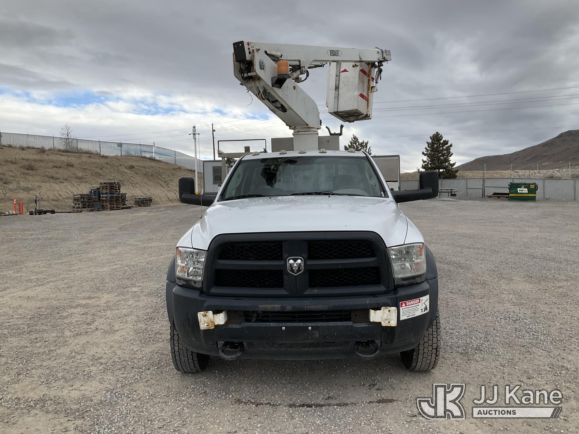 Versalift TEL29N/NE, 34 ft, Telescopic Non-Insulated Bucket Truck s/n AG140702, with single man bucket, mounted behind cab on 2014 RAM 4500 Service Truck, 8-cyl gas, 4wd, auto, A/C, (109,930 miles) (Runs, Moves & Upper Operates) (Upper Serial Placard Missing, Traction Control Light On) (Seller States: No Battery, Discharged Engine Ticks,) This is a Titled Item*
