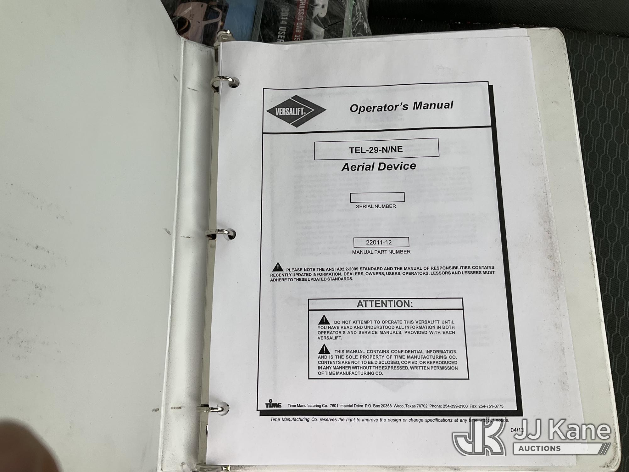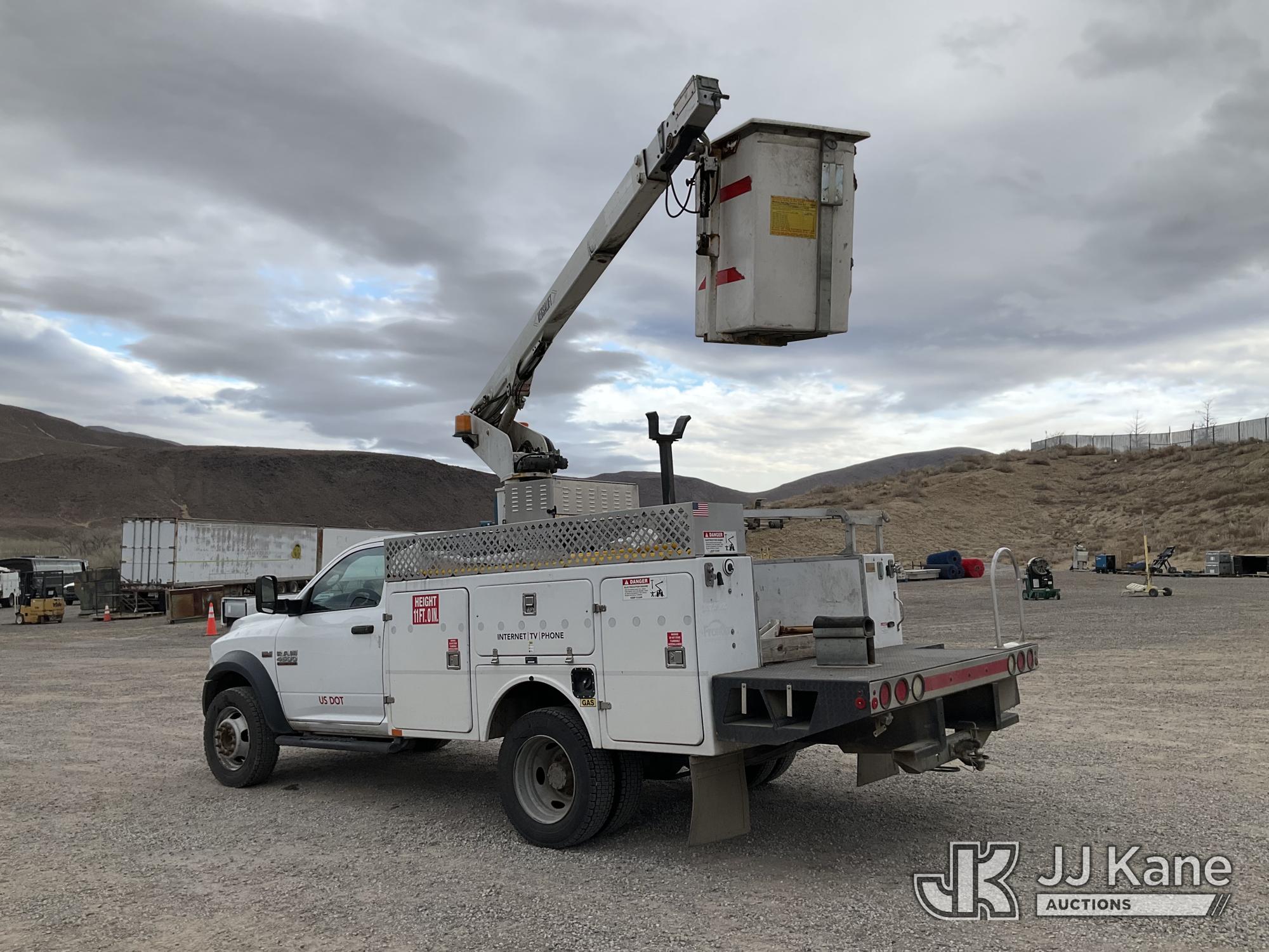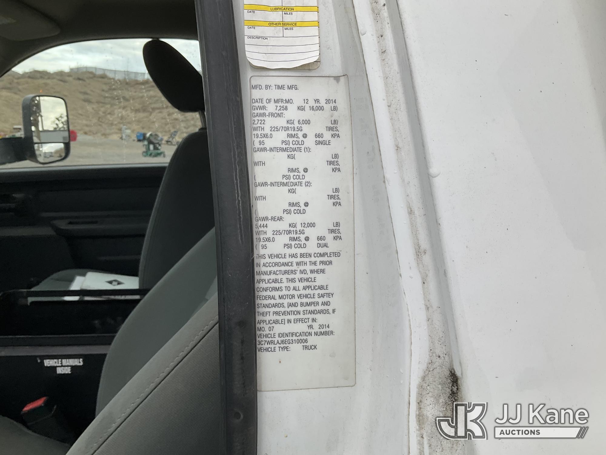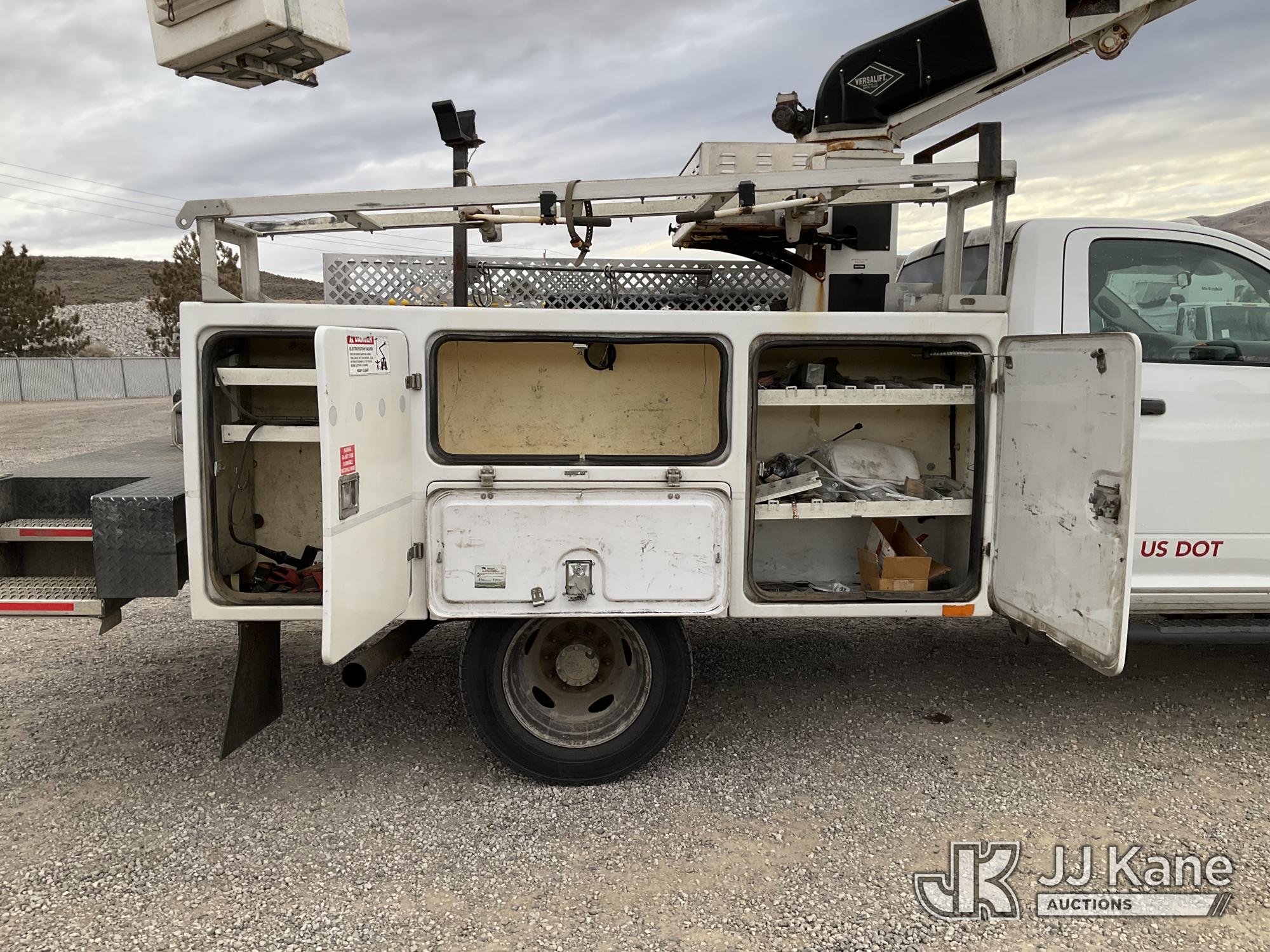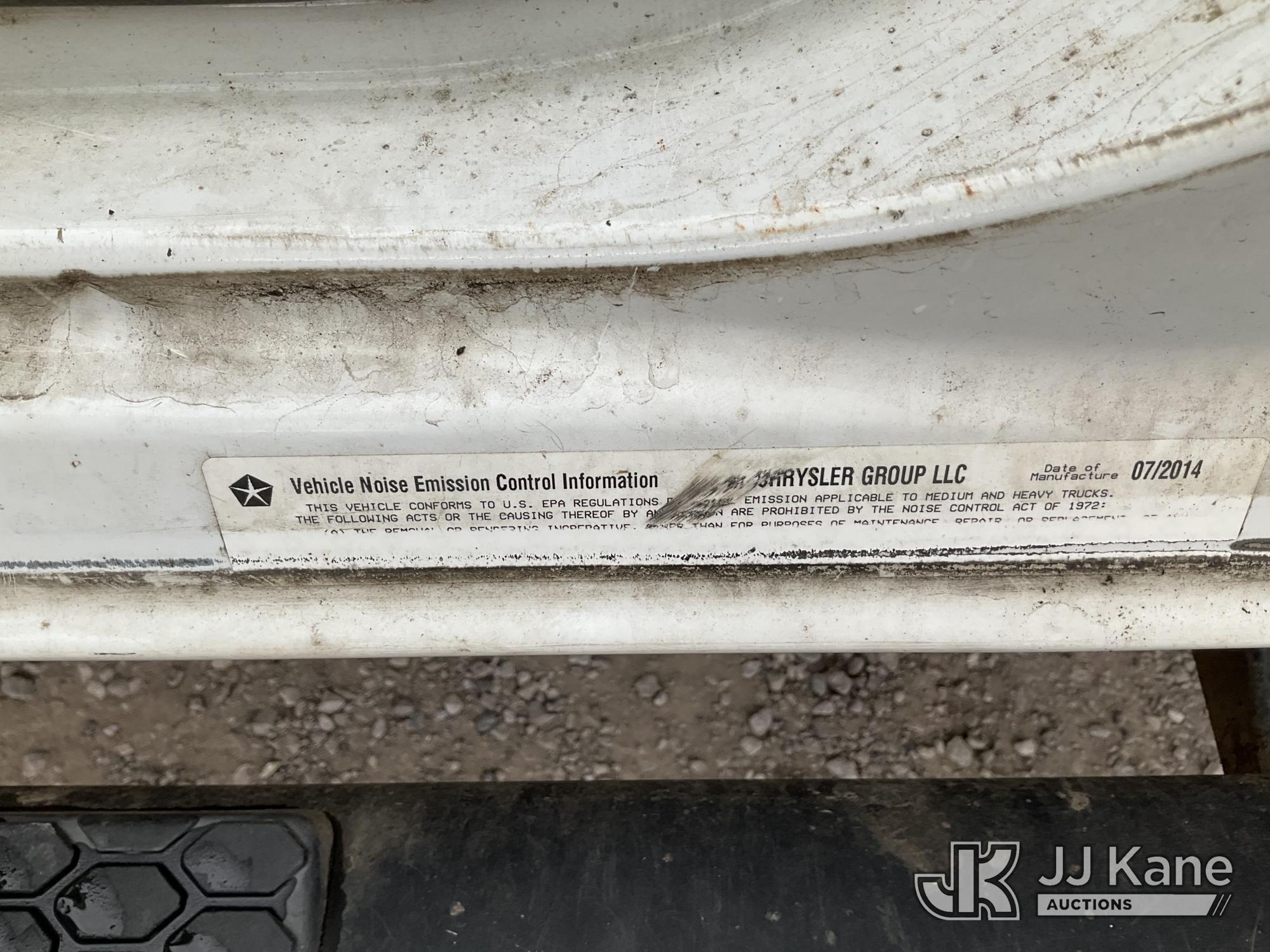 Versalift TEL29N/NE, 34 ft, Telescopic Non-Insulated Bucket Truck s/n AG140702, with single man bucket, mounted behind cab on 2014 RAM 4500 Service Truck, 8-cyl gas, 4wd, auto, A/C, (109,930 miles) (Runs, Moves & Upper Operates) (Upper Serial Placard Missing, Traction Control Light On) (Seller States: No Battery, Discharged Engine Ticks,) This is a Titled Item*