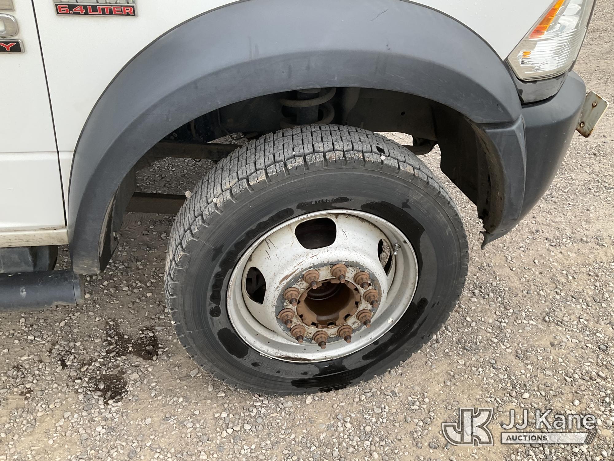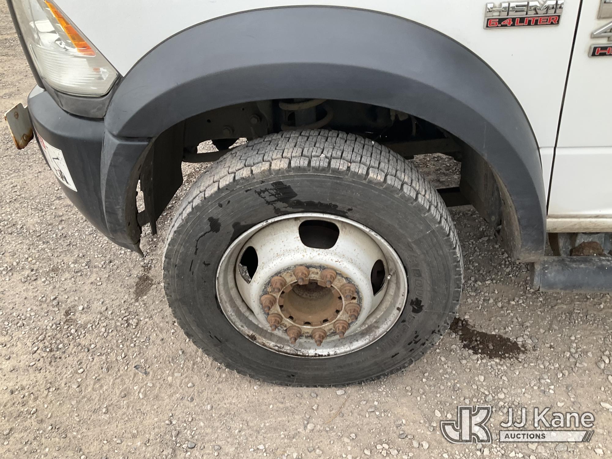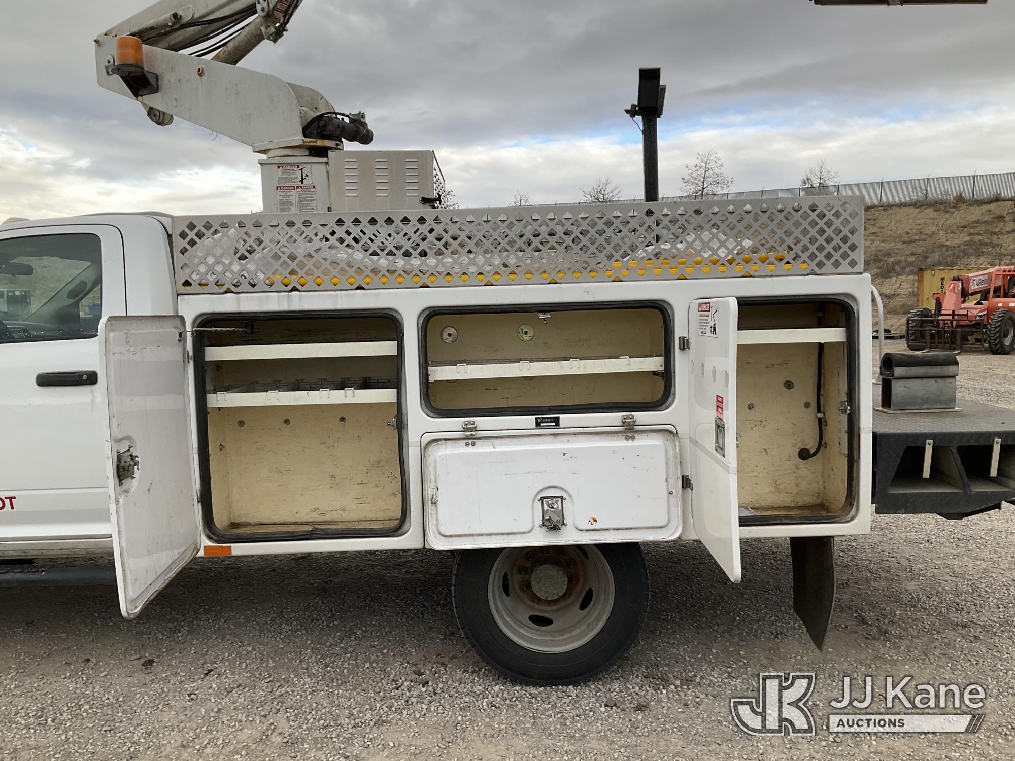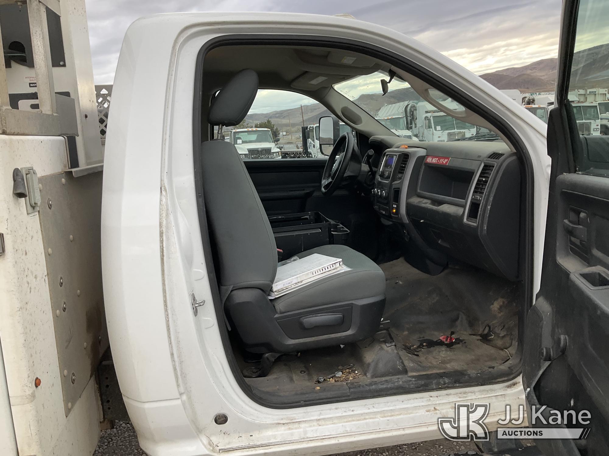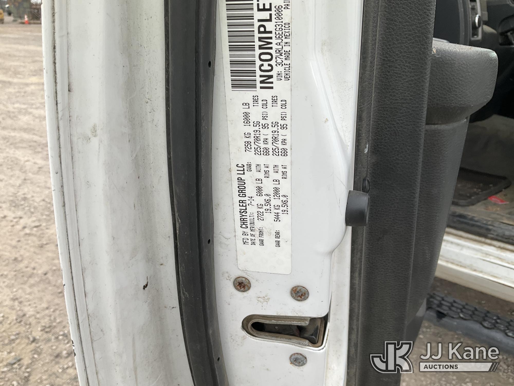 Versalift TEL29N/NE, 34 ft, Telescopic Non-Insulated Bucket Truck s/n AG140702, with single man bucket, mounted behind cab on 2014 RAM 4500 Service Truck, 8-cyl gas, 4wd, auto, A/C, (109,930 miles) (Runs, Moves & Upper Operates) (Upper Serial Placard Missing, Traction Control Light On) (Seller States: No Battery, Discharged Engine Ticks,) This is a Titled Item*
