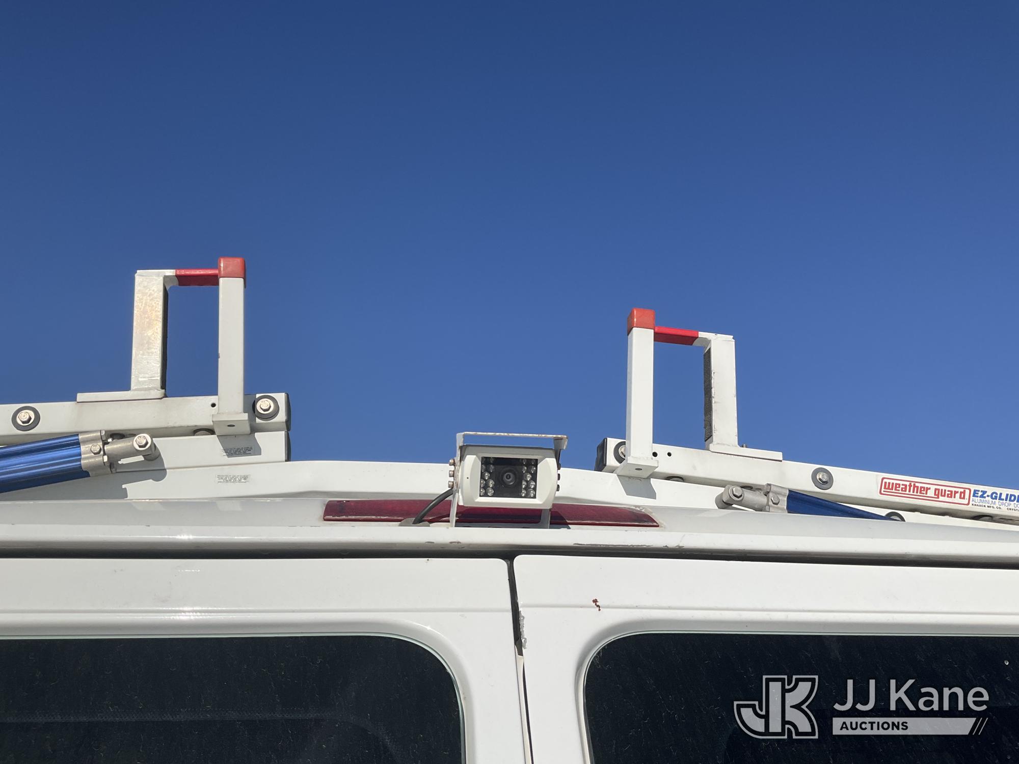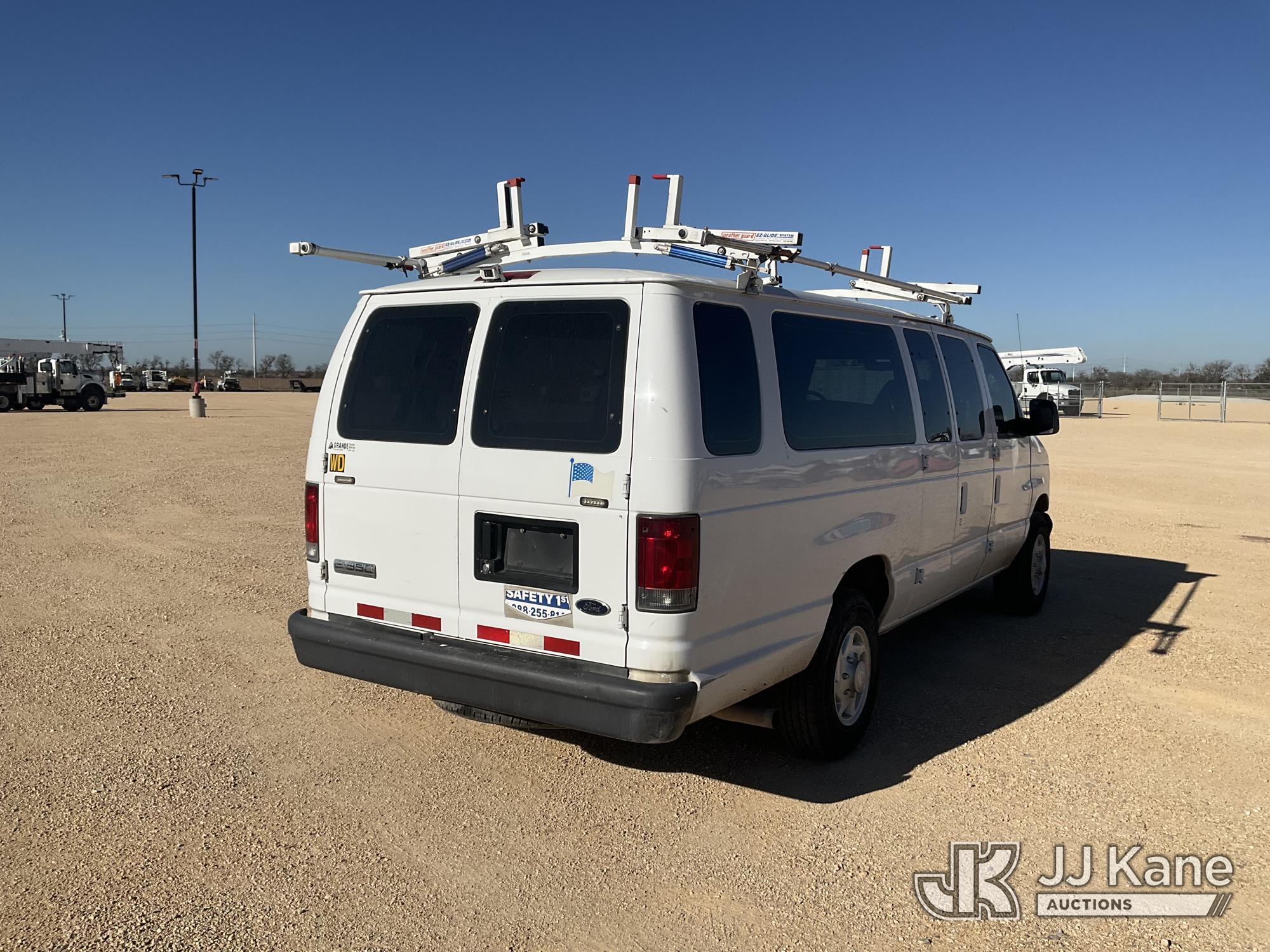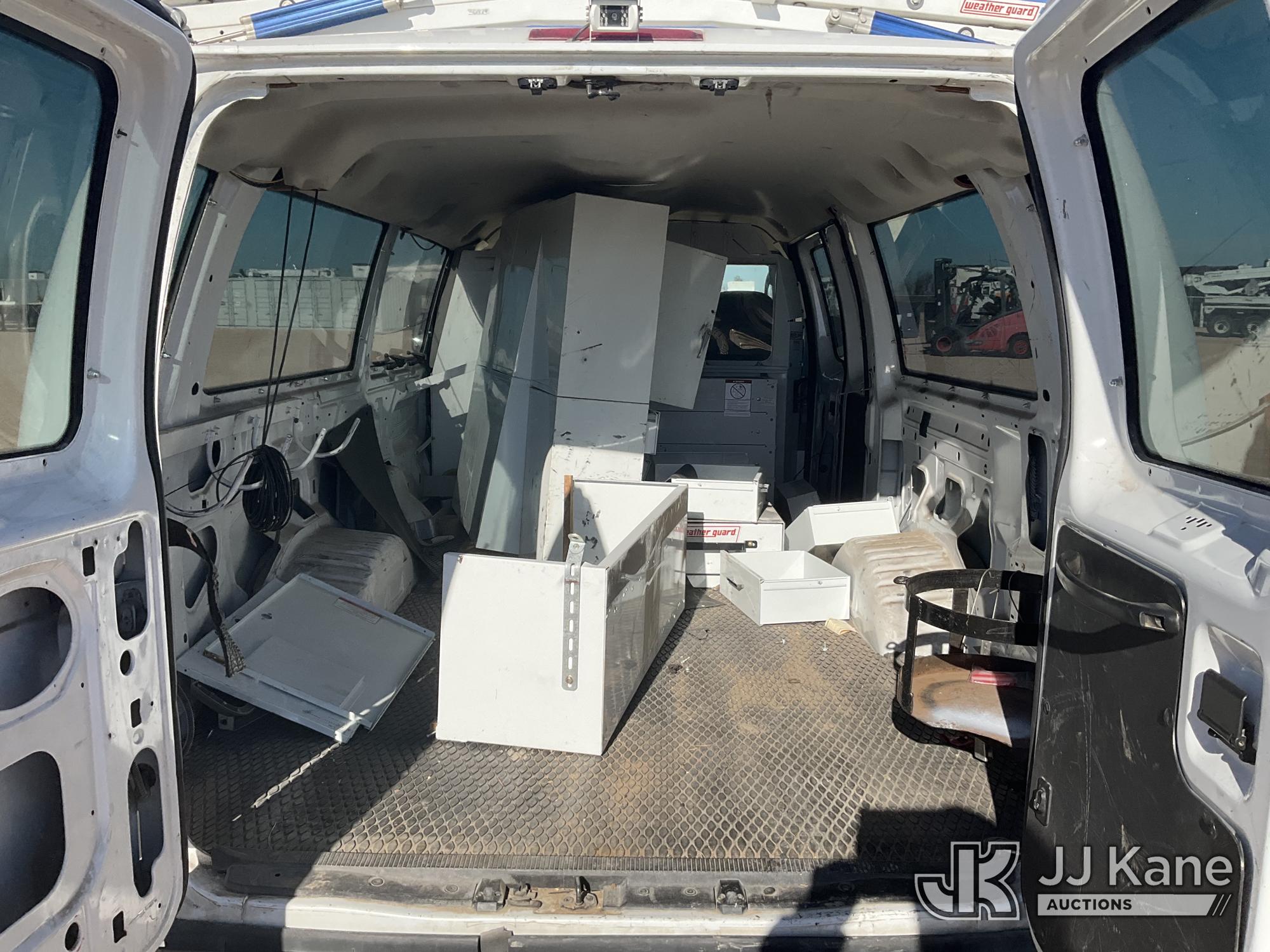 2007 Ford Econoline E350 Extended Cargo Van, 8-cyl gas, Auto, A/C, with ladder rack, (81,888 miles) (Runs & Moves)(Check Engine Light On, Air Bag Light On, Cracked Windshield, Back Passenger Door Does Not Open) This is a Titled Item*