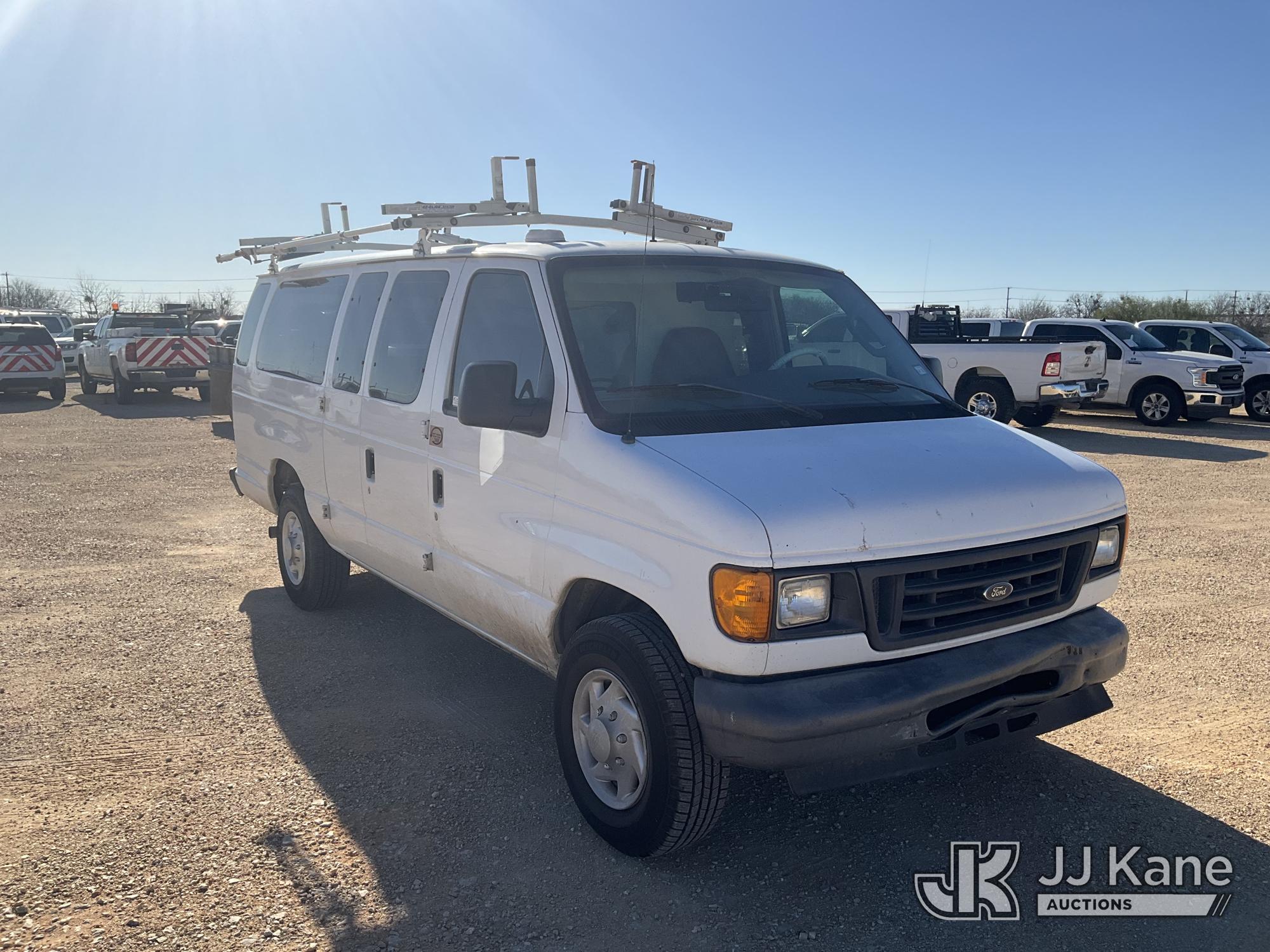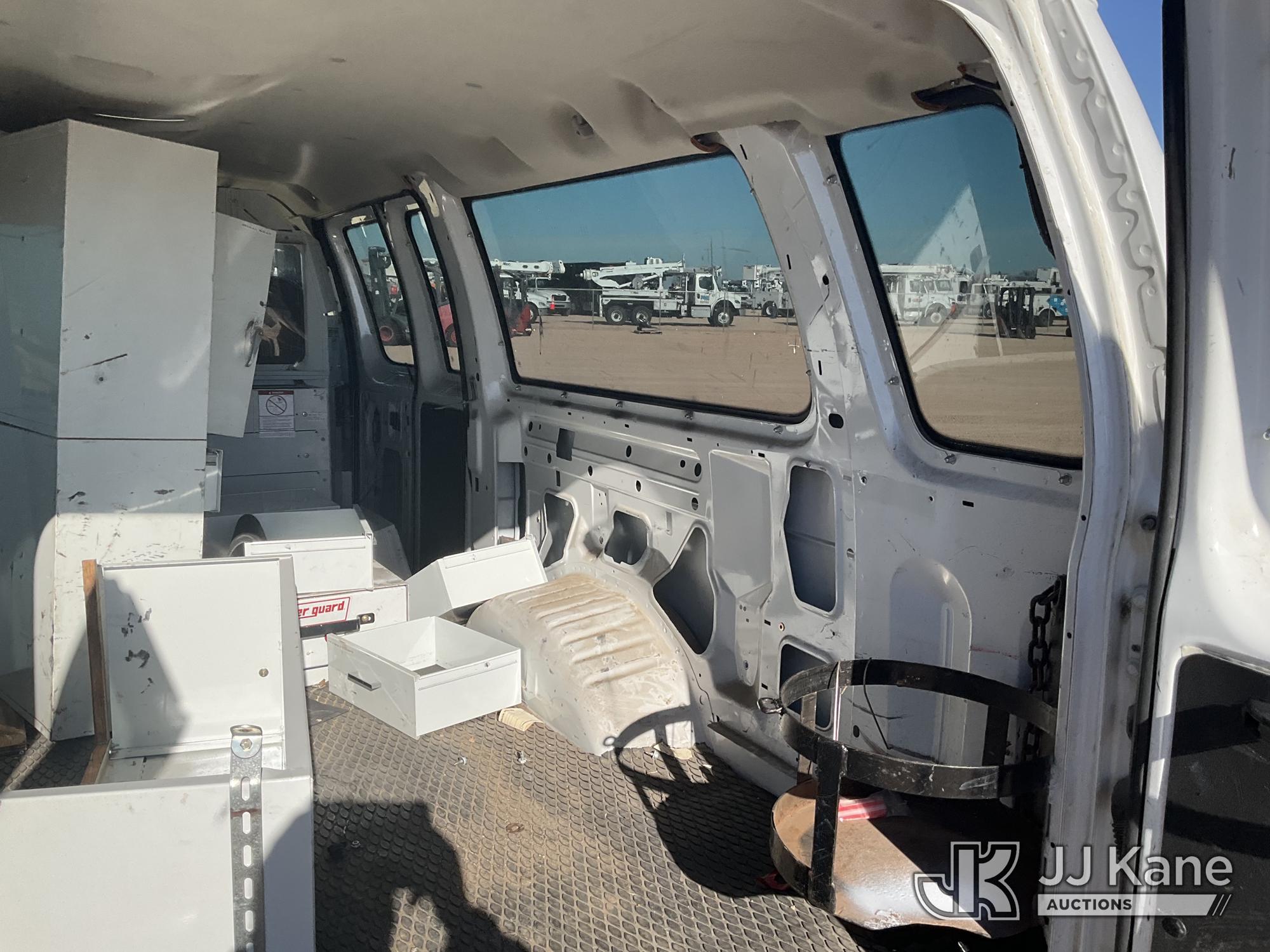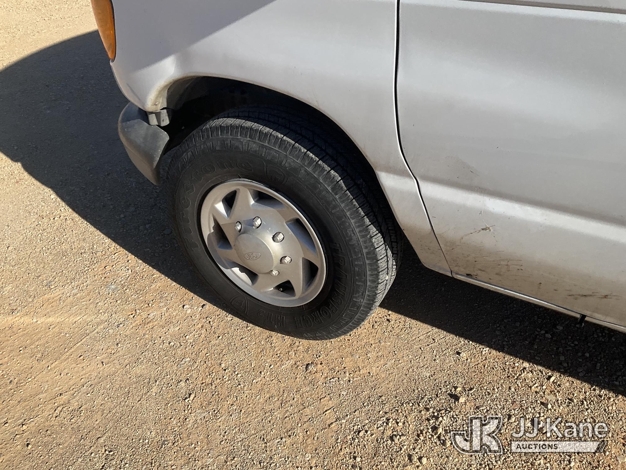 2007 Ford Econoline E350 Extended Cargo Van, 8-cyl gas, Auto, A/C, with ladder rack, (81,888 miles) (Runs & Moves)(Check Engine Light On, Air Bag Light On, Cracked Windshield, Back Passenger Door Does Not Open) This is a Titled Item*