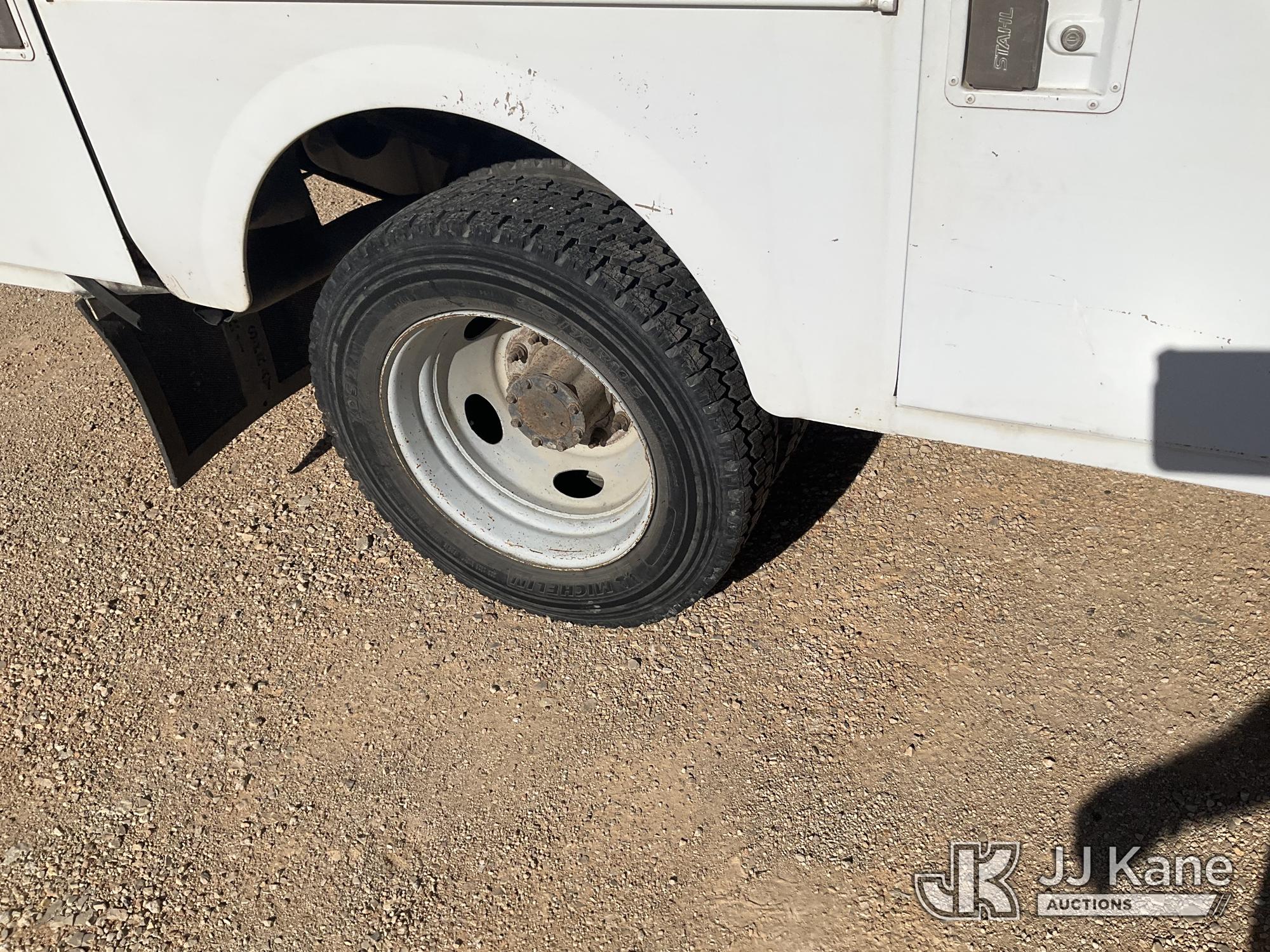 2007 Ford F-550 Crew-Cab Service Truck, 6.0L diesel, 4wd, Auto, with ladder rack, (163,063 miles) (Not Running, Condition Unknown Has Power With Jump Pack, Check Engine Light On, Battery Light On) This is a Titled Item*