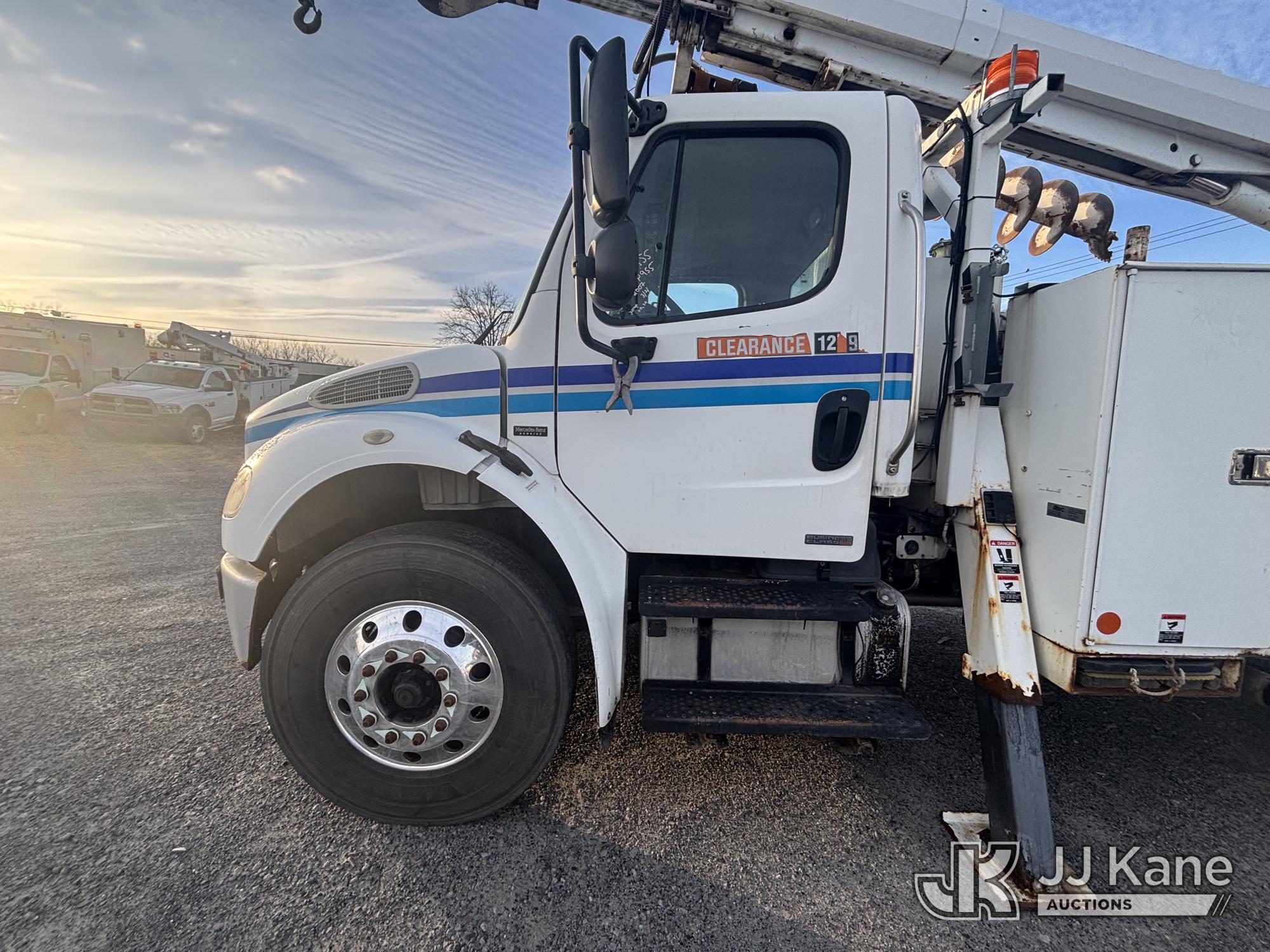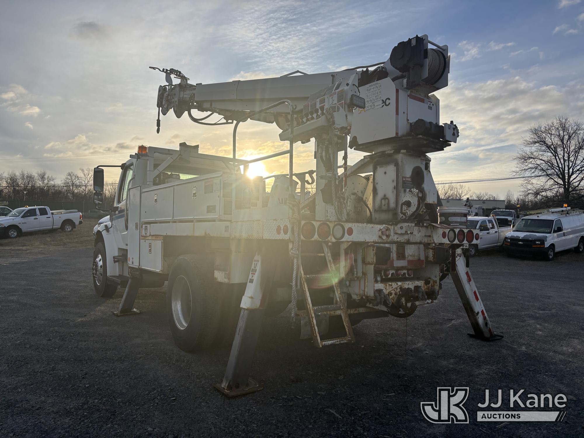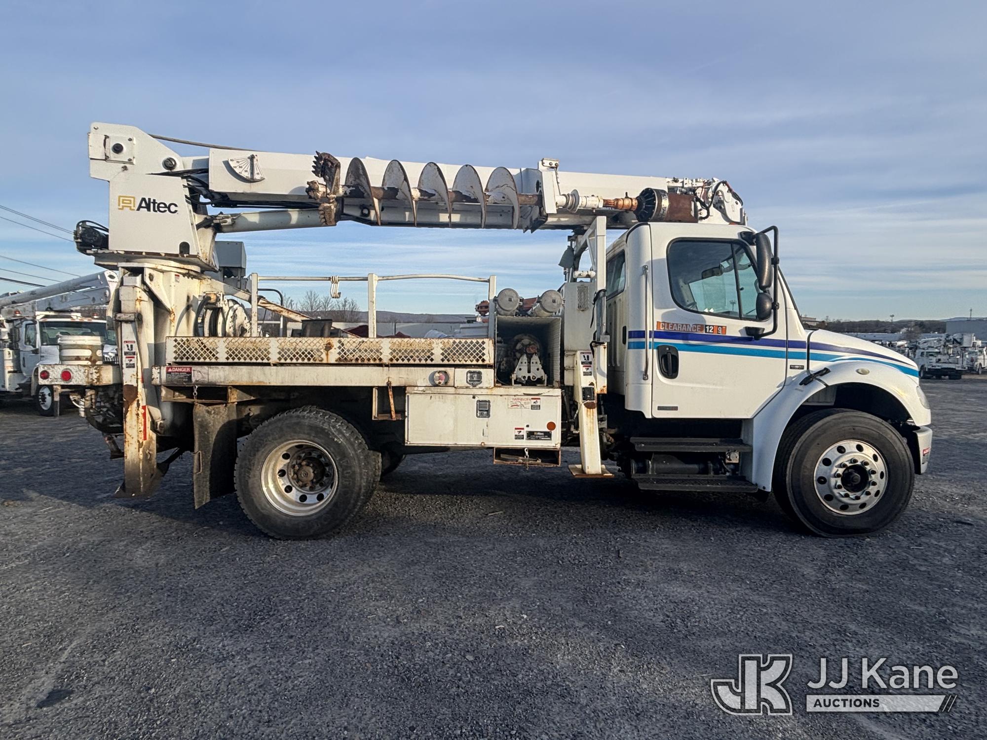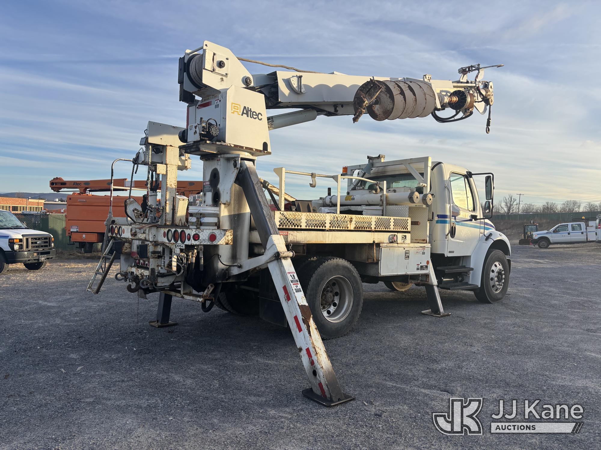 Altec DL45-T, 30,000 Lb Digger Derrick s/n 1206DU0573, with 45 ft. sheave height, 3 section hyd boom, 2 spd digger, heel winch, pole guides, stand up controls & 4 hyd outriggers, corner mounted on 2007 Freightliner M2 106 Medium Duty Flatbed/Utility Truck, Mercedes Benz 6.4L L6 Diesel, 4X2, Auto, A/C, with Battery Disconnect Switch, Inverter, & Capstan Winch, (60,252 miles) (Runs, Moves, & Operates, Wear & Tear, Body Dings & Dents, Rust) (Reads 9,395 hours) This is a Titled Item*