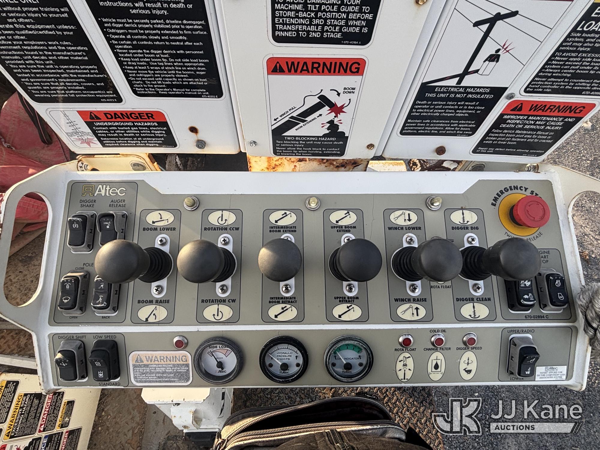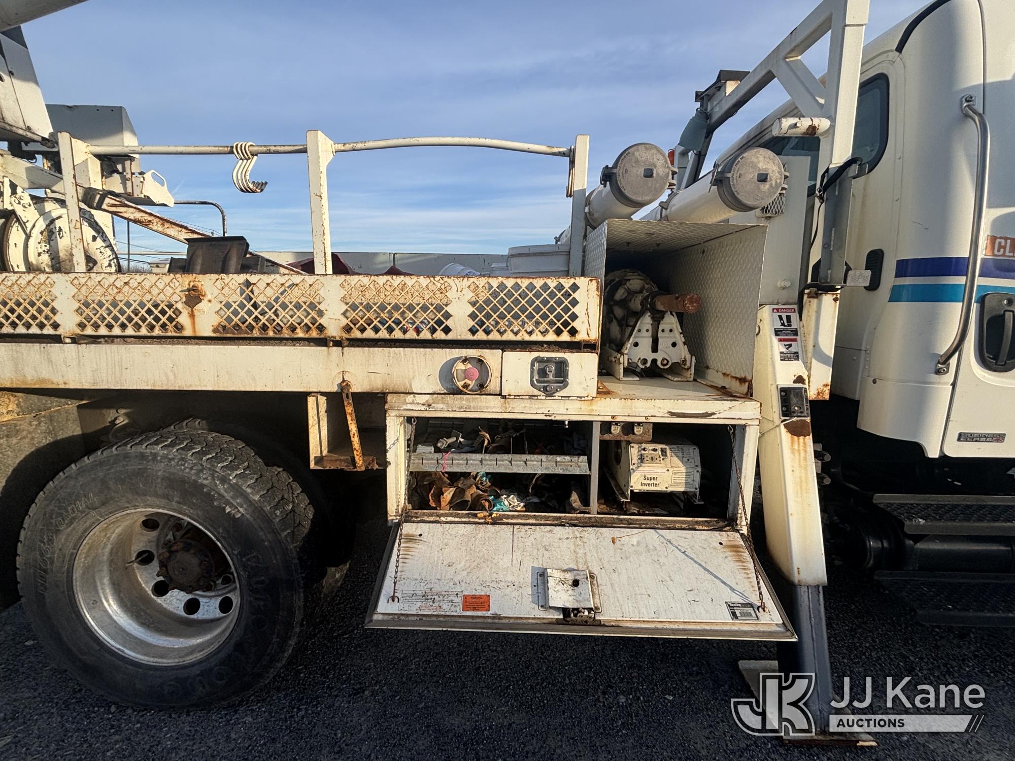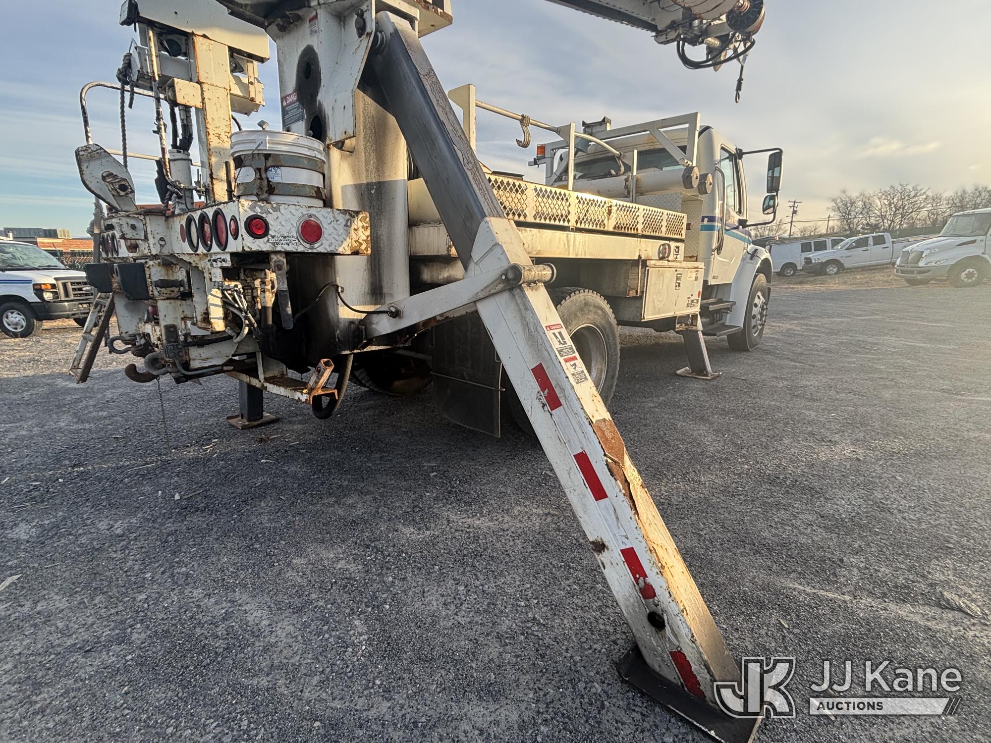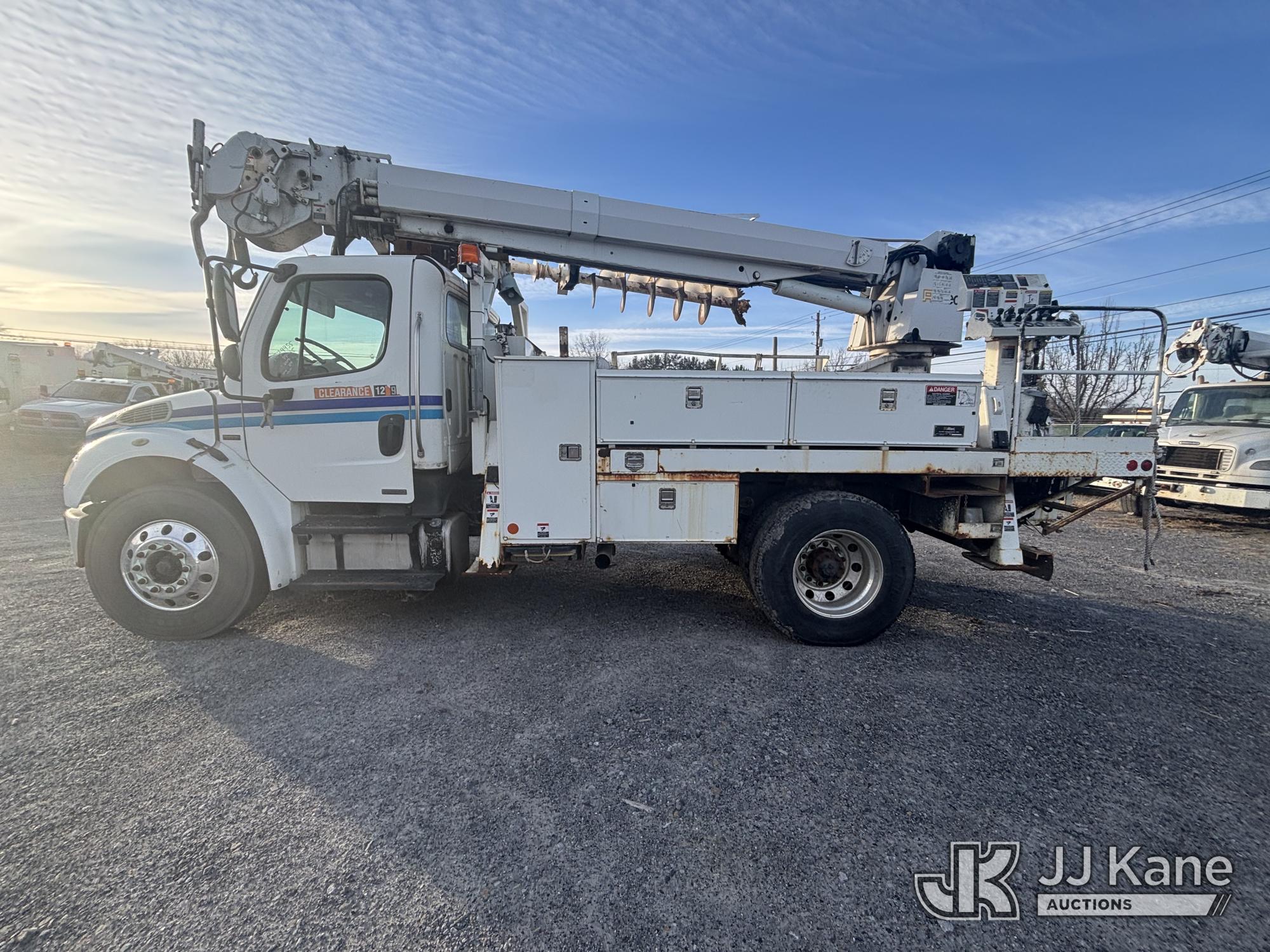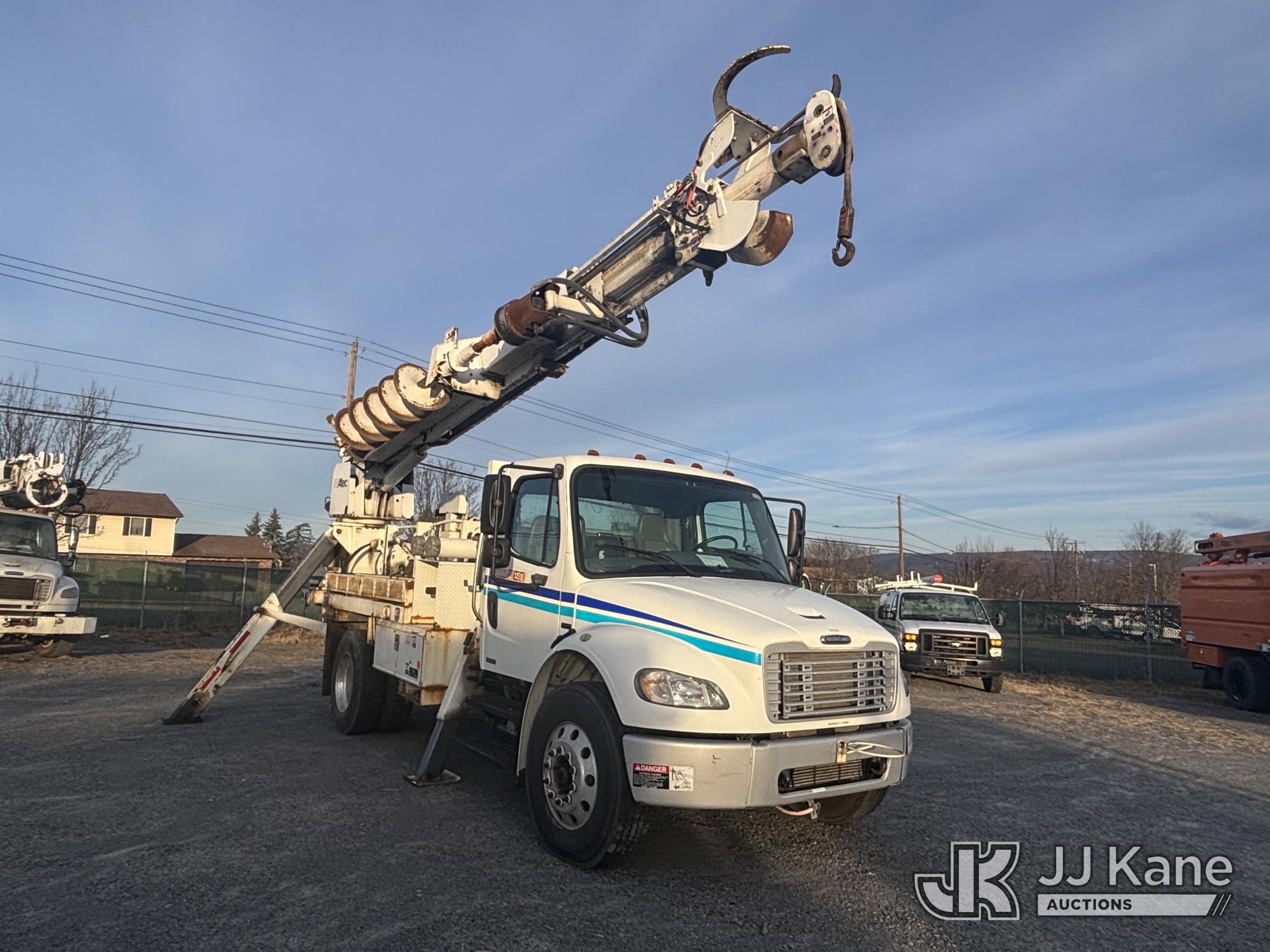 Altec DL45-T, 30,000 Lb Digger Derrick s/n 1206DU0573, with 45 ft. sheave height, 3 section hyd boom, 2 spd digger, heel winch, pole guides, stand up controls & 4 hyd outriggers, corner mounted on 2007 Freightliner M2 106 Medium Duty Flatbed/Utility Truck, Mercedes Benz 6.4L L6 Diesel, 4X2, Auto, A/C, with Battery Disconnect Switch, Inverter, & Capstan Winch, (60,252 miles) (Runs, Moves, & Operates, Wear & Tear, Body Dings & Dents, Rust) (Reads 9,395 hours) This is a Titled Item*