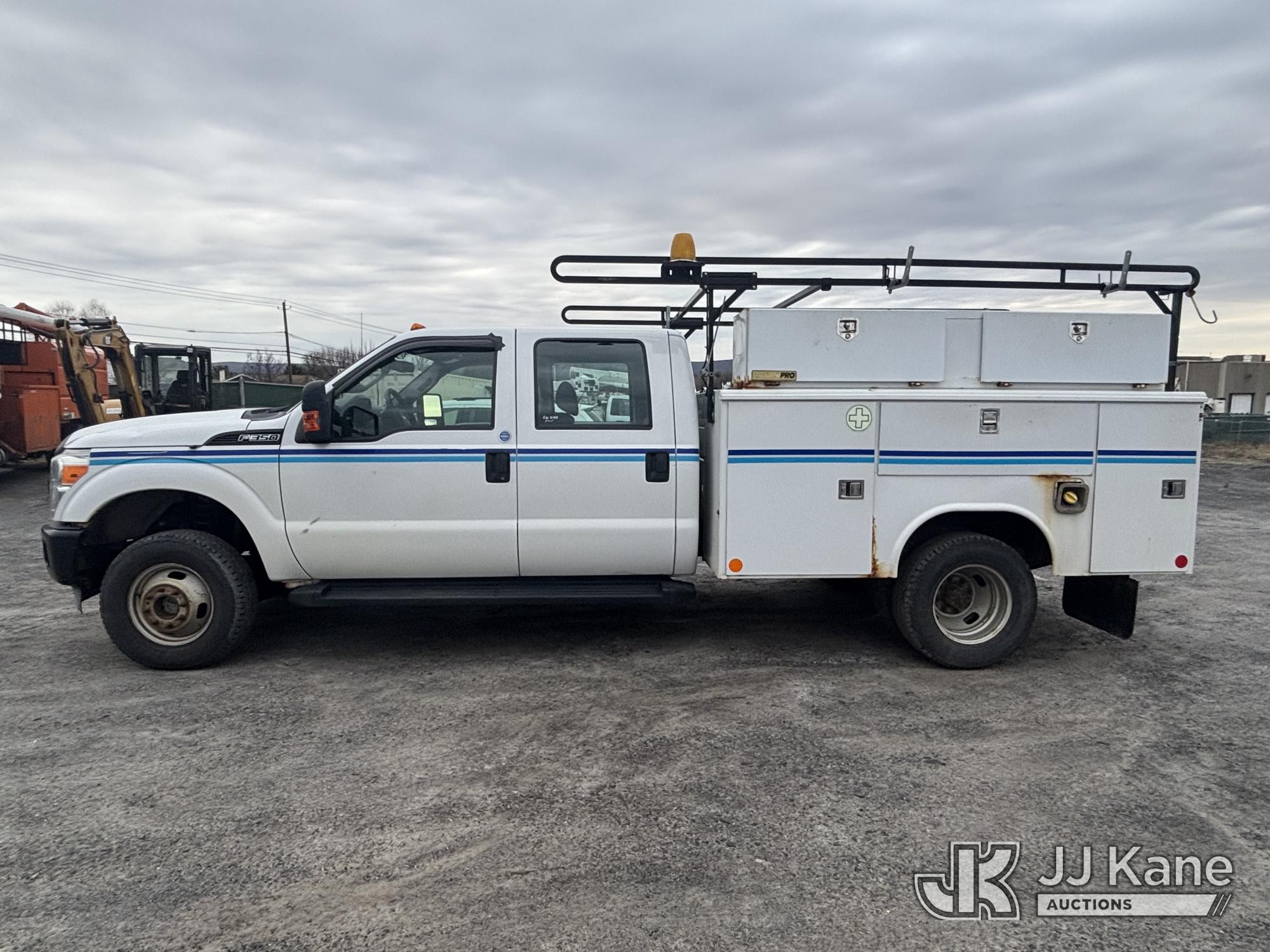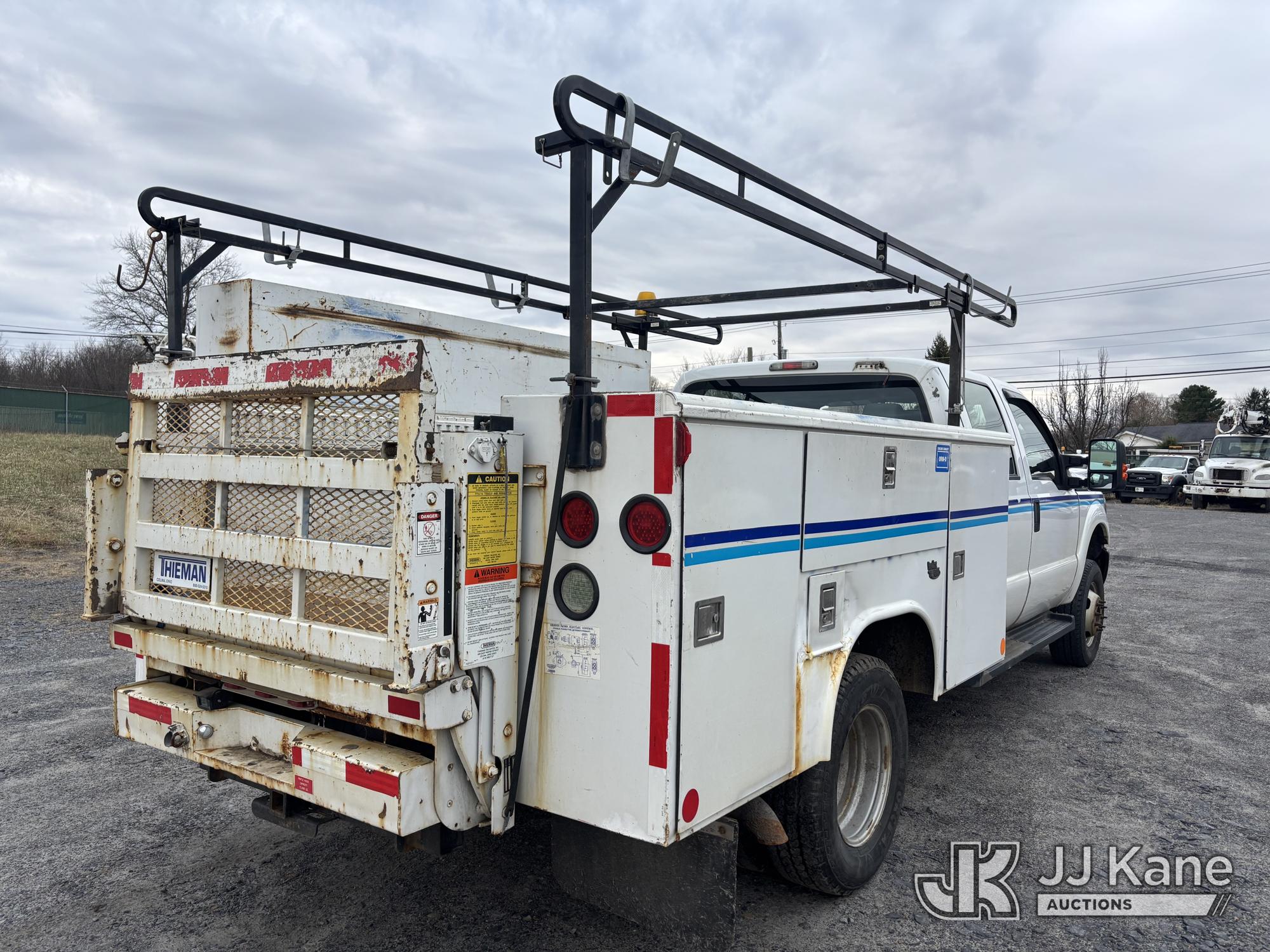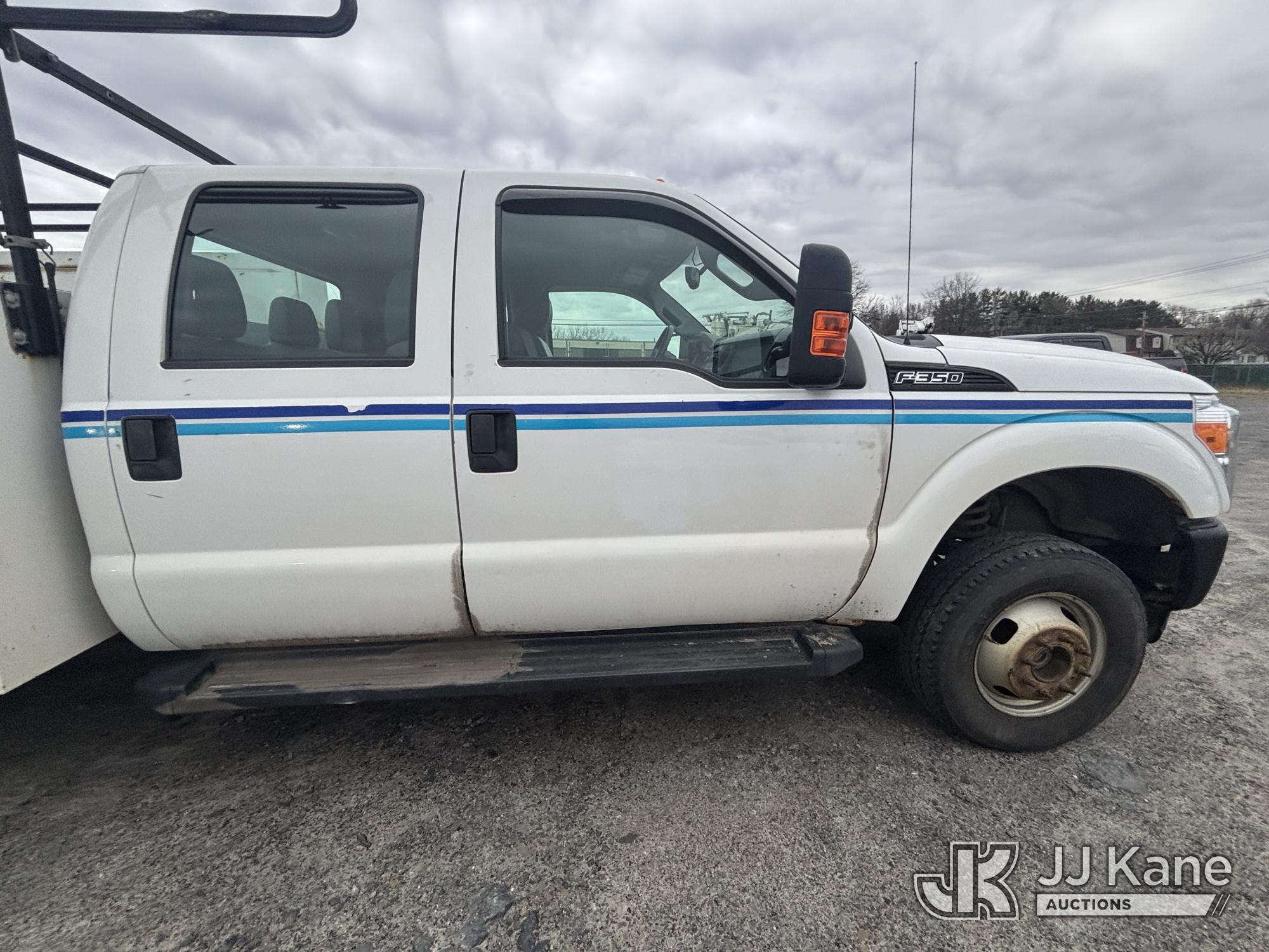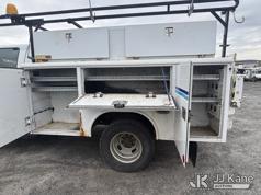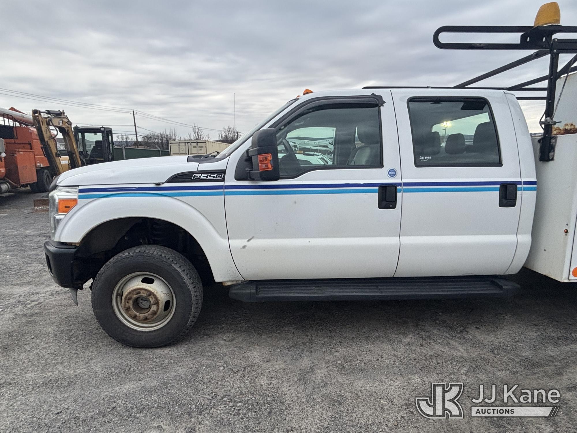 2011 Ford F-350 SD Crew-Cab Service Truck, 6.2L V8 4wd, Gas, 6-Speed Automatic, A/C, with Thieman Lift Gate, (109,165 miles) (Runs & Moves, Lift Gate Pins Seized, Check Engine Light On, Low Fuel, Cab Interior Wear & Tear, Dings, Dents, & Scratches, Gas Cap Cover Unsecured, Multiple Points of Rust Impacting Body) (Reads 19,489 hours) This is a Titled Item*