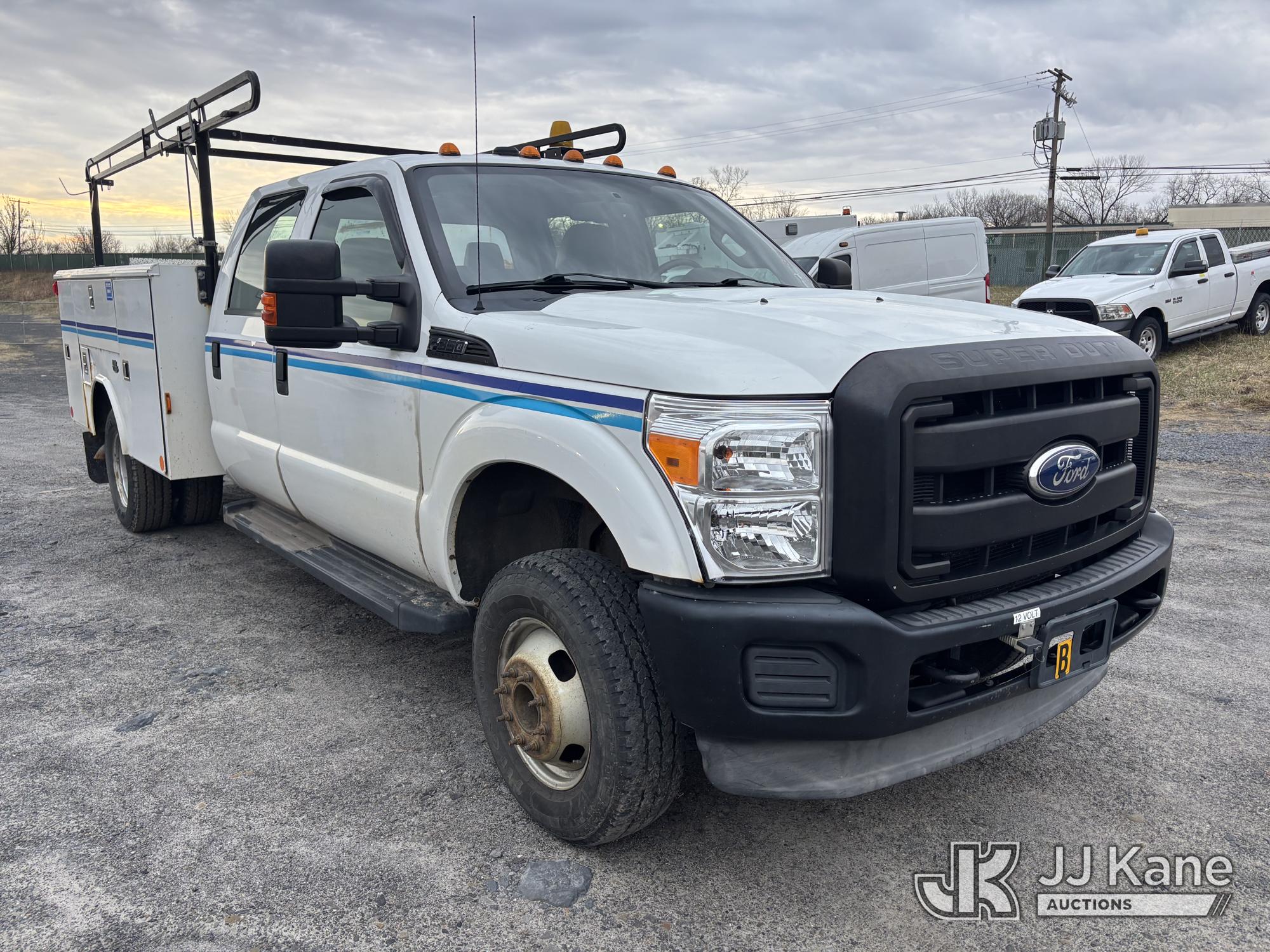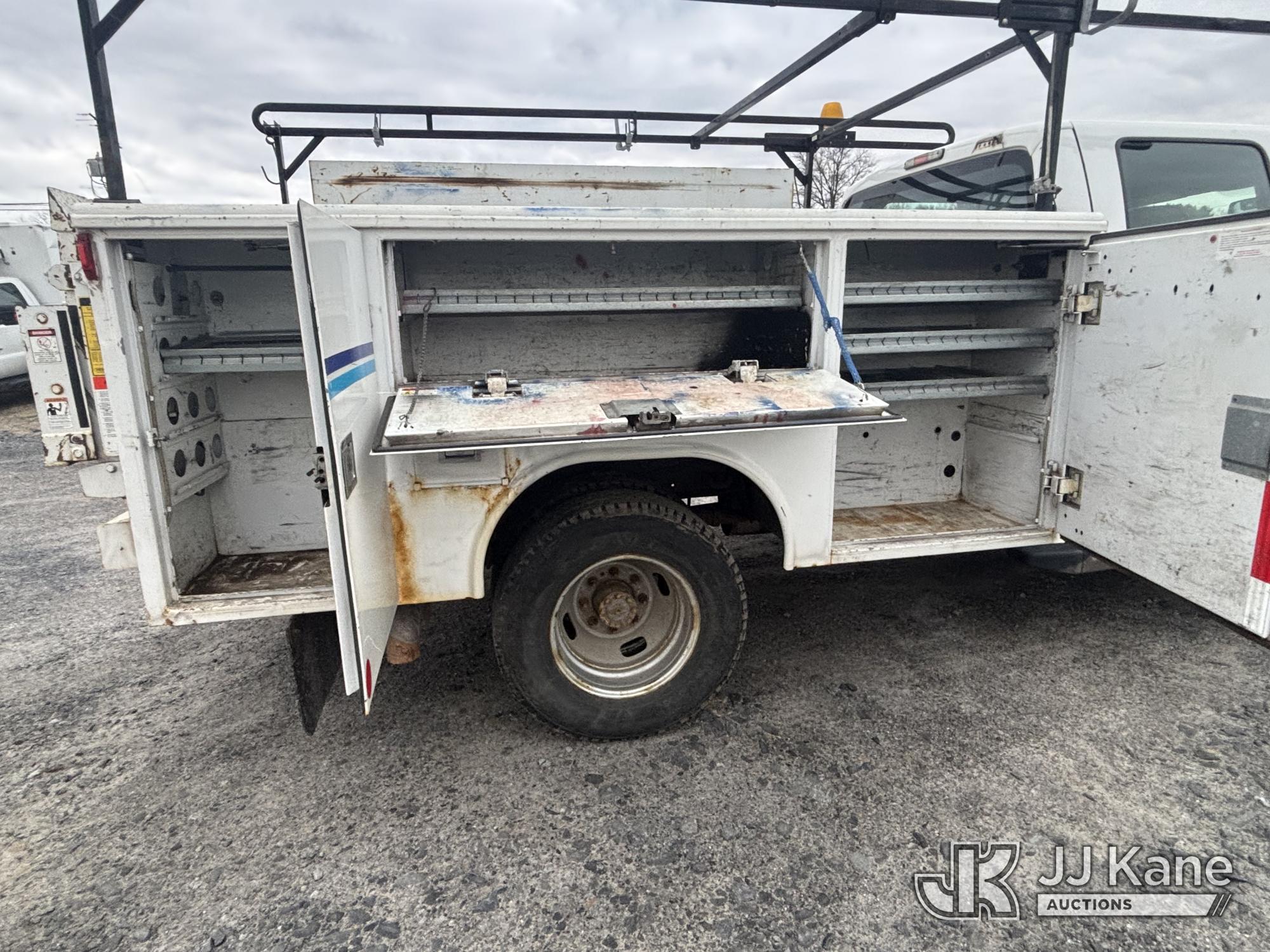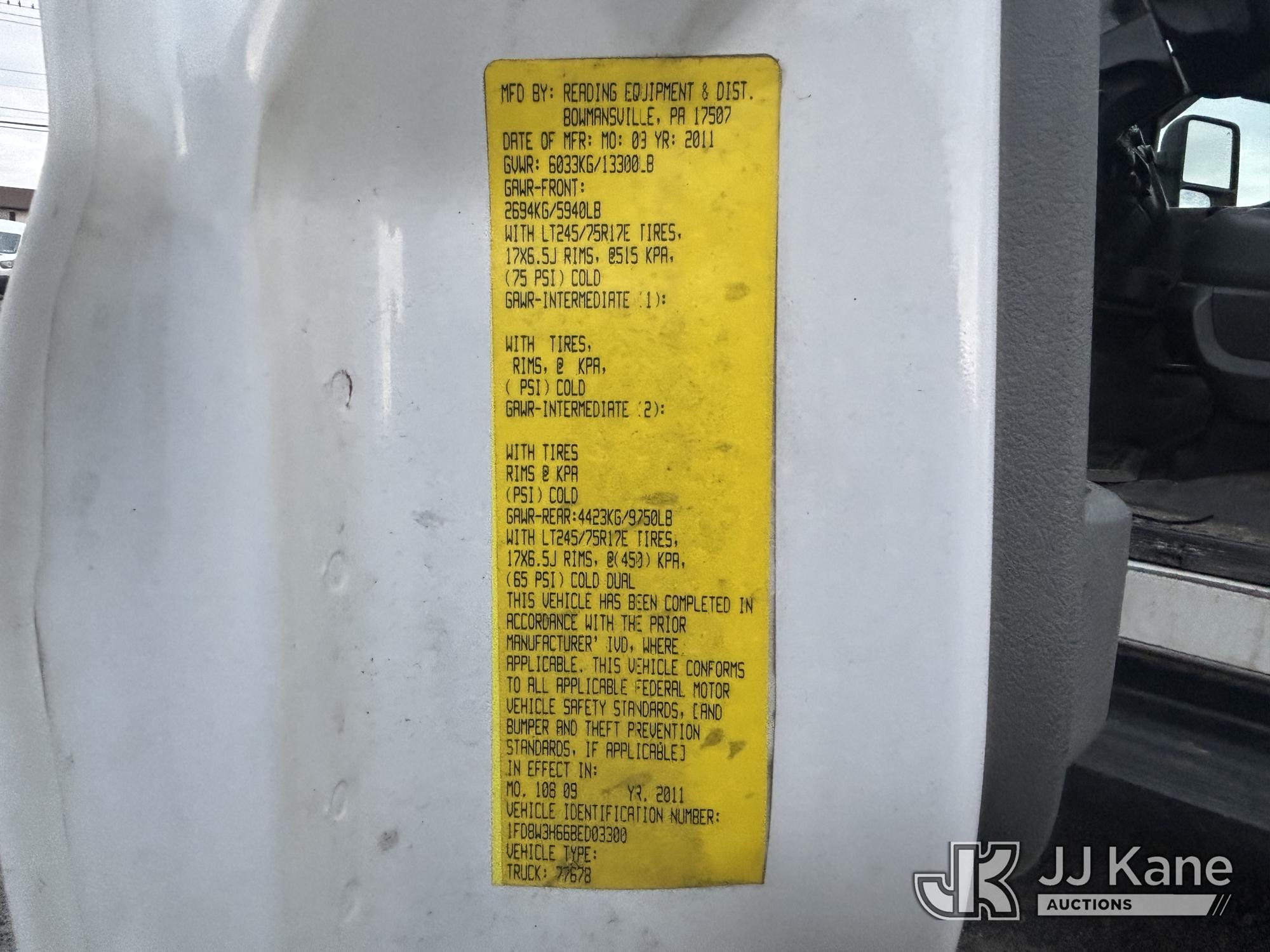2011 Ford F-350 SD Crew-Cab Service Truck, 6.2L V8 4wd, Gas, 6-Speed Automatic, A/C, with Thieman Lift Gate, (109,165 miles) (Runs & Moves, Lift Gate Pins Seized, Check Engine Light On, Low Fuel, Cab Interior Wear & Tear, Dings, Dents, & Scratches, Gas Cap Cover Unsecured, Multiple Points of Rust Impacting Body) (Reads 19,489 hours) This is a Titled Item*