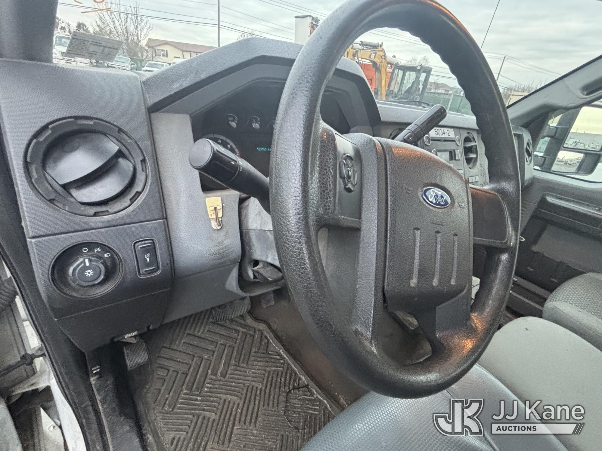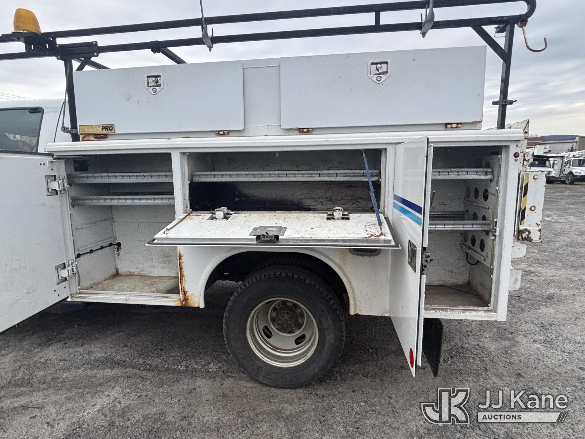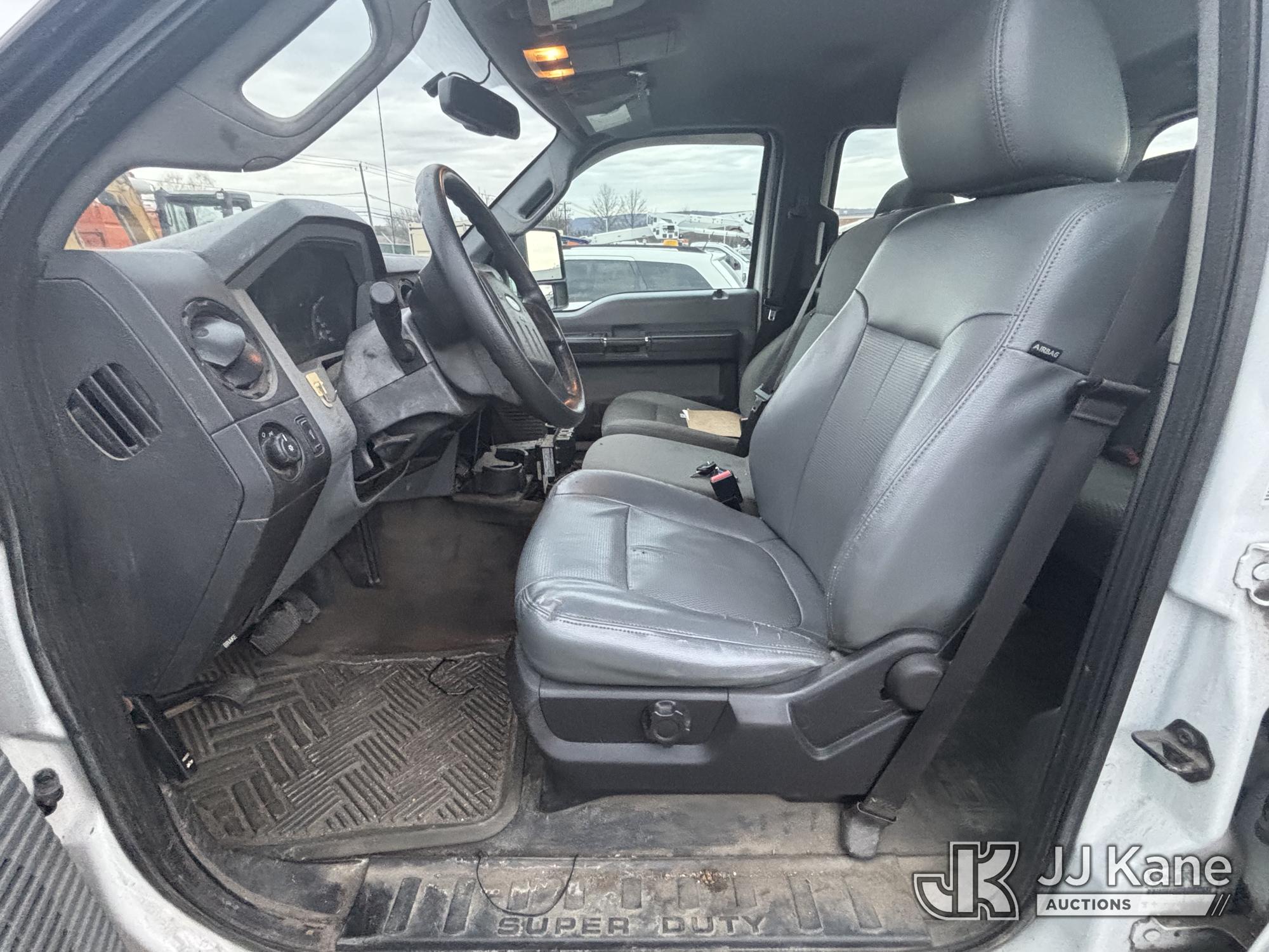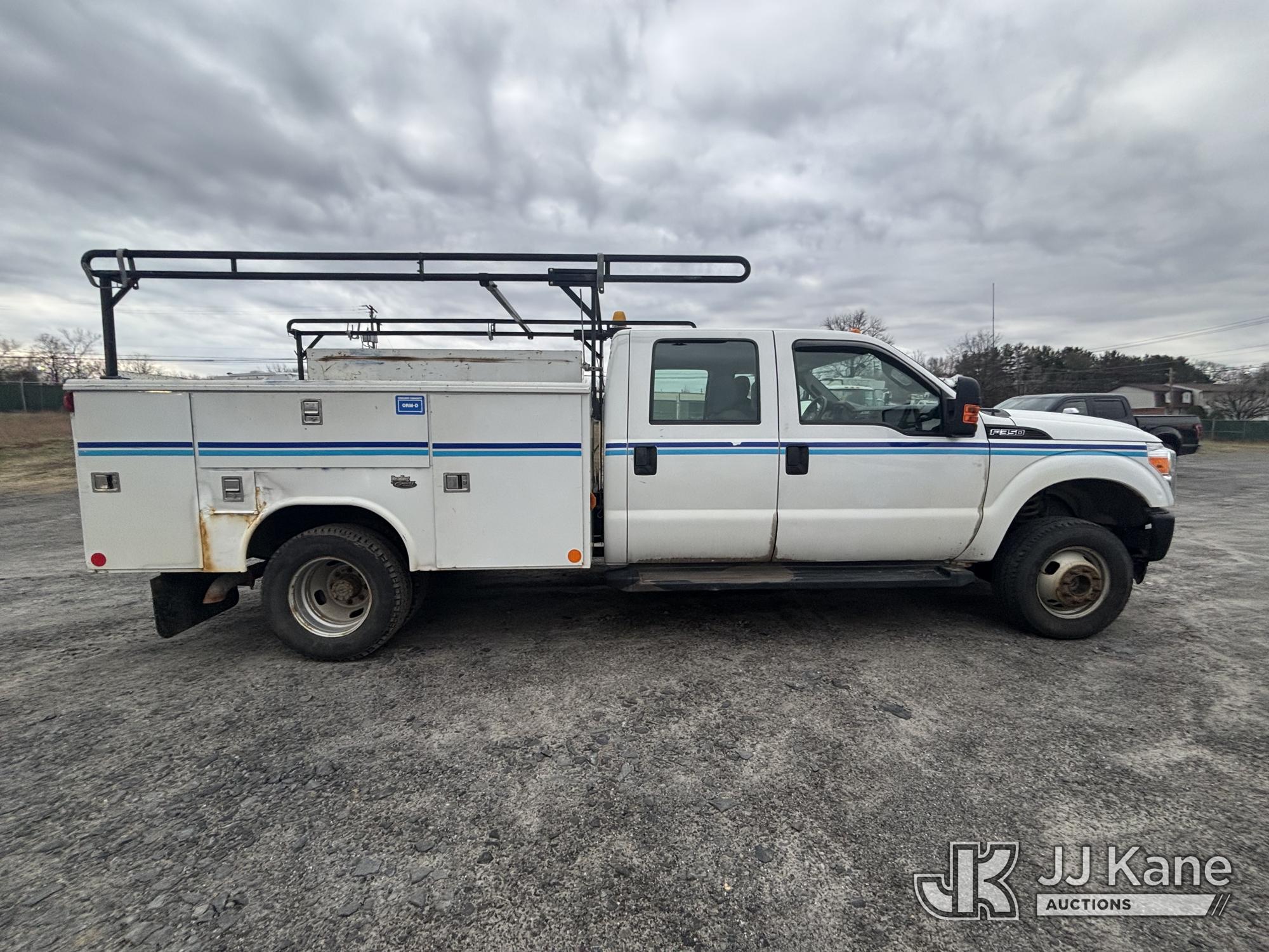 2011 Ford F-350 SD Crew-Cab Service Truck, 6.2L V8 4wd, Gas, 6-Speed Automatic, A/C, with Thieman Lift Gate, (109,165 miles) (Runs & Moves, Lift Gate Pins Seized, Check Engine Light On, Low Fuel, Cab Interior Wear & Tear, Dings, Dents, & Scratches, Gas Cap Cover Unsecured, Multiple Points of Rust Impacting Body) (Reads 19,489 hours) This is a Titled Item*