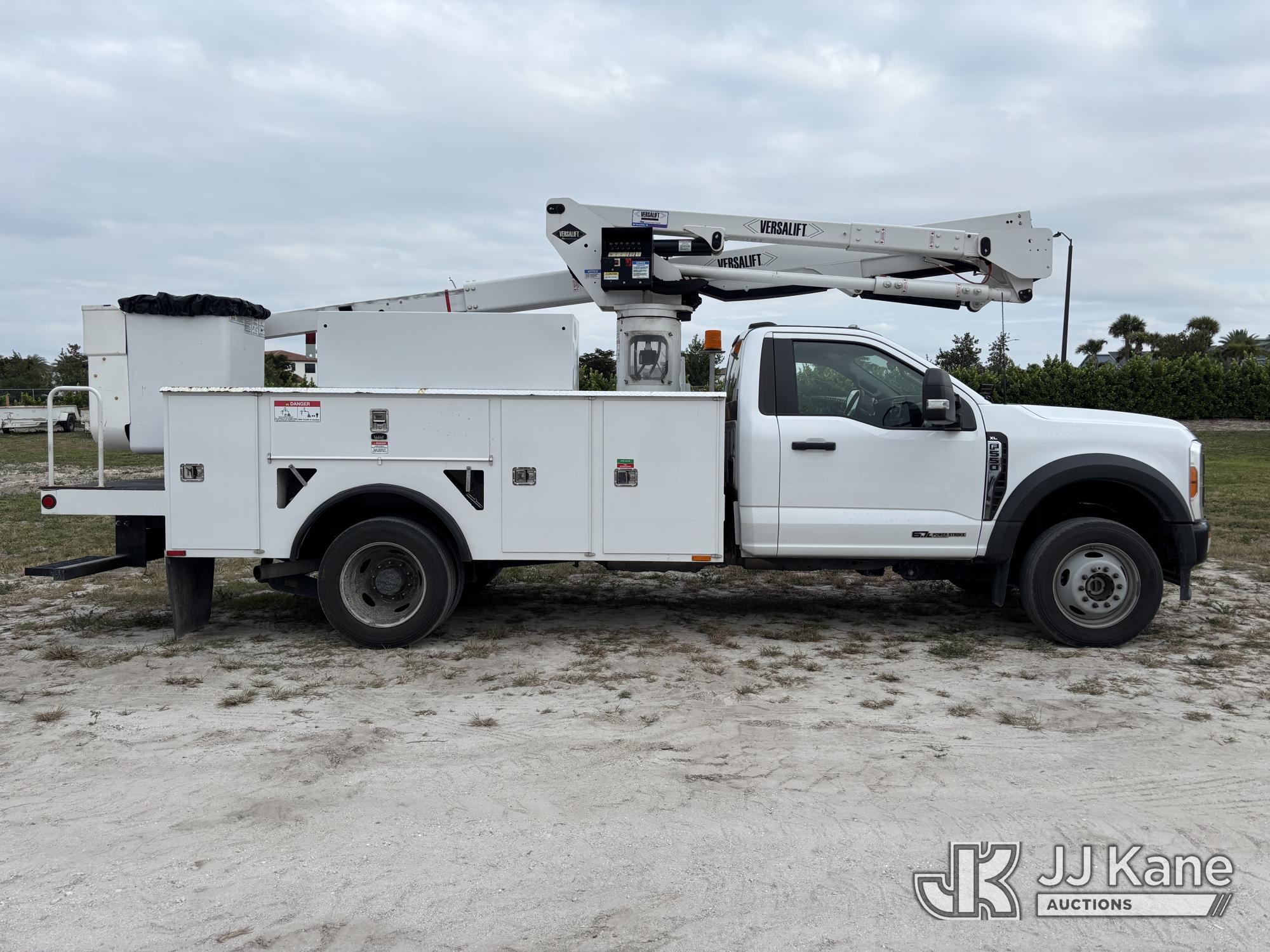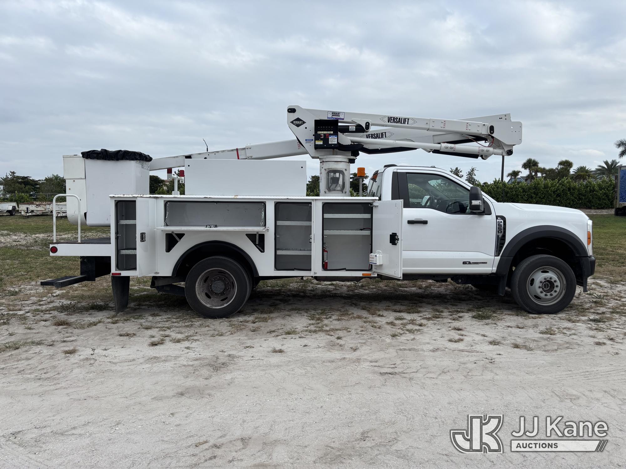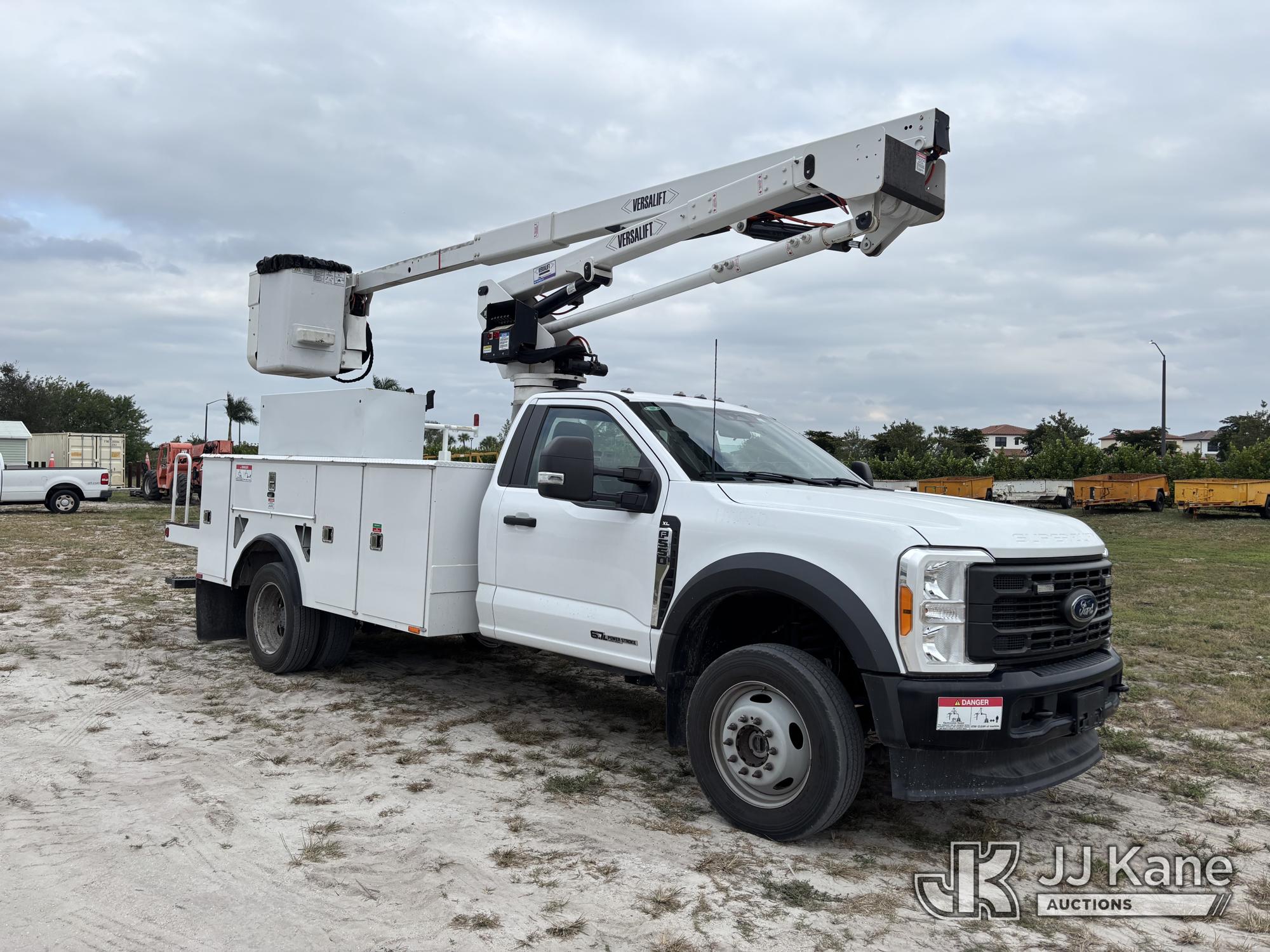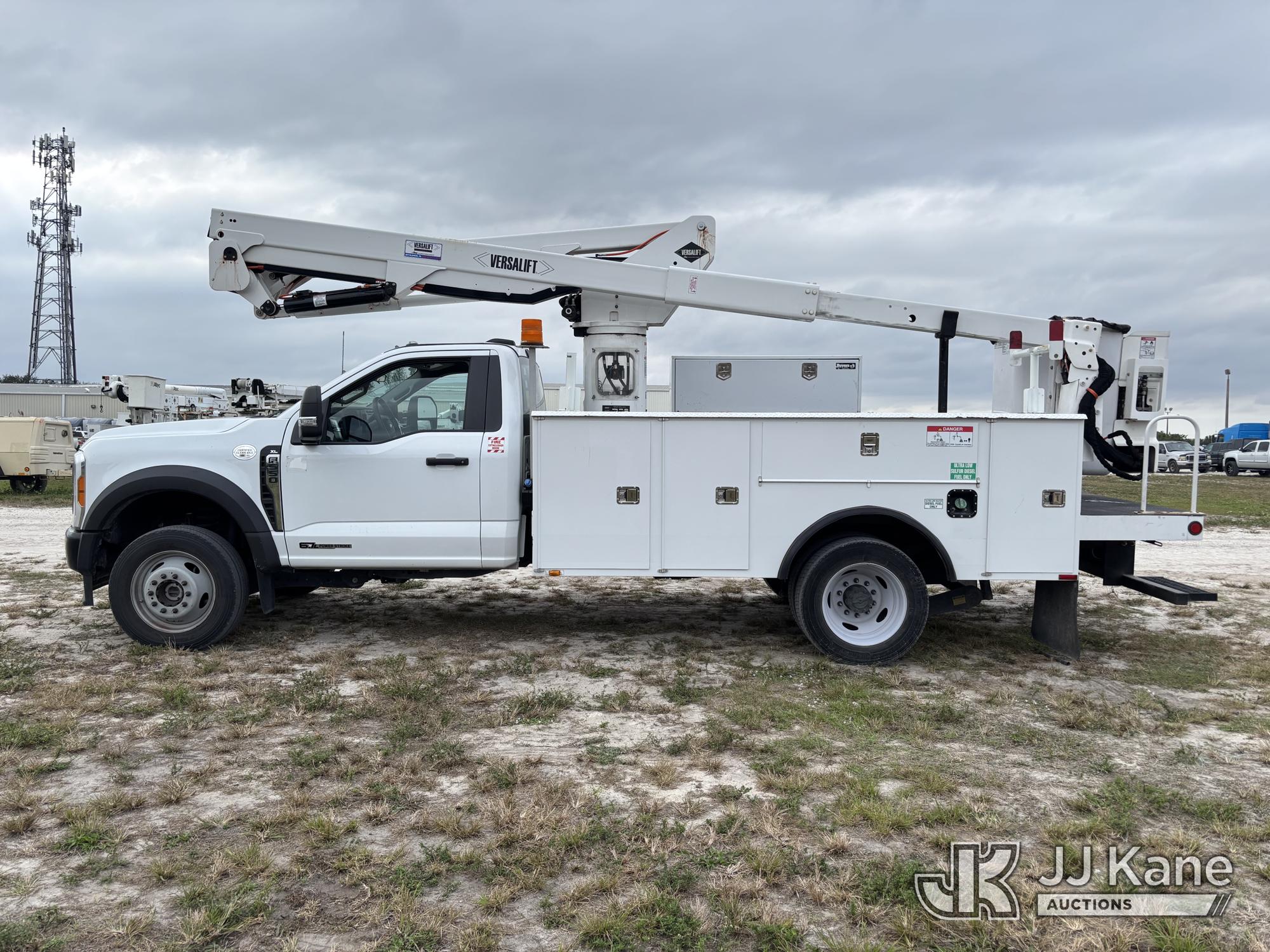Versalift SST40EIH-02, 45 ft, Articulating & Telescopic Bucket Truck s/n XG230125, with single-man bucket, mounted behind cab on 2023 Ford F550 4x4 Service Truck, 6.7L V8 diesel, Auto, A/C, (31,306 miles) (Runs, Moves & Upper Operates) (Body & Paint Damage) (FL Residents Purchasing Titled Items - tax, title & registration fees will be collected at the maximum rate of $400.00 under 25,999 and $800.00 for Over 26,000 and $250.00 trailers - Proof of insurance is mandatory; Out of State Residents Purchasing Title Items - tax will be collected based upon your state rate.) This is a Titled Item*
