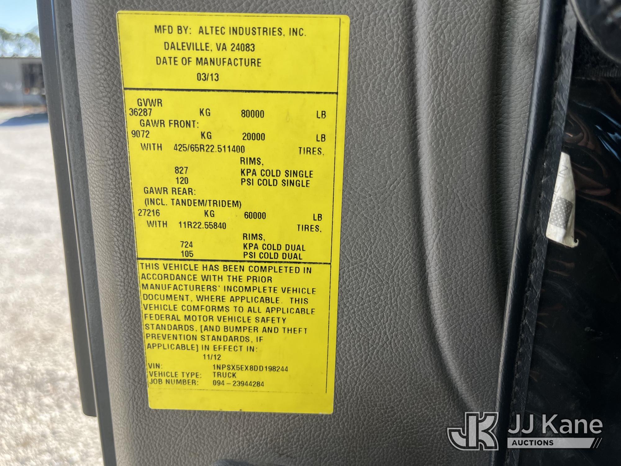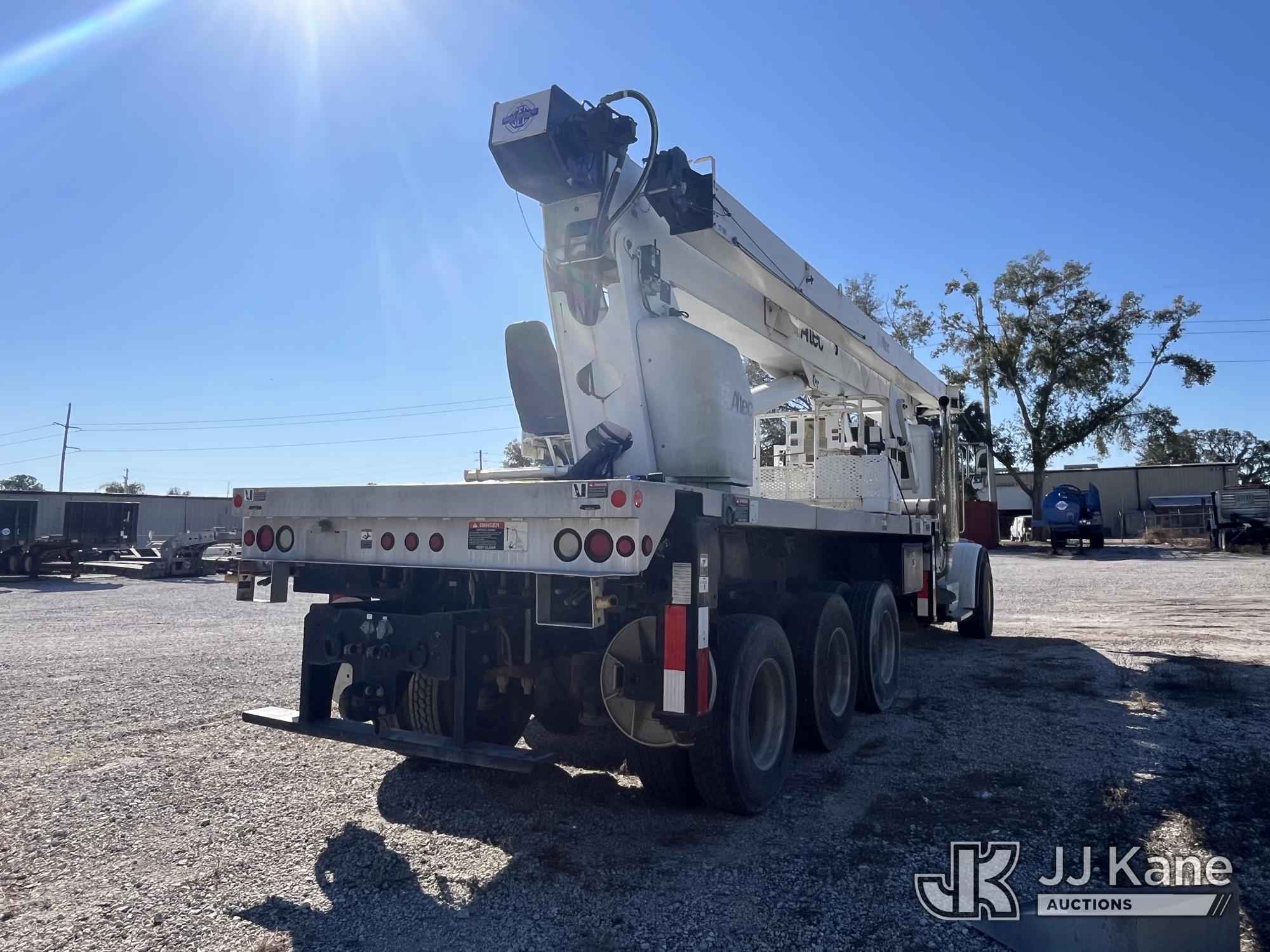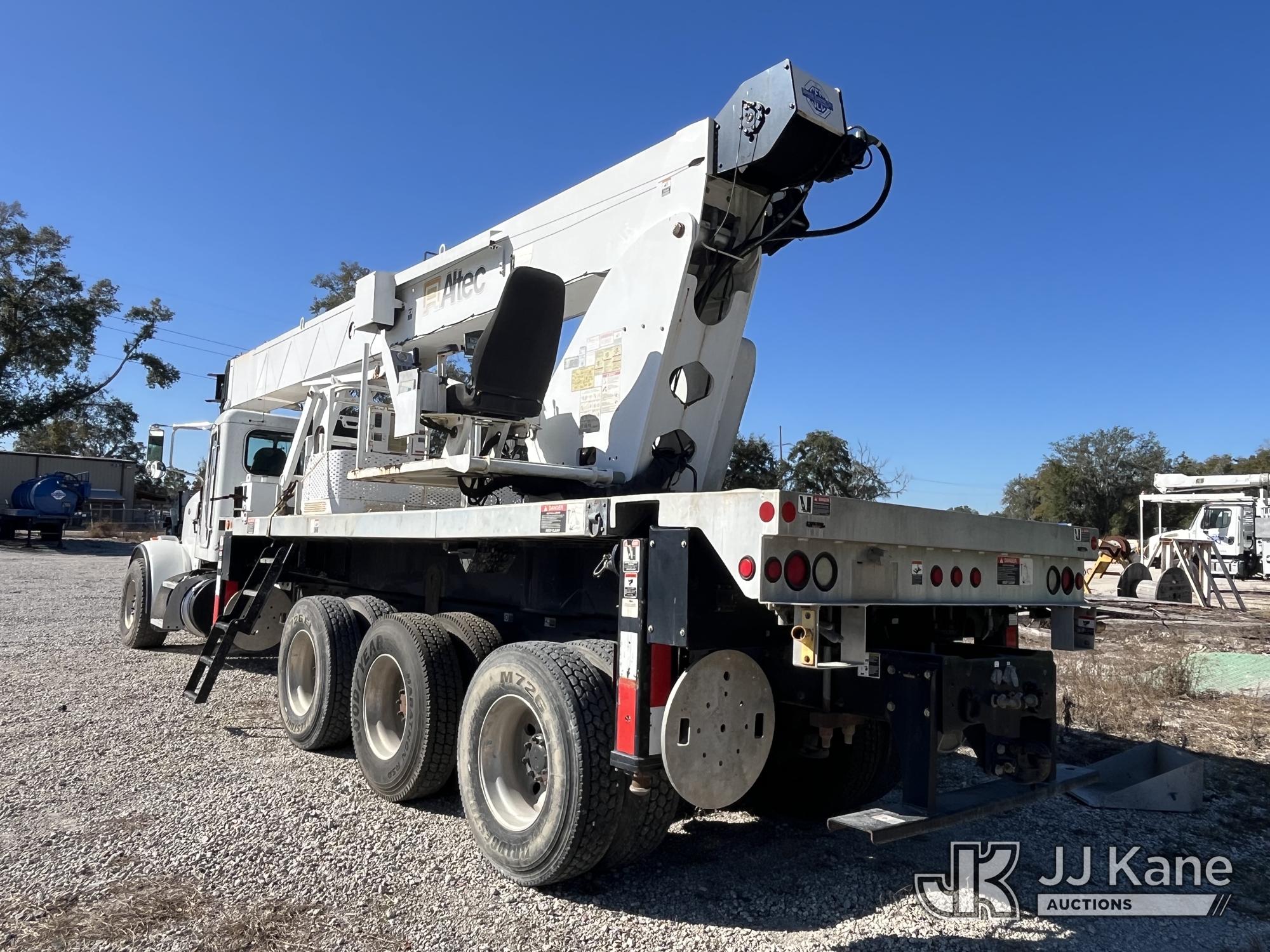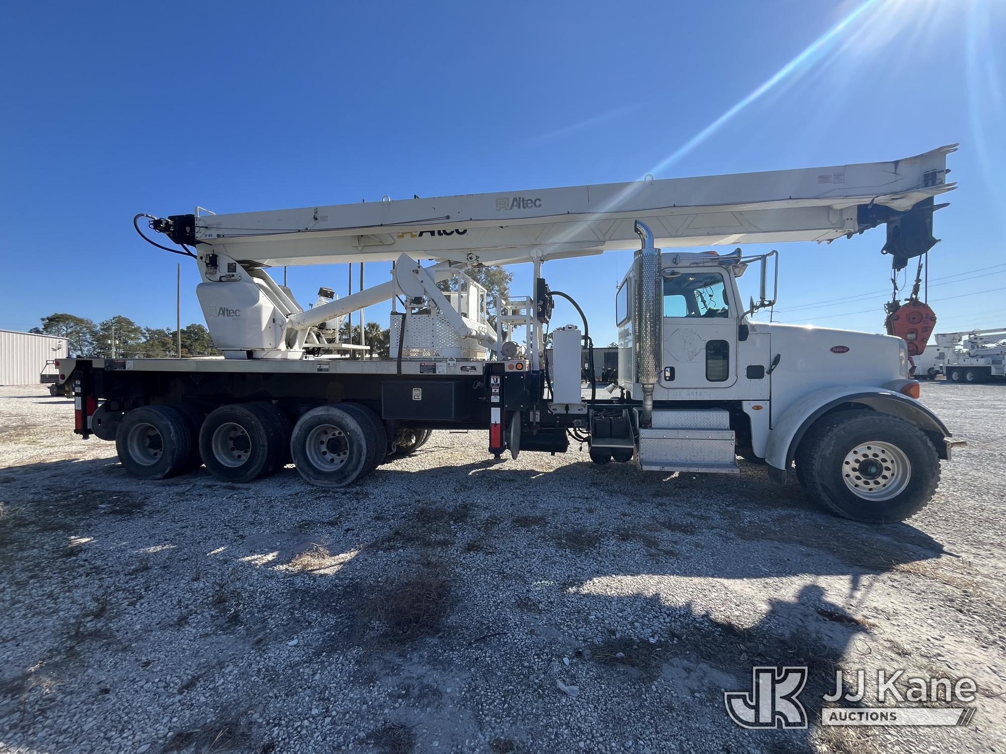 Altec AC38-127S, 38-Ton, Hydraulic Truck Crane s/n 0213EG1076, with 192 ft. sheave height, 31 ft. to 127 ft. of 5 section hyd boom, 31 ft. to 55 ft. 2-section telescopic swing away jib, heel winch, hook block, remote, riding console & 5 hyd outriggers, rear mounted on 2013 Peterbilt 365 Tri-Axle Flatbed Truck, 8.9L L6 DIESEL 10-spd, A/C, (23,757 miles) (Runs & Moves, Upper Operates) This is a Titled Item*