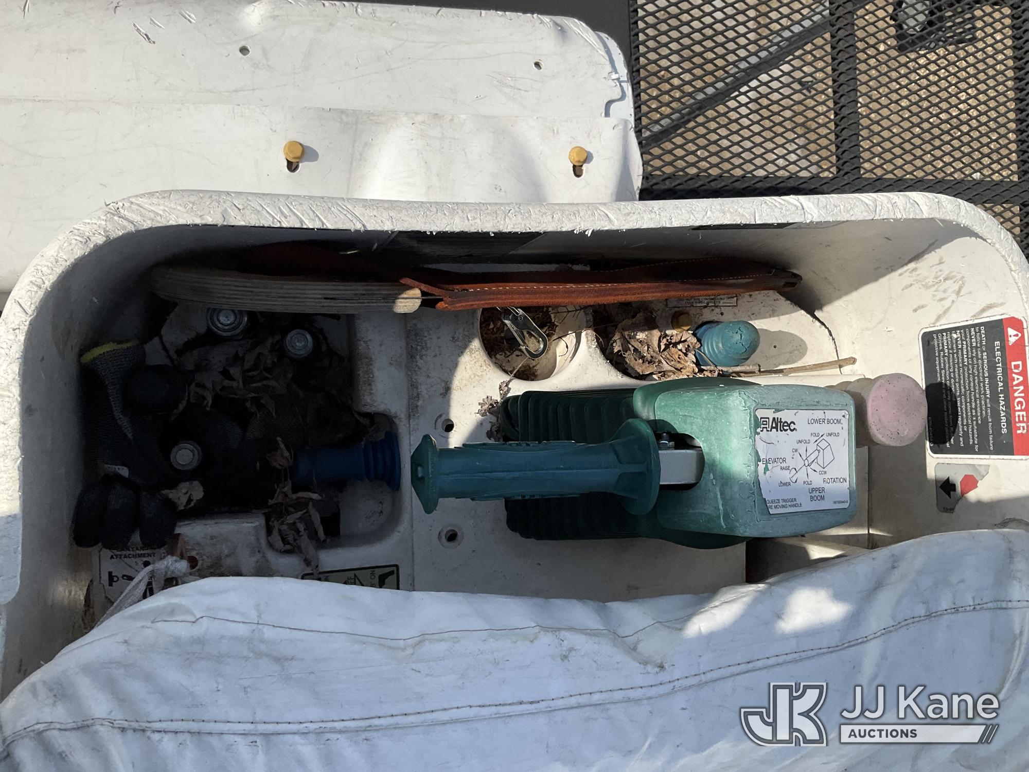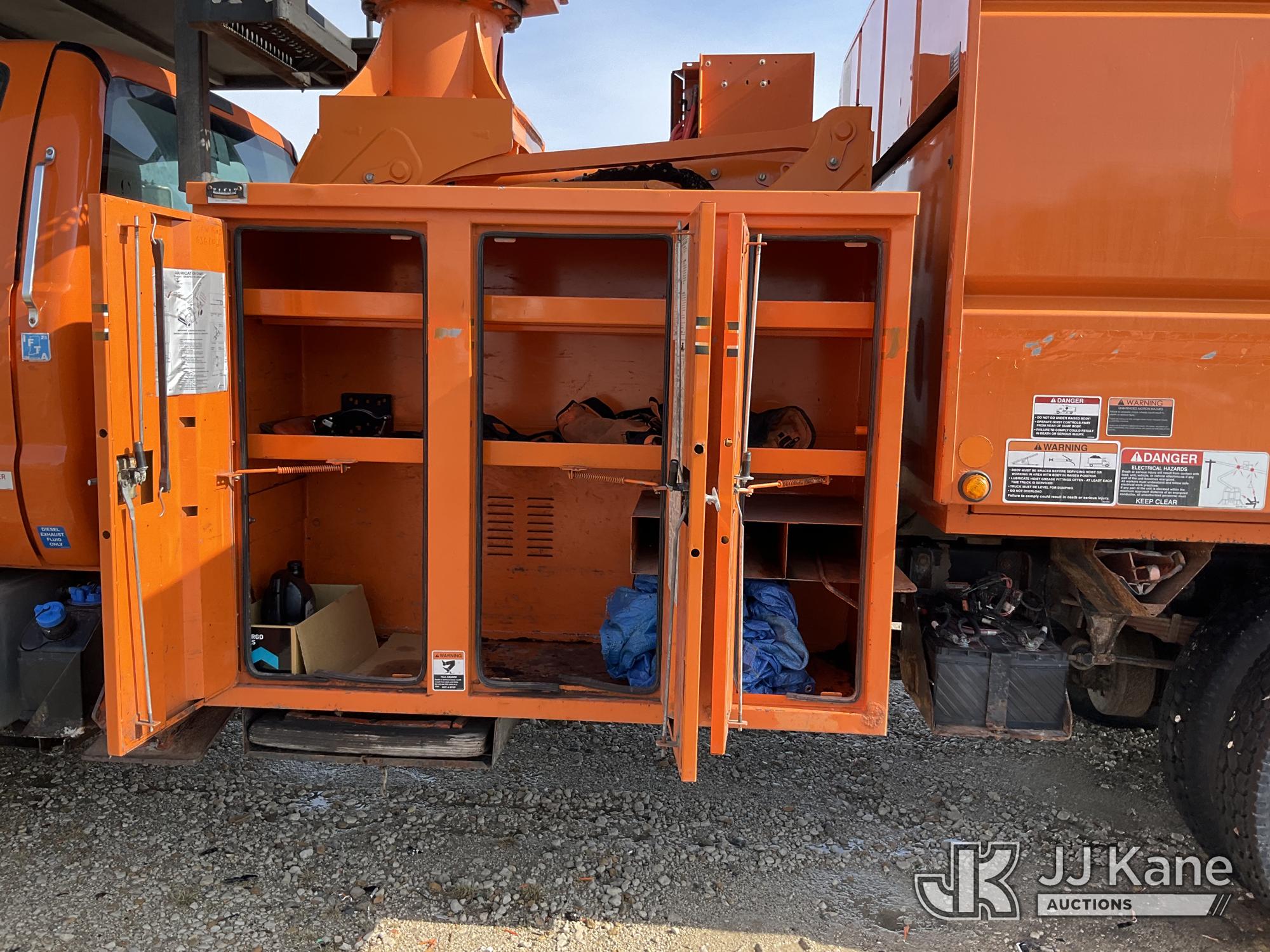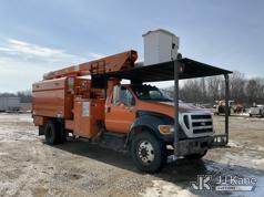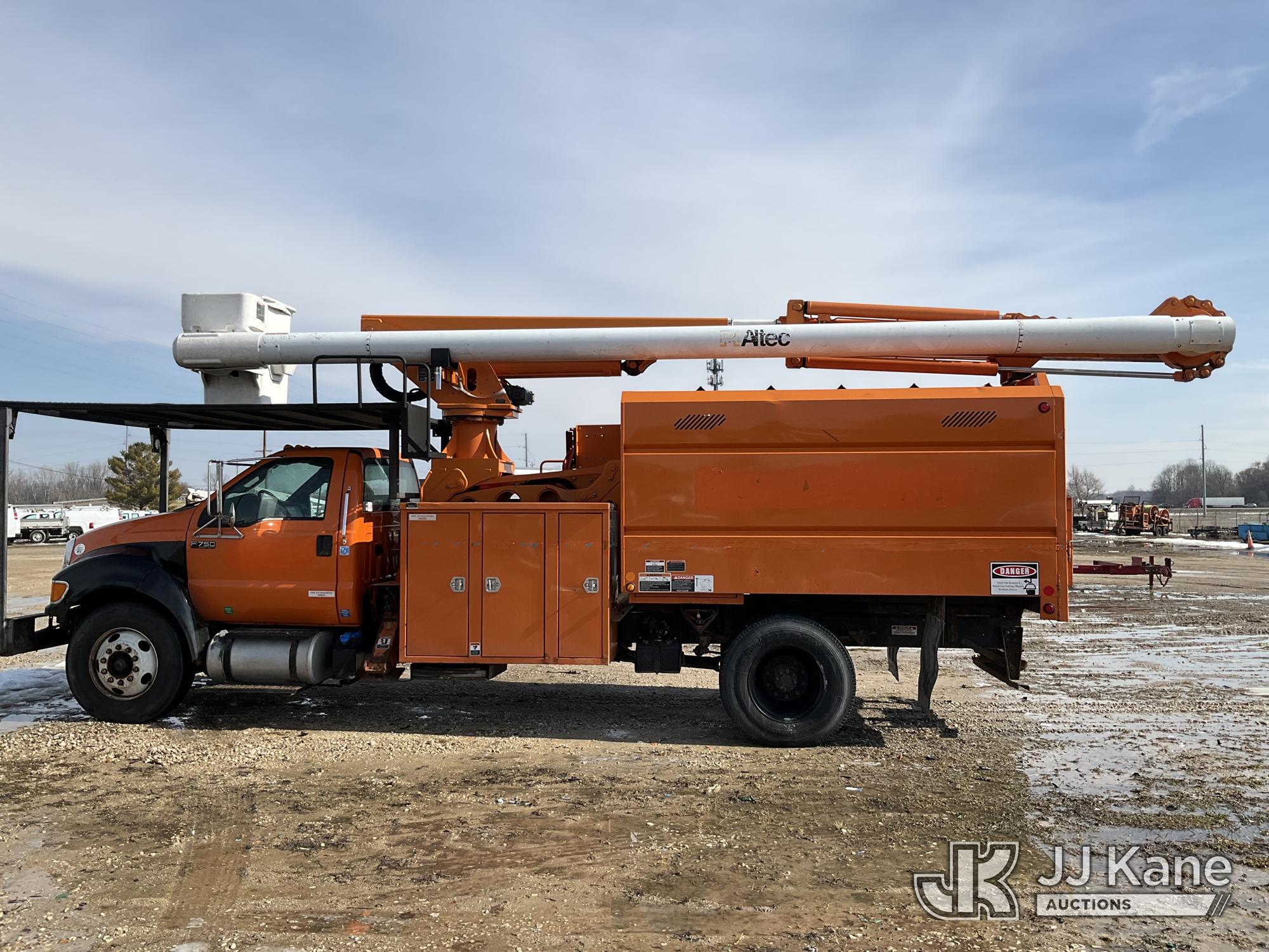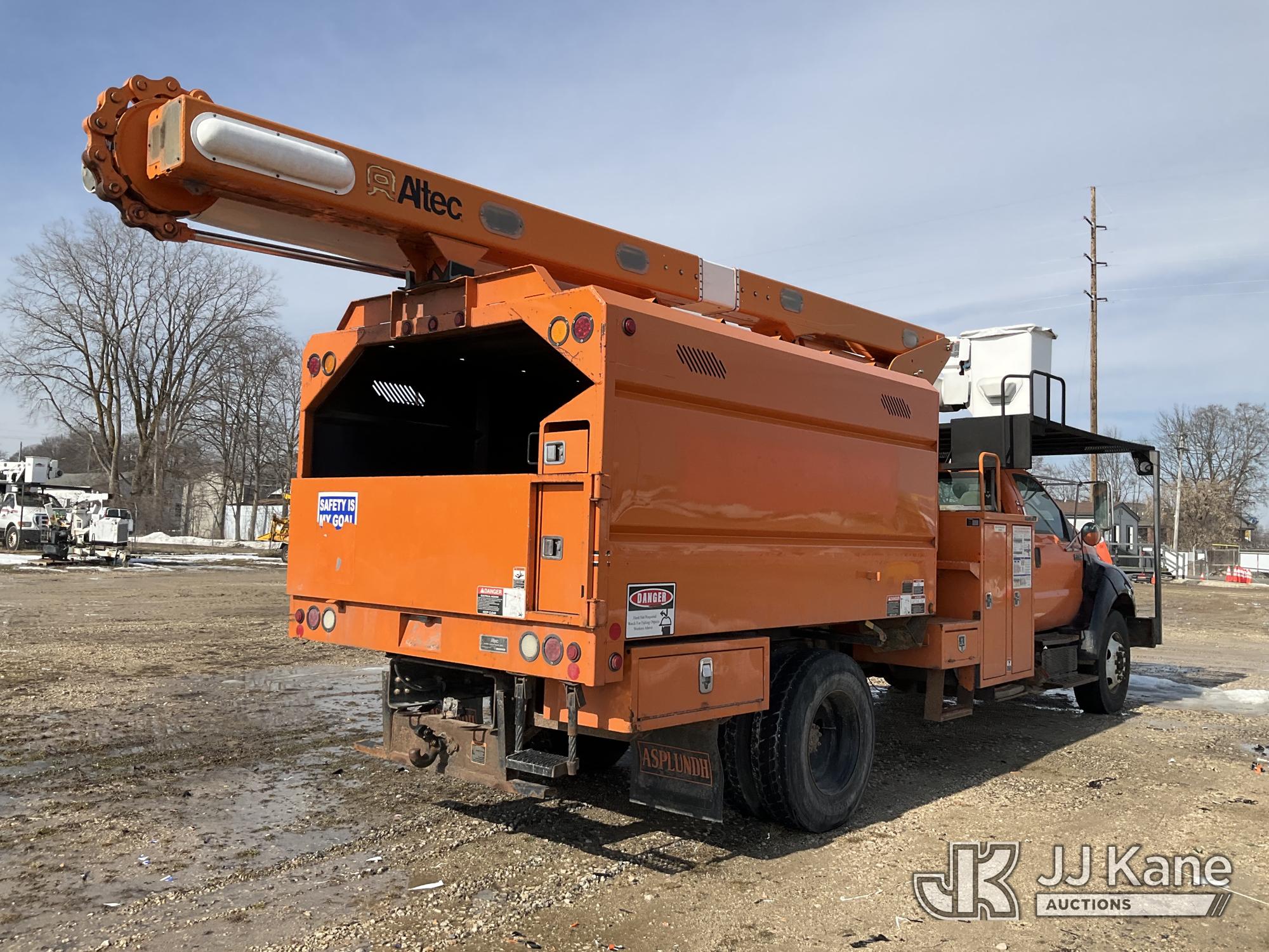 Altec LR760E70, 75 ft, Over-Center Elevator Bucket Truck s/n 0915FF4287, with single man bucket, two hydraulic outriggers, mounted behind cab on 2015 Ford F-750 Regular Cab 2WD DRW Chipper Dump Truck, 6.7L L6 DIESEL 6-spd, (114,884 miles) (Runs & Moves) (Truck Will Not Stay Running, Upper Condition Unknown, Jump to Start, Swollen Batteries, Battery Began Venting Gas During Auction Inspection, Truck Unsafe To Start With Bad Batteries, ABS Light) (Seller States: Unit In Limp Mode, Won't Stay Running) This is a Titled Item*