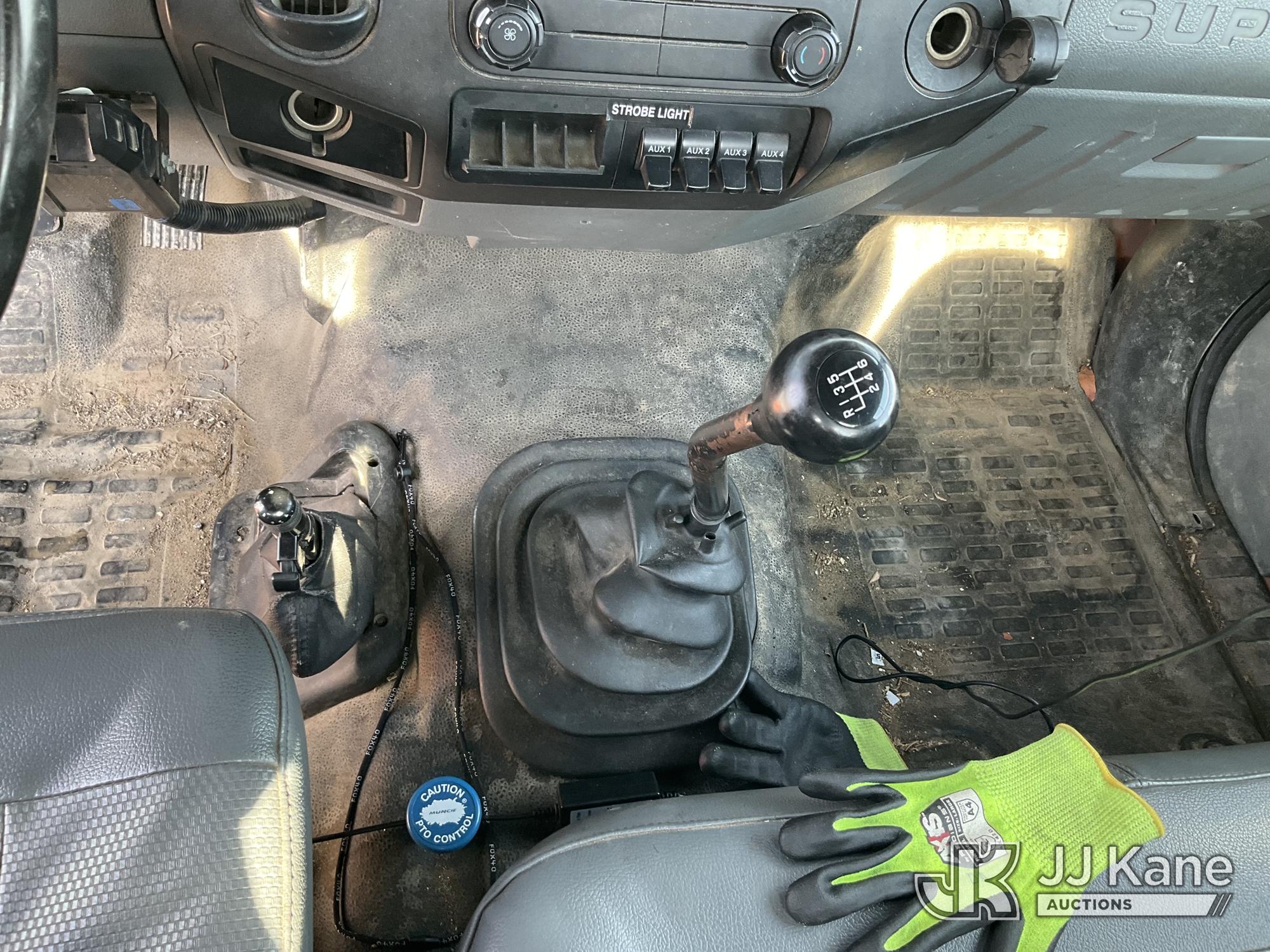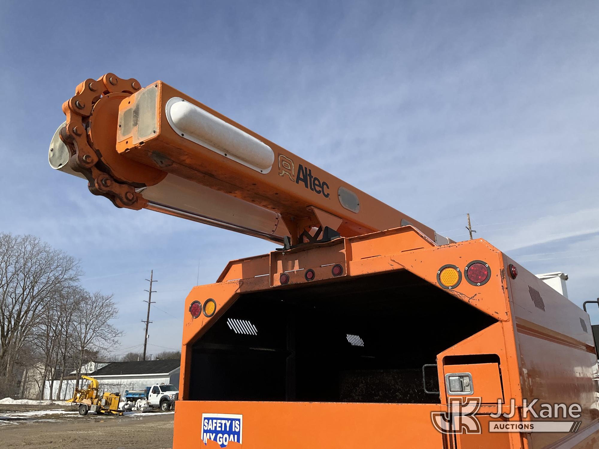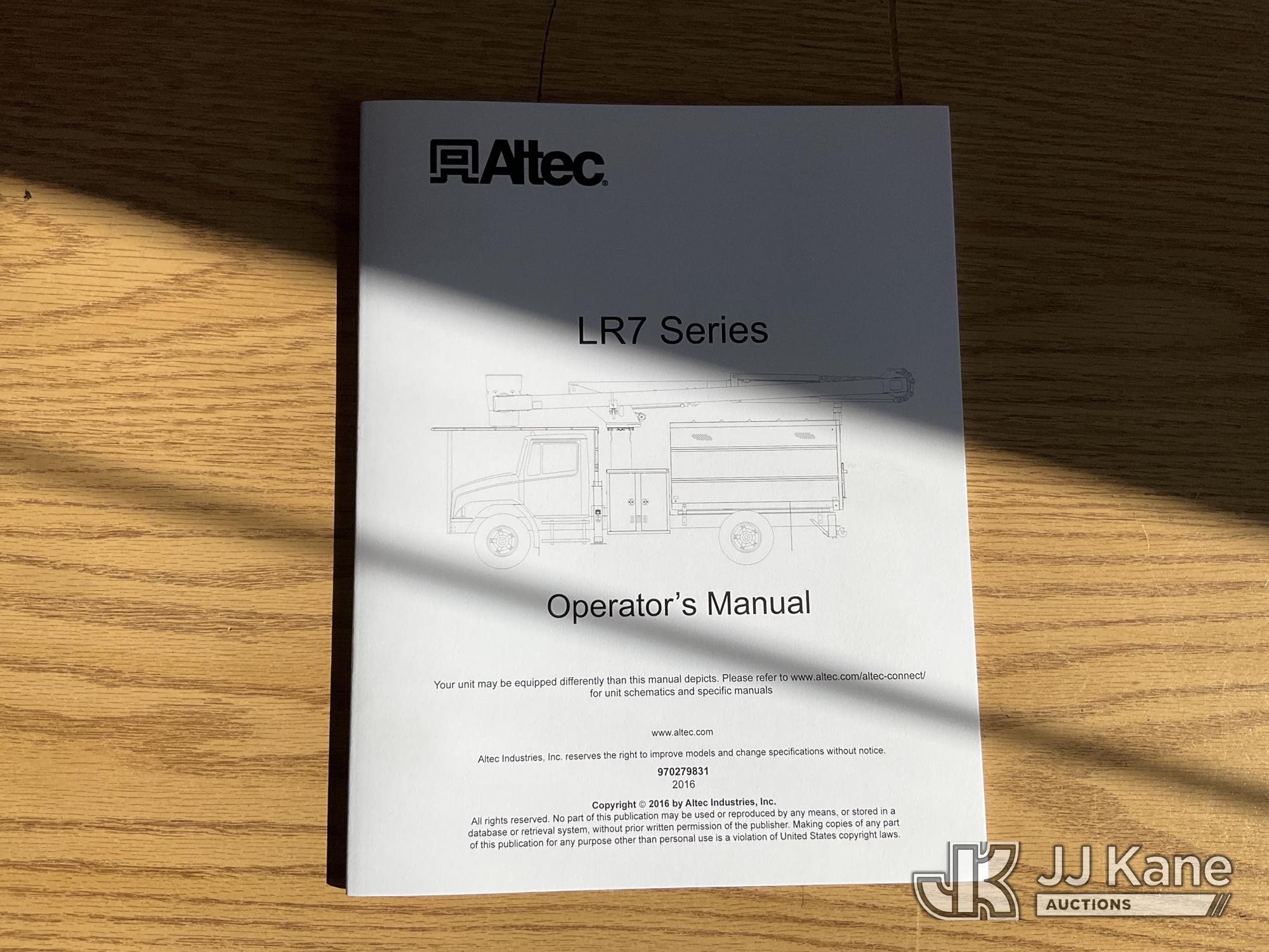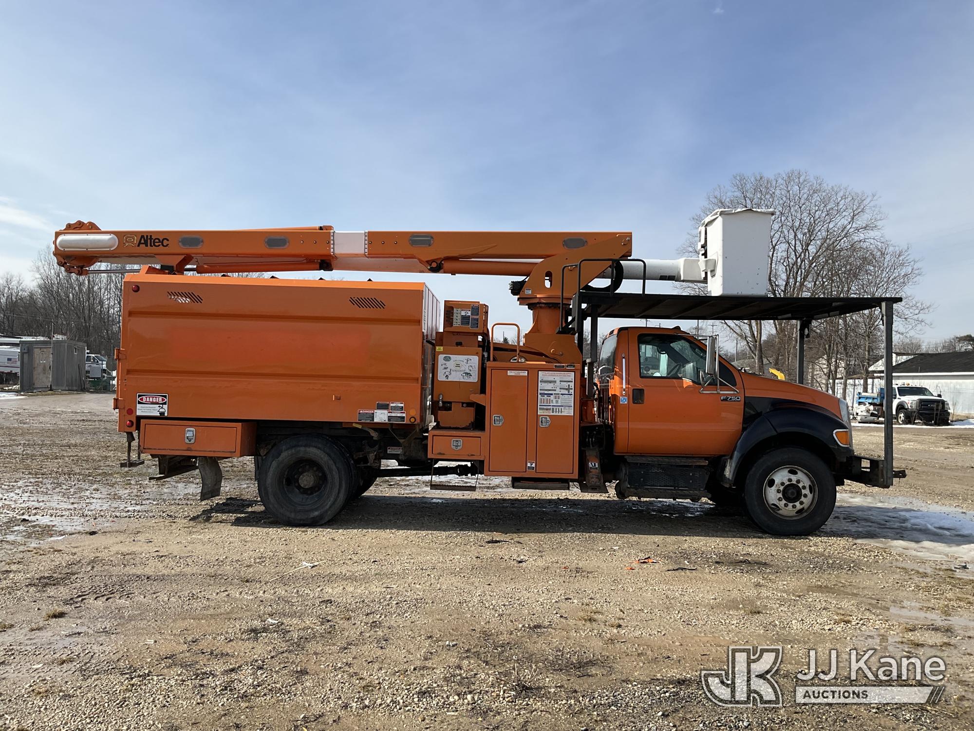 Altec LR760E70, 75 ft, Over-Center Elevator Bucket Truck s/n 0915FF4287, with single man bucket, two hydraulic outriggers, mounted behind cab on 2015 Ford F-750 Regular Cab 2WD DRW Chipper Dump Truck, 6.7L L6 DIESEL 6-spd, (114,884 miles) (Runs & Moves) (Truck Will Not Stay Running, Upper Condition Unknown, Jump to Start, Swollen Batteries, Battery Began Venting Gas During Auction Inspection, Truck Unsafe To Start With Bad Batteries, ABS Light) (Seller States: Unit In Limp Mode, Won't Stay Running) This is a Titled Item*