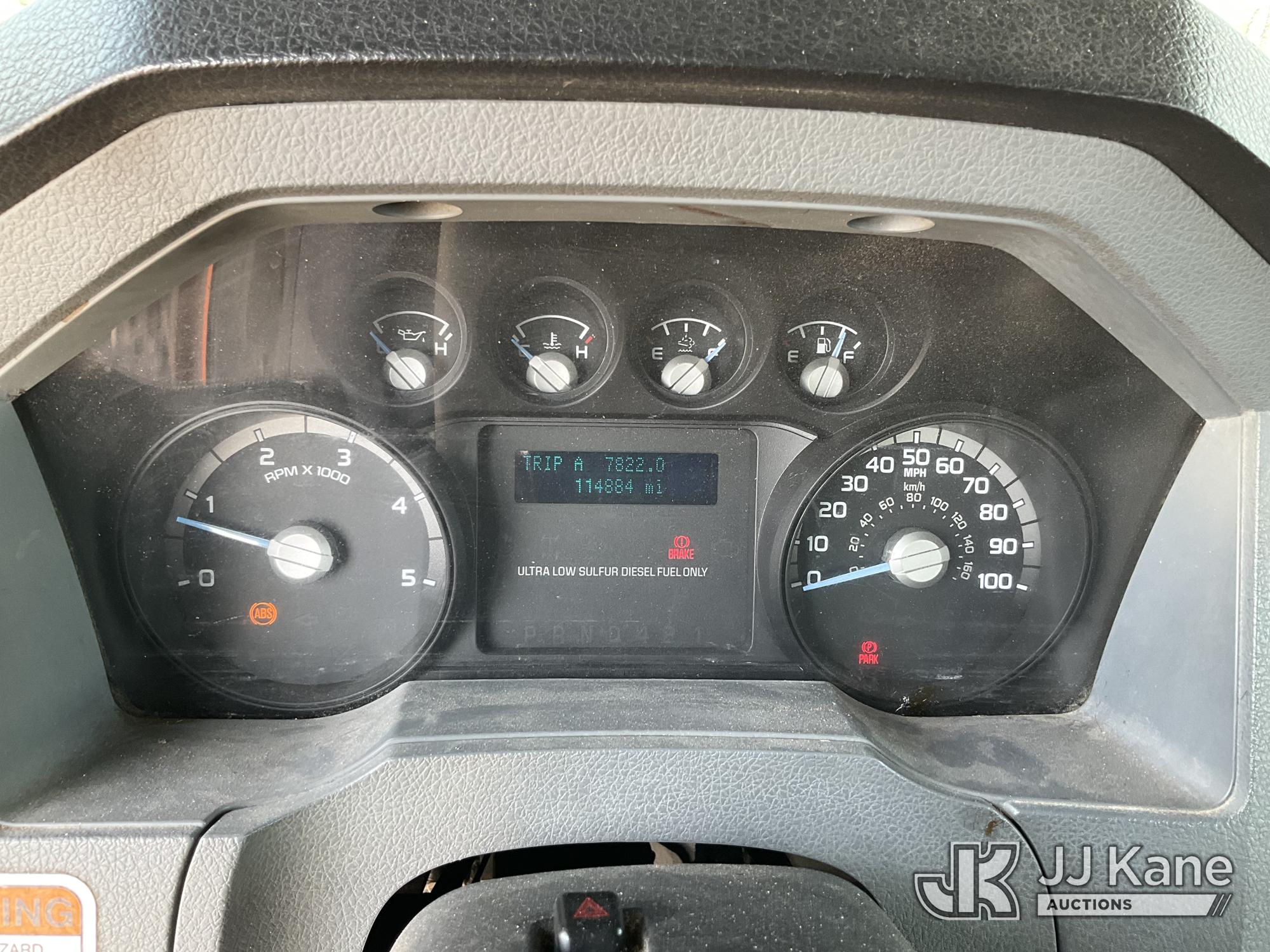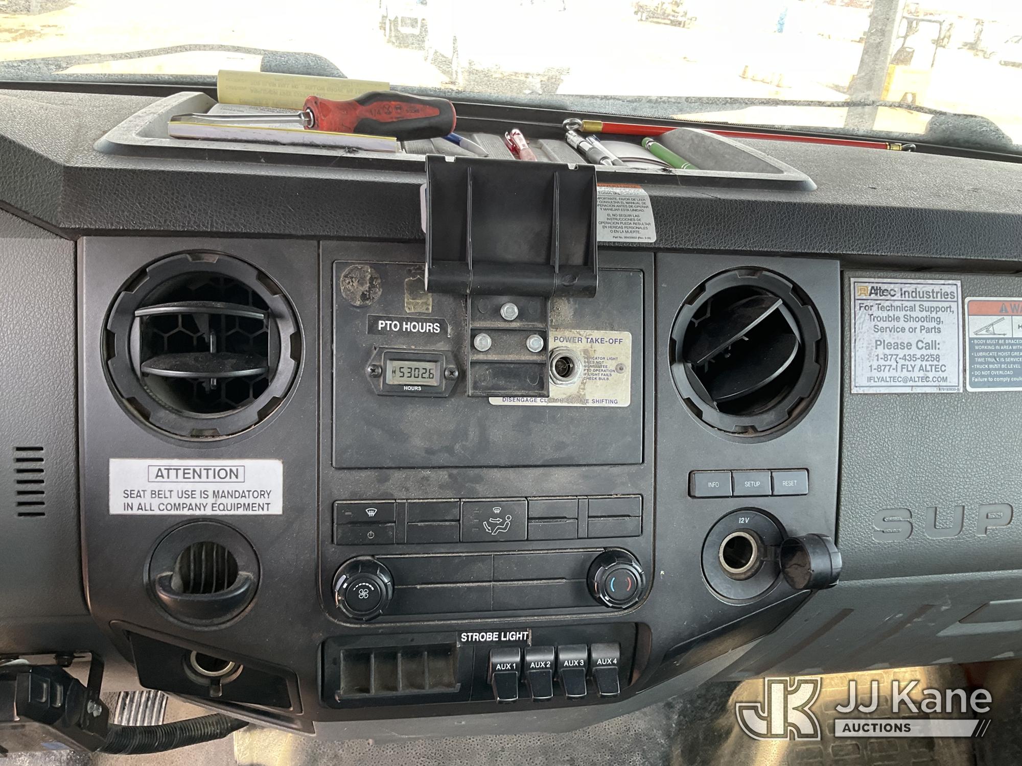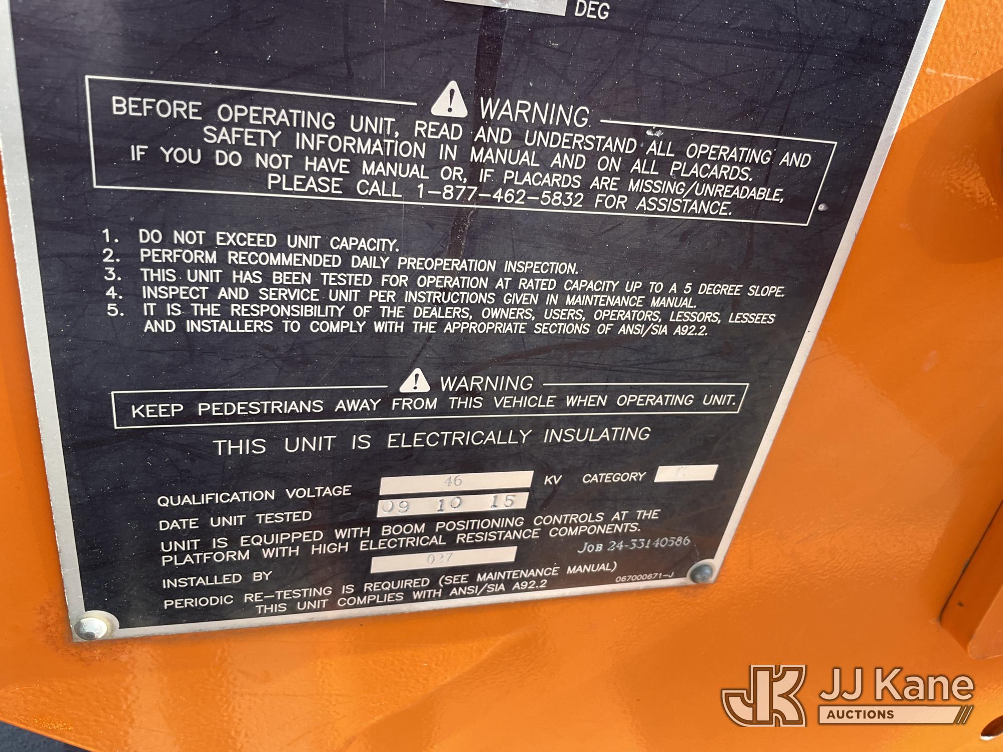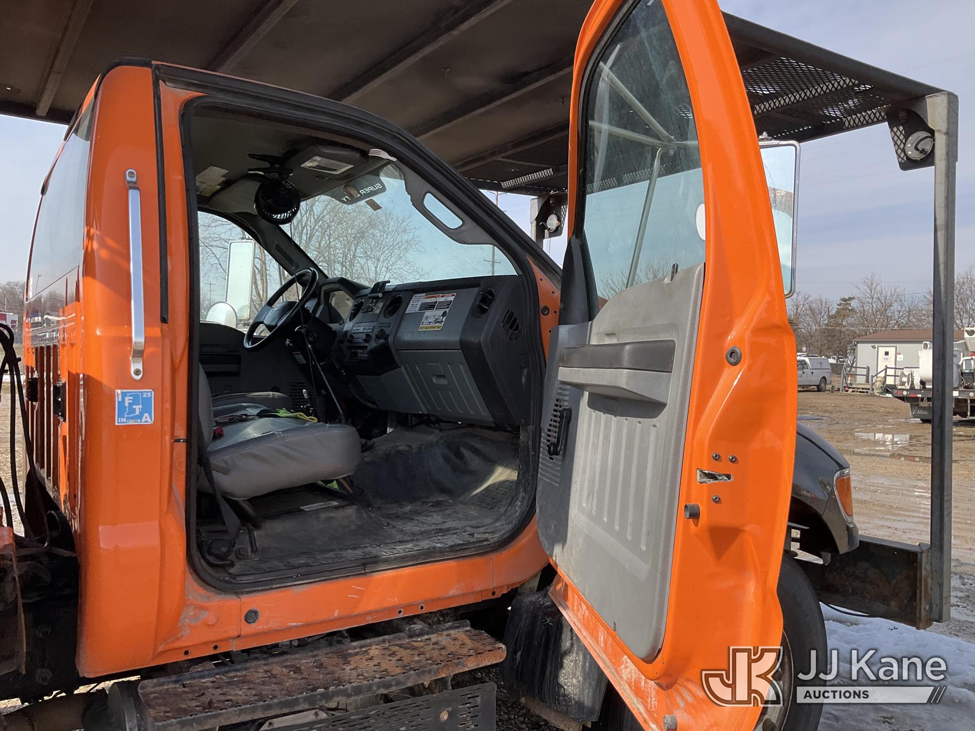 Altec LR760E70, 75 ft, Over-Center Elevator Bucket Truck s/n 0915FF4287, with single man bucket, two hydraulic outriggers, mounted behind cab on 2015 Ford F-750 Regular Cab 2WD DRW Chipper Dump Truck, 6.7L L6 DIESEL 6-spd, (114,884 miles) (Runs & Moves) (Truck Will Not Stay Running, Upper Condition Unknown, Jump to Start, Swollen Batteries, Battery Began Venting Gas During Auction Inspection, Truck Unsafe To Start With Bad Batteries, ABS Light) (Seller States: Unit In Limp Mode, Won't Stay Running) This is a Titled Item*