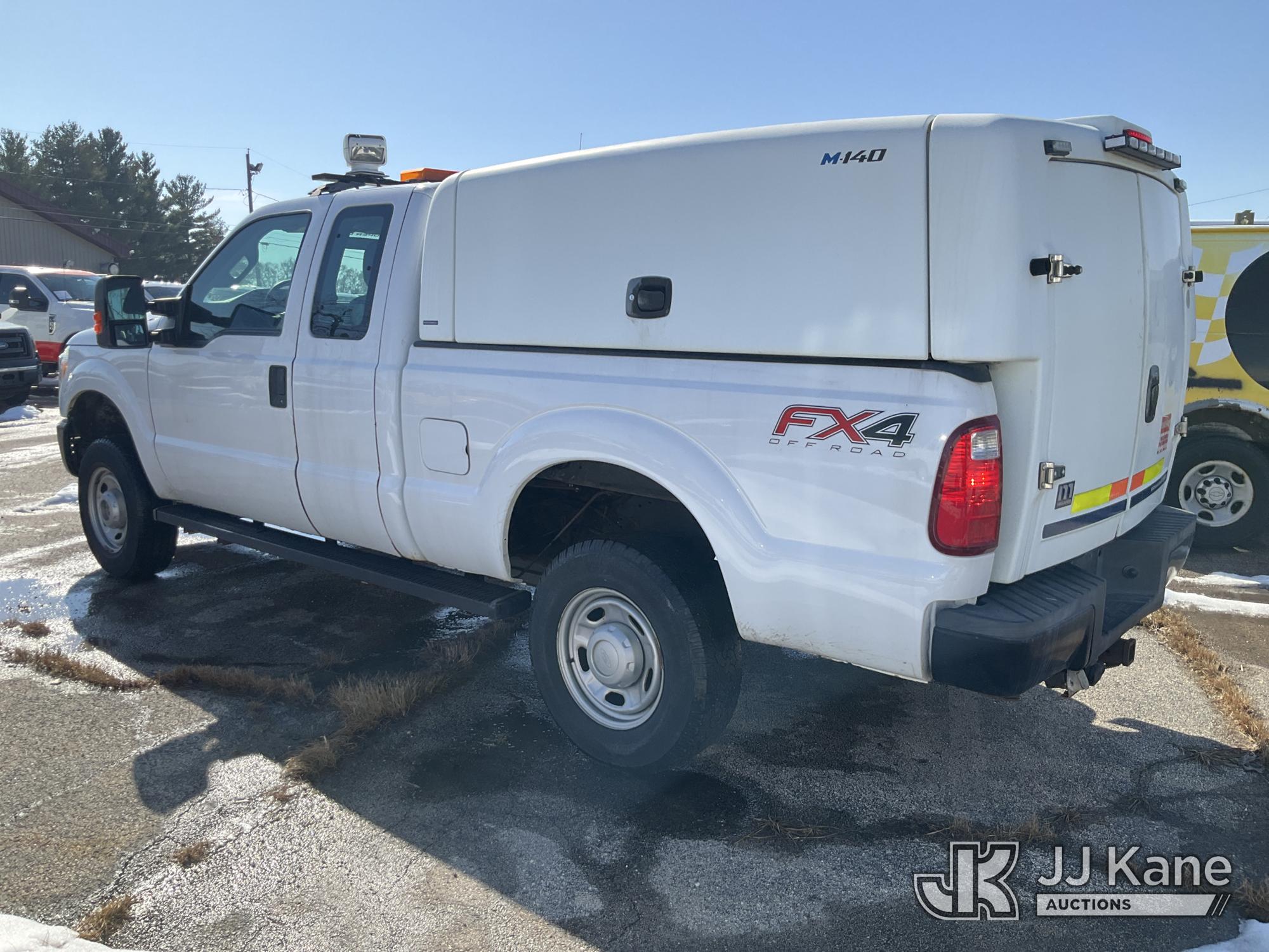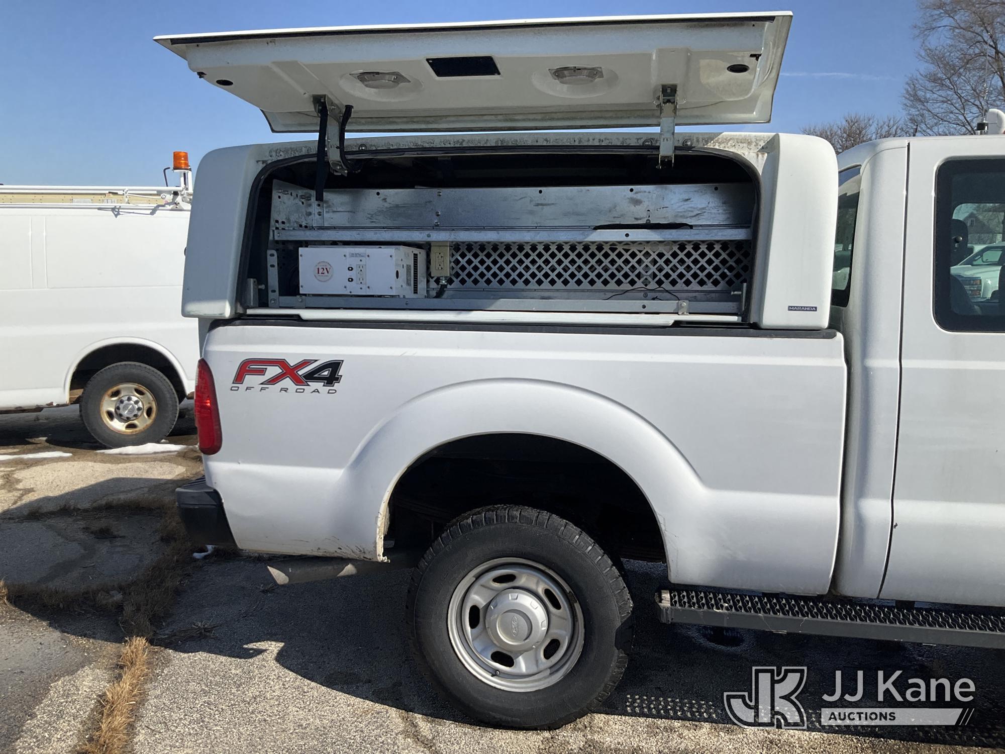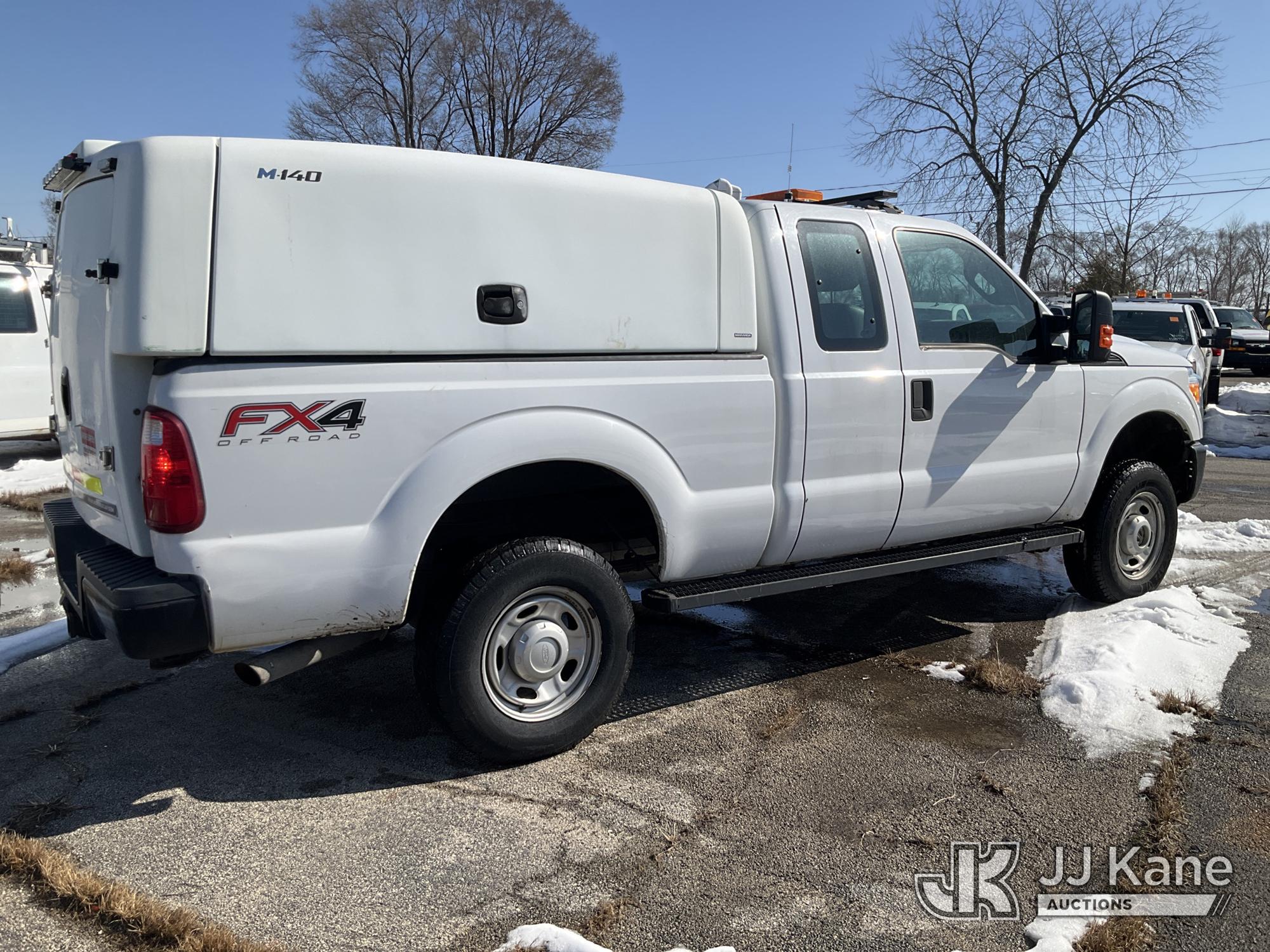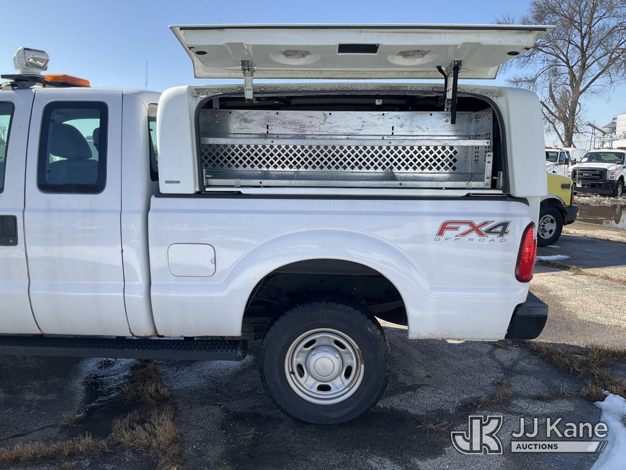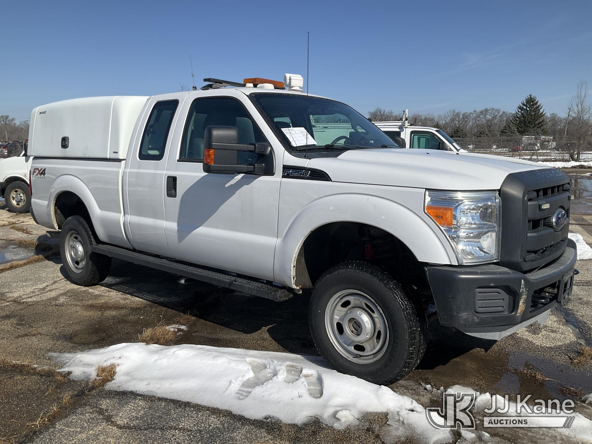 2012 Ford F-250 SD Extended-Cab Pickup Truck, 8-cyl gas, 4wd, 6-Speed Automatic, A/C, with camper shell, (29,899 miles) (Runs & Moves) (Jump To Start, Body Damage, Rust Damage, Exhaust Smells) (Reads 11,369 hours) This is a Titled Item*