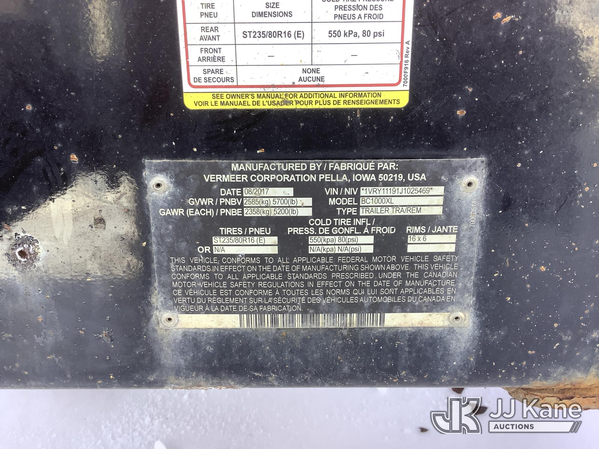 2018 Vermeer Corporation BC1000XL Portable Chipper (12in Drum), 4-cyl gas, (Runs, Operating Conditions Unknown) (Removal is by Appointment Only, Buyer MUST make a appointment prior to picking up, Buyer/Transporter Must have PAID IN FULL RELEASE. No onsite assistance available, Please Come prepared.) (Reads 863 hours) This is a Titled Item*
