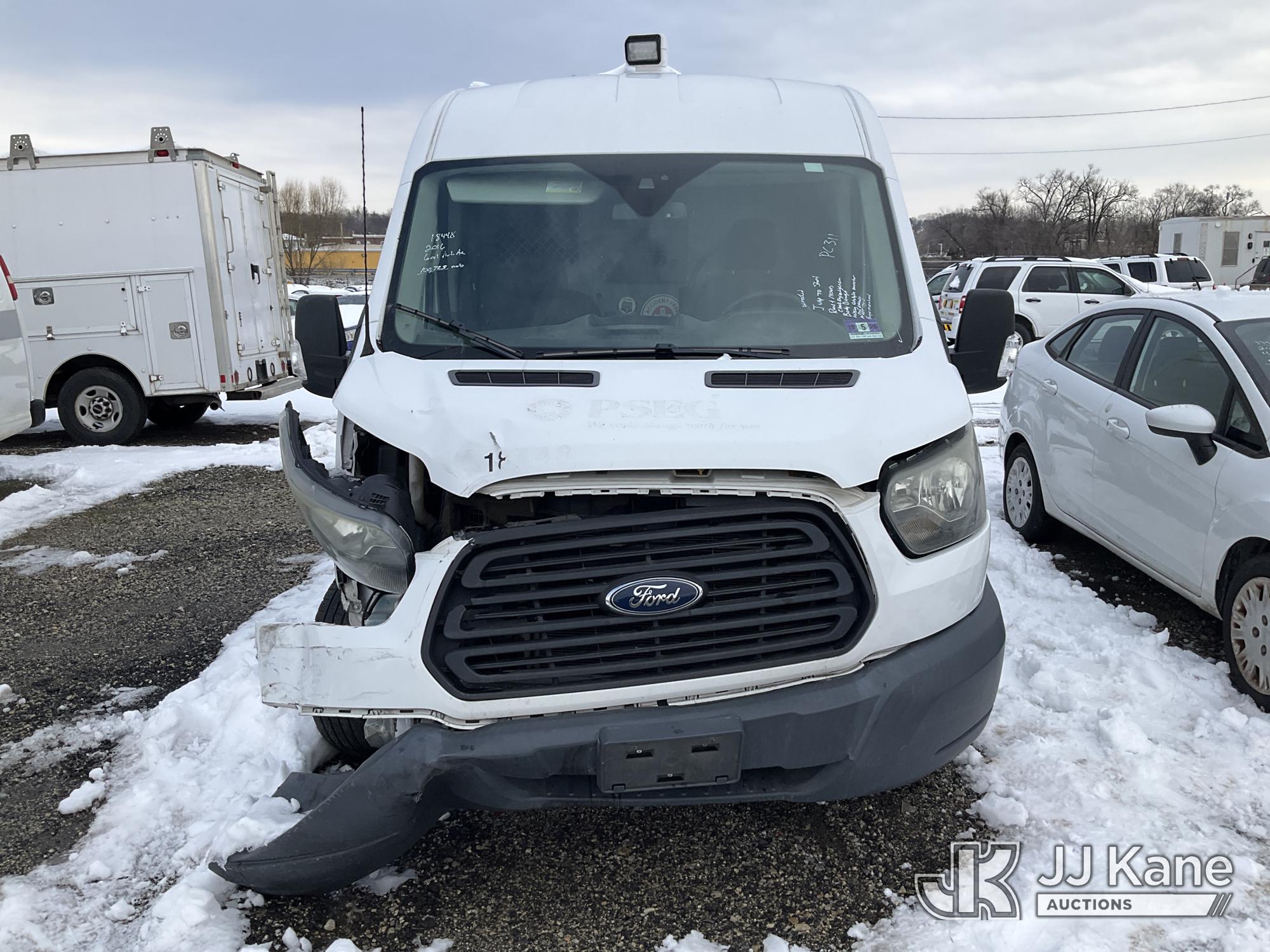 2016 Ford Transit 350 Cargo Van, 6-cyl gas, Auto, A/C, (100,723 miles) (Wrecked, Jump To Start, Runs & Moves, Check Engine Light On, Bad Exhaust, No Catalytic Convertor, Must Tow, Buyer Must Load) This is a Titled Item*