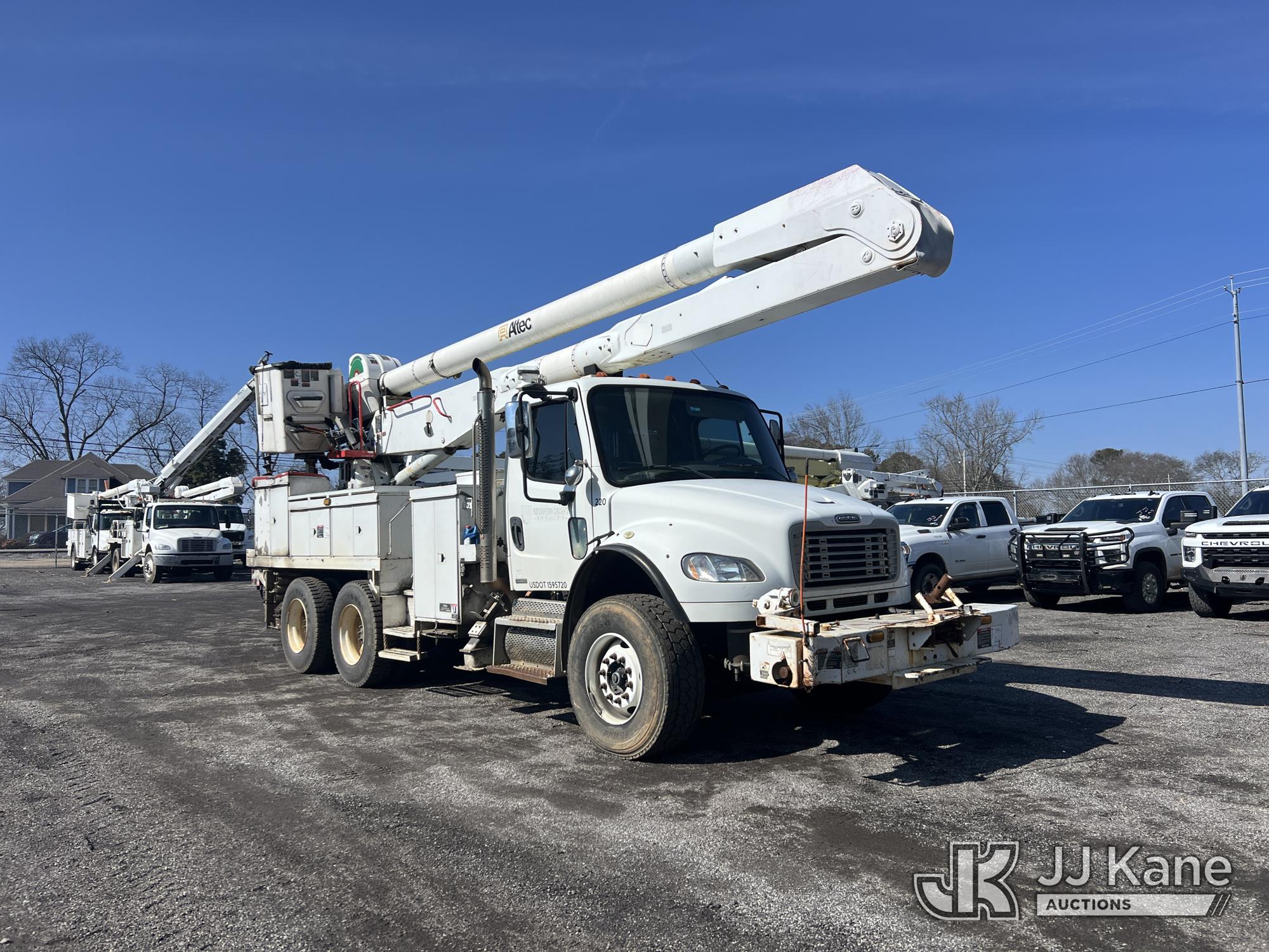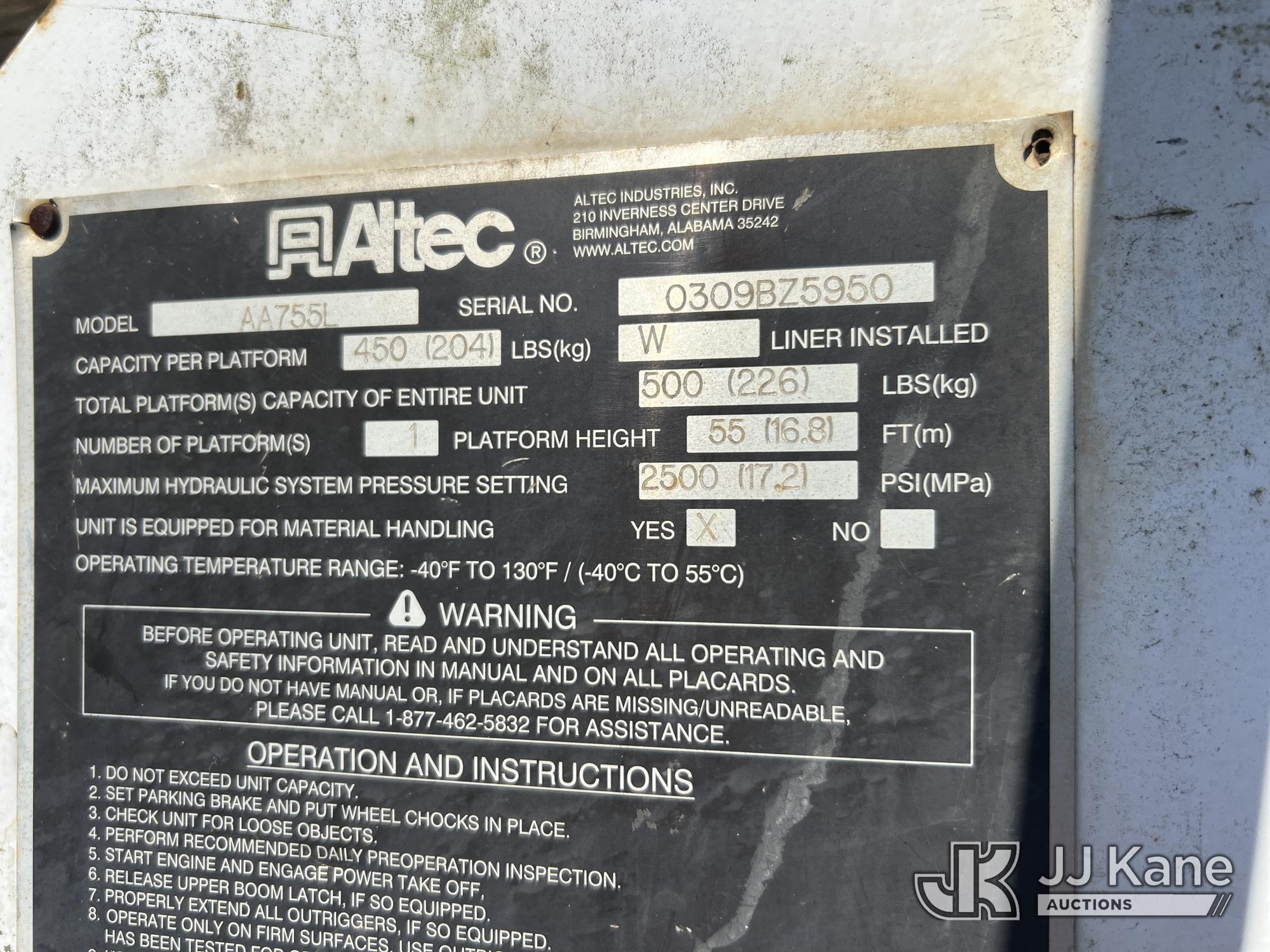 Altec AA55L, 60 ft, Material Handling Bucket Truck s/n 0309BZ5950, with Two-Man Bucket, rear mounted on 2010 Freightliner M2 106 T/A Utility Truck, 8.3L L6 DIESEL Auto, A/C, with front winch, (144,504 miles) (Runs, Moves & Upper Not Operating, Condition Unknown) (Jump To Start, Check Engine Light On, Smokes, Engine Issues, Bucket Damage, Body Damage) This is a Titled Item*