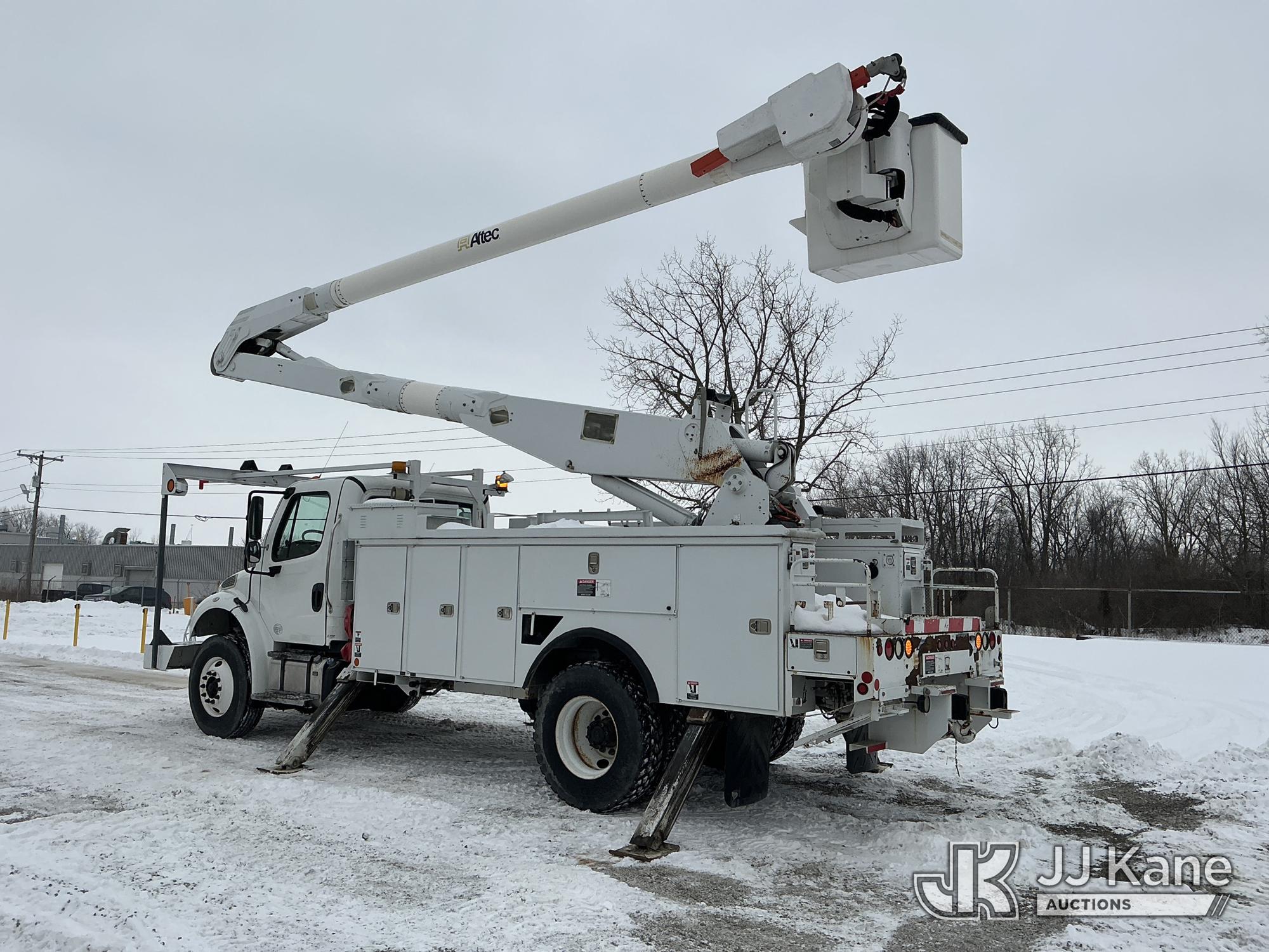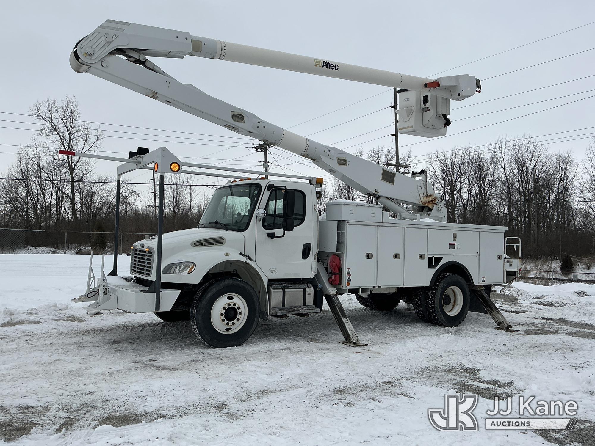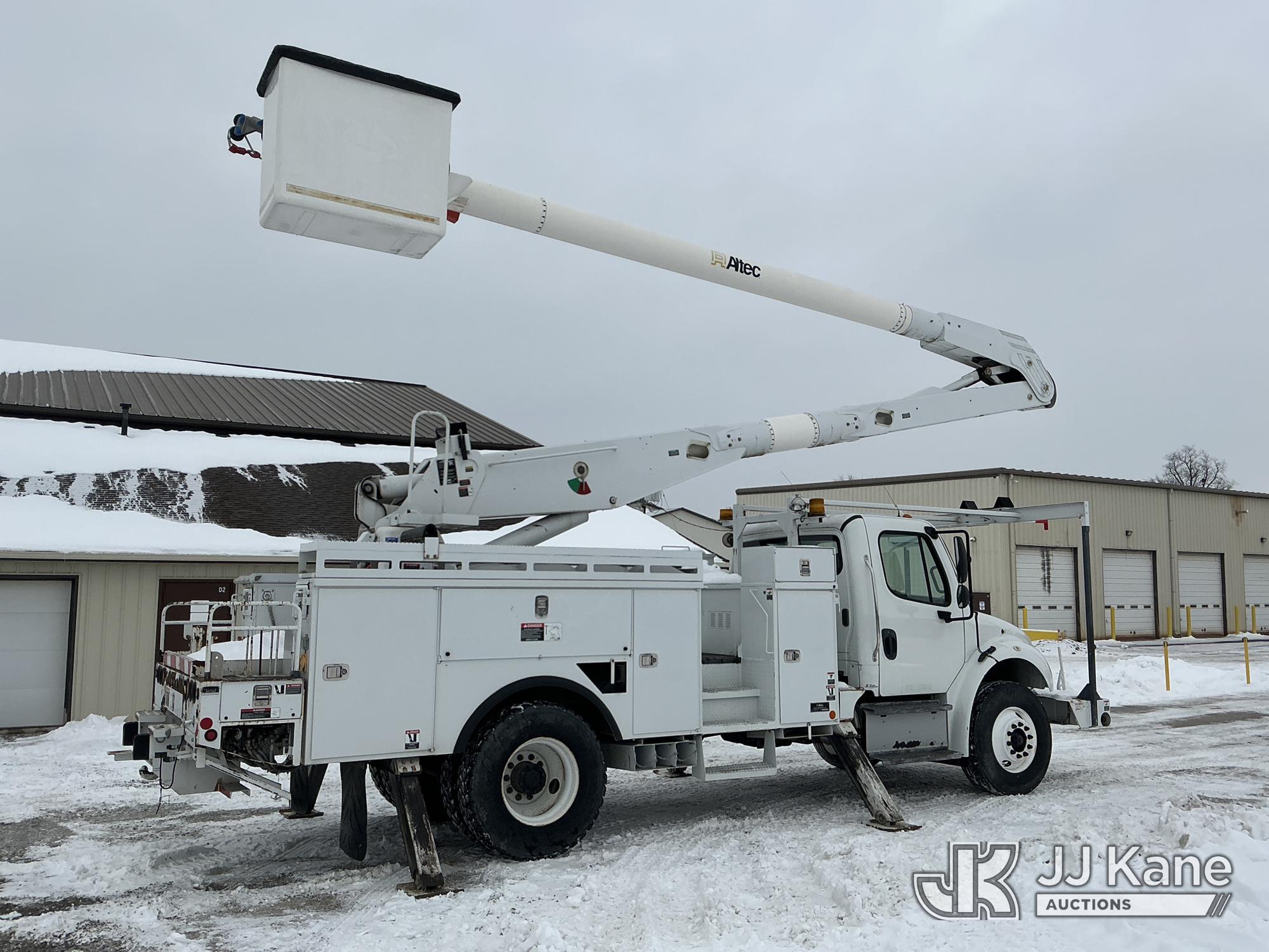 Altec AA755-MH, 60 ft, Material Handling Bucket Truck s/n 0713BZ7404, with two-man bucket & 4 hyd outriggers, rear mounted on 2014 Freightliner M2 106 Utility Truck, 6.7L L6 diesel, 4X2, Auto, A/C, with capstan & front winch & inverter, (41,223 miles) (Runs, Moves & Upper Operates) (Check Engine Light On) (Reads 5,541 hours) This is a Titled Item*