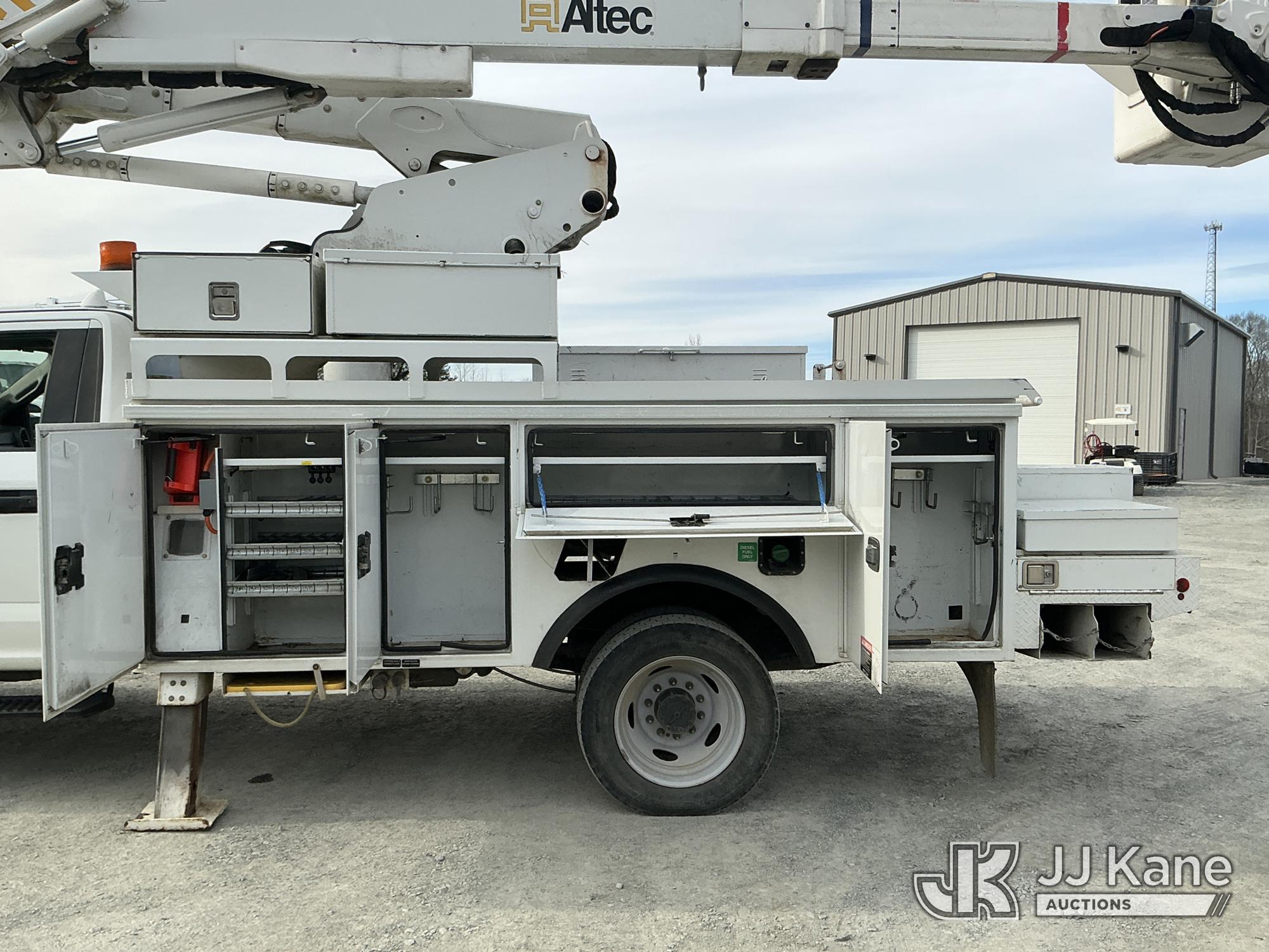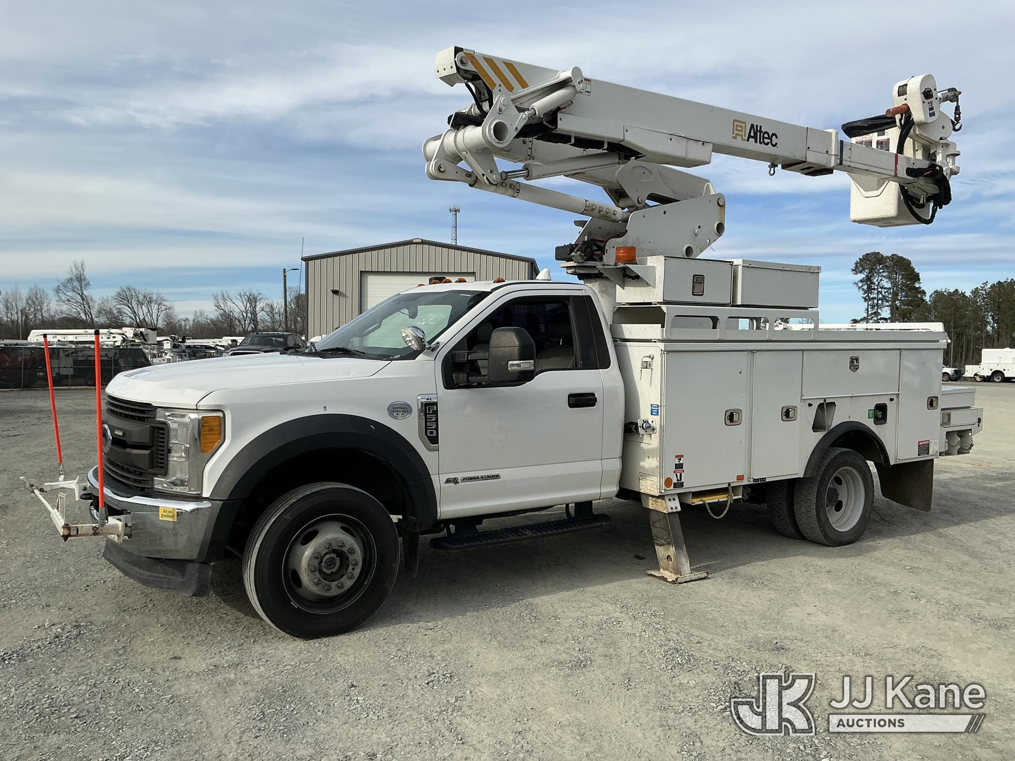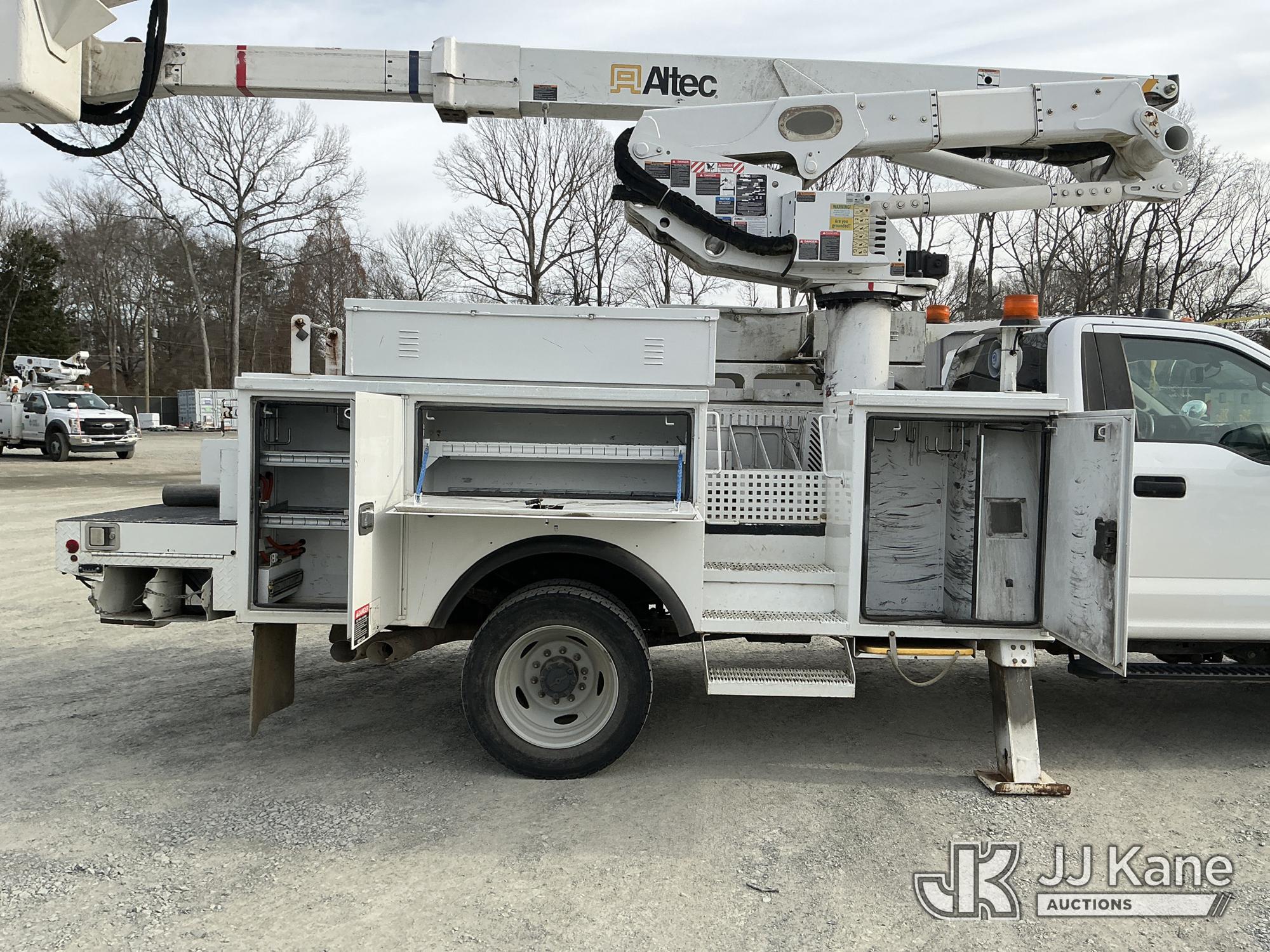 Altec AT41M, 46 ft, Articulating & Telescopic Material Handling Bucket Truck s/n 0118GH0864, with single man bucket & 2 hyd outriggers, mounted behind cab on 2017 Ford F550 4X4 Service Truck, 6.7L diesel, Auto, A/C, (169,323 miles) (Runs, Moves & Upper Operates) This is a Titled Item*