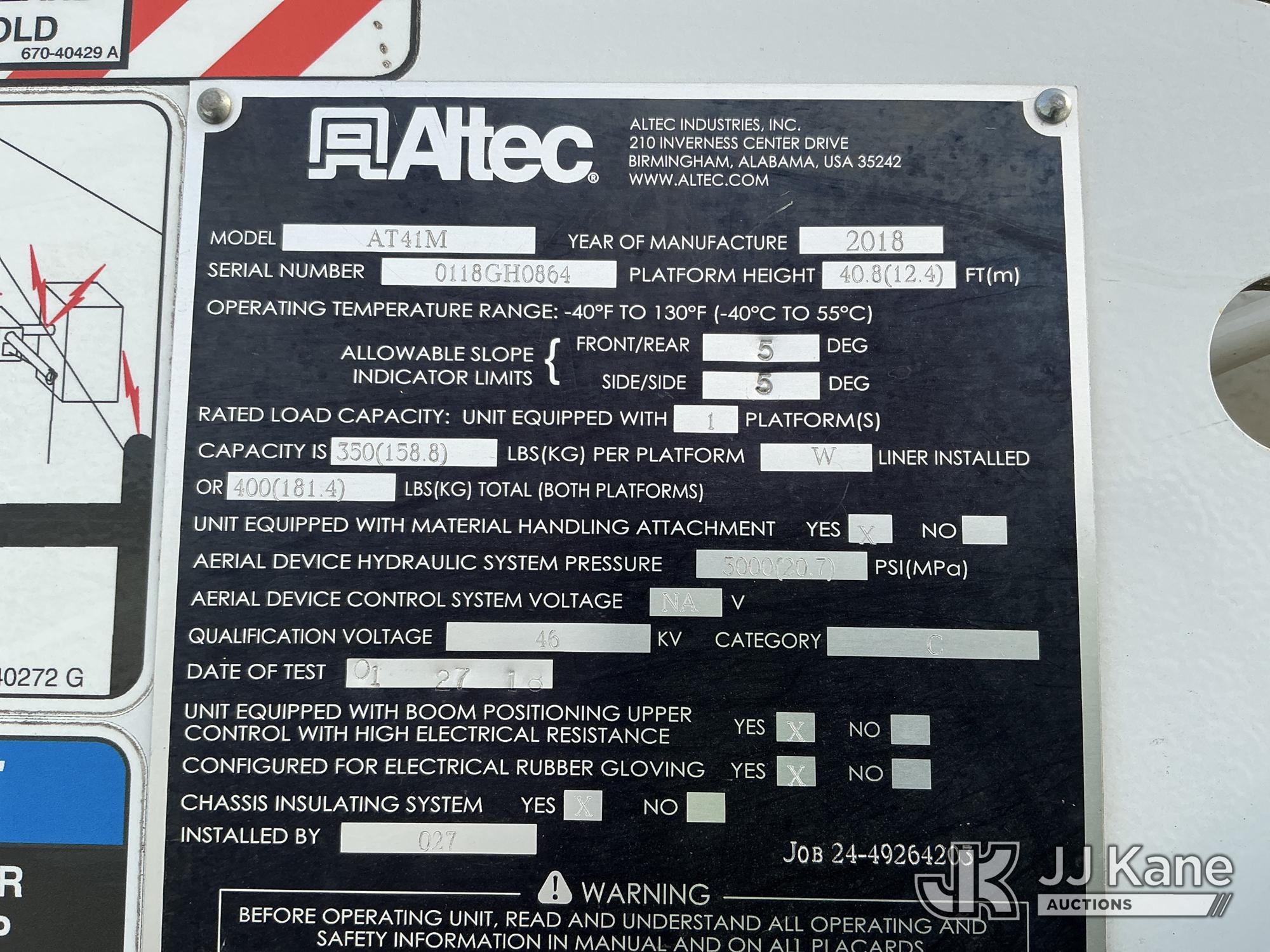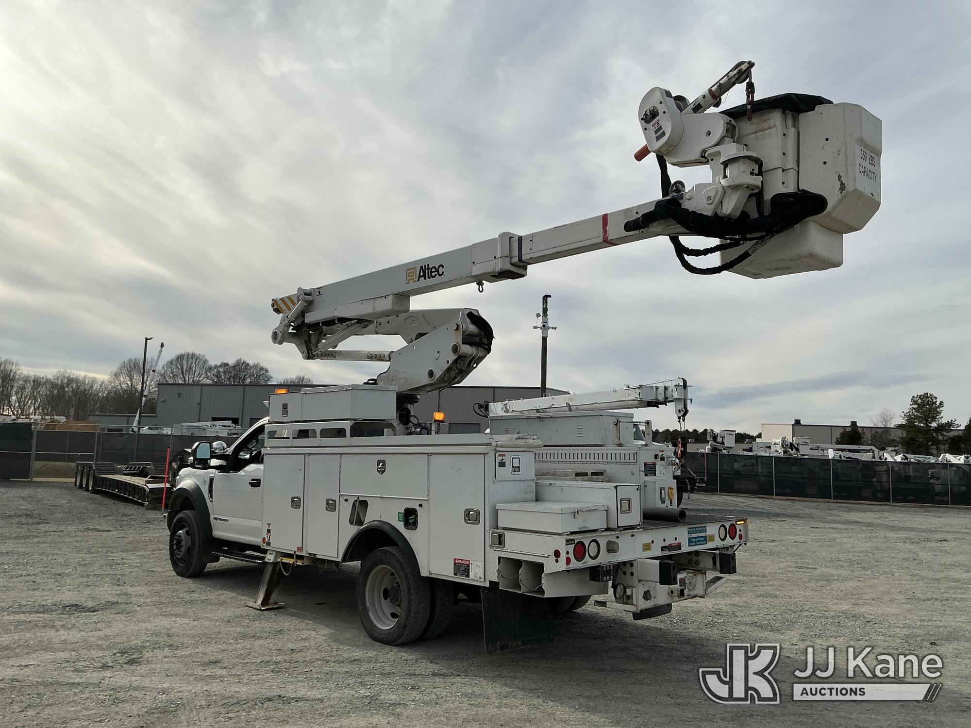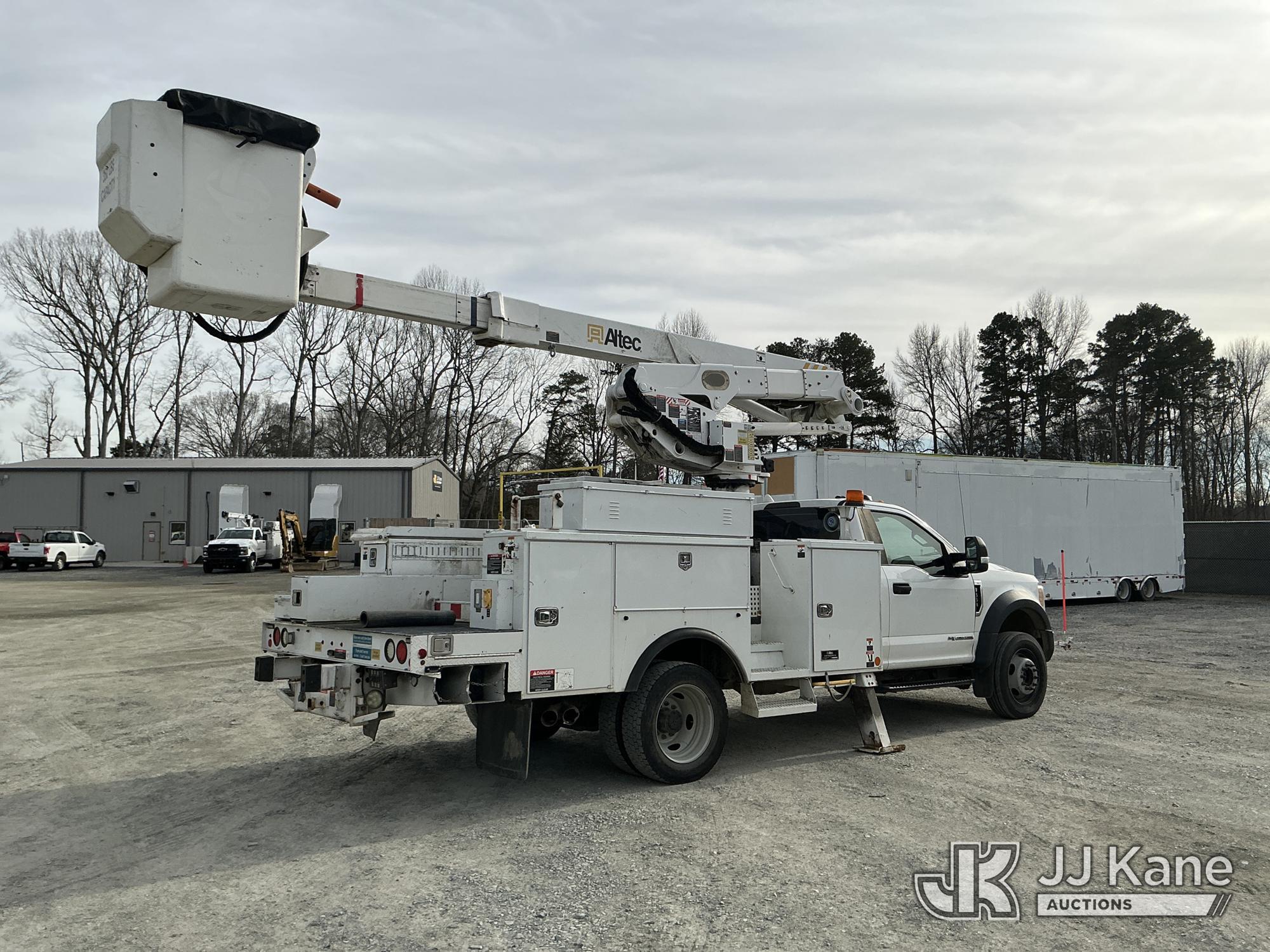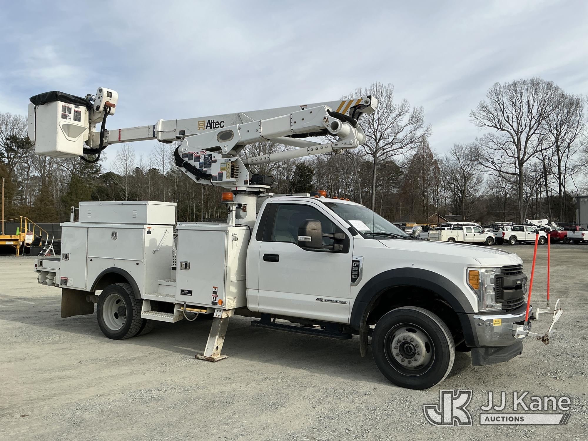 Altec AT41M, 46 ft, Articulating & Telescopic Material Handling Bucket Truck s/n 0118GH0864, with single man bucket & 2 hyd outriggers, mounted behind cab on 2017 Ford F550 4X4 Service Truck, 6.7L diesel, Auto, A/C, (169,323 miles) (Runs, Moves & Upper Operates) This is a Titled Item*