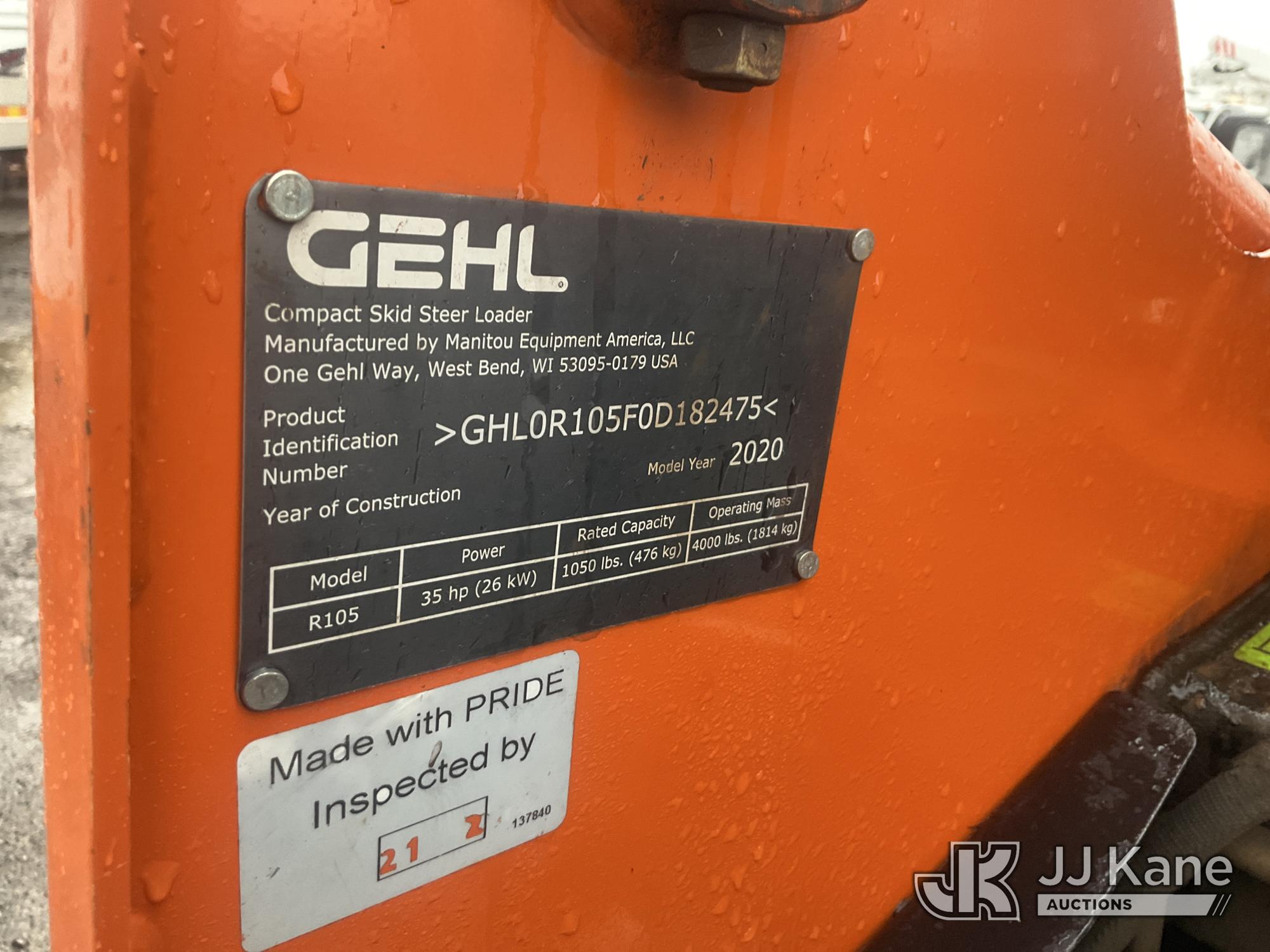 2020 Gehl R105 Rubber Tired Skid Steer Loader, s/n GHL0R105F0D182475, Yanmar diesel, Hydrostatic, with QD GP Bucket, AUX Hydraulics & ROPS, (Runs & Operates) (Reads 1,006 hours)*