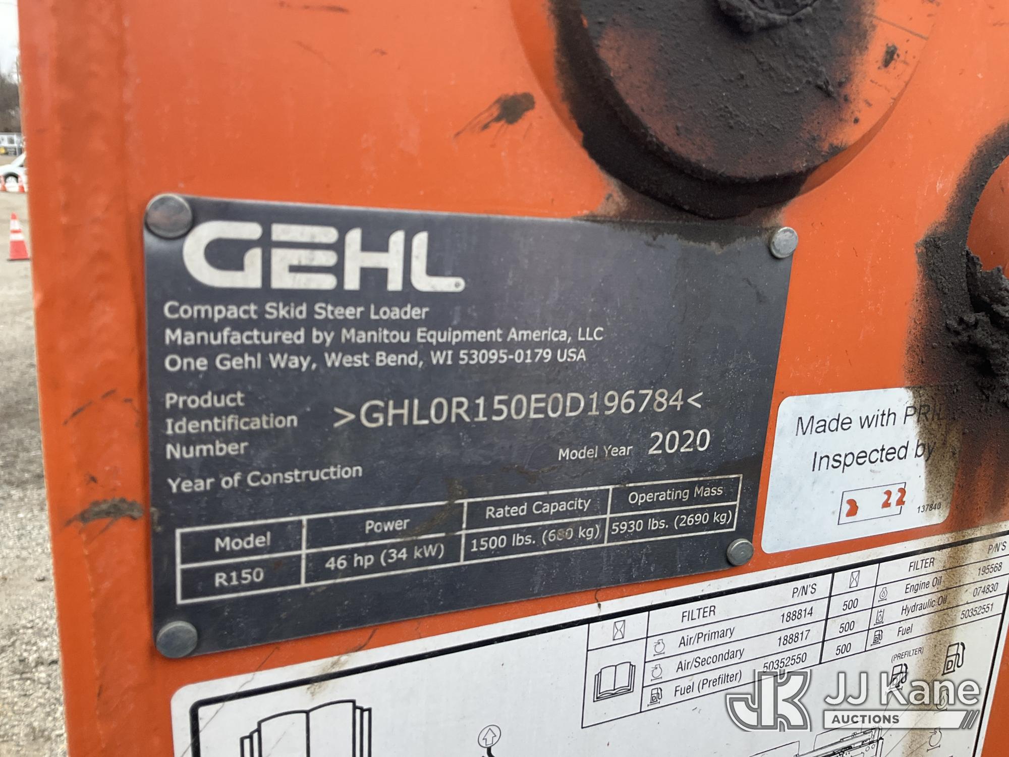 2020 Gehl R105 Rubber Tired Skid Steer Loader, s/n GHL0R150E0D196784, Yanmar diesel, Hydraulic Drive, with QD Loader Bucket, Aux. Hyd, Outlets, & ROPS, (Runs & Moves) (Reads 1,281 hours)*